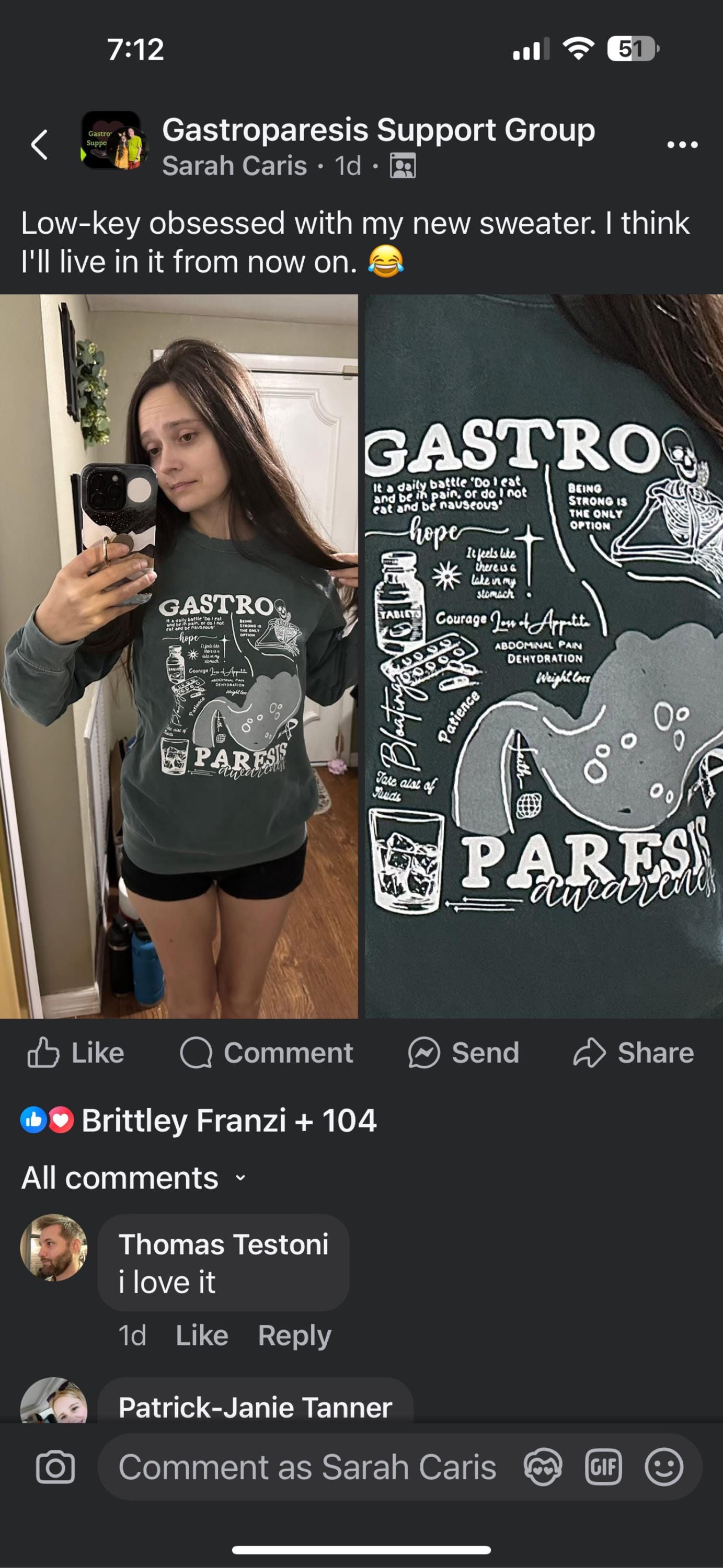 Premium Shirts and sweatshirts for people who suffer from many invisible symptoms and put on a brave face against chronic diseases like Gastroparesis. Stomach and gut health awareness.