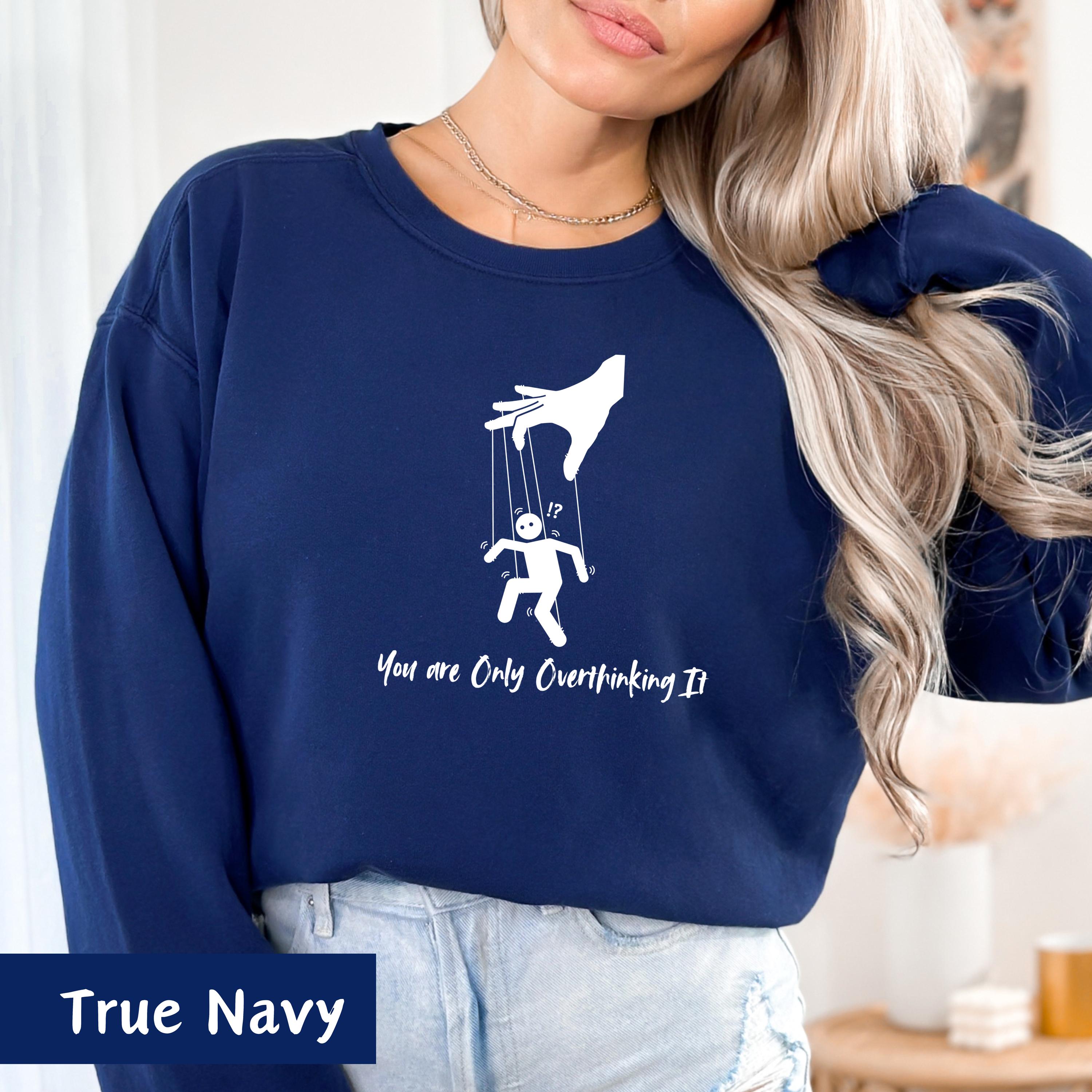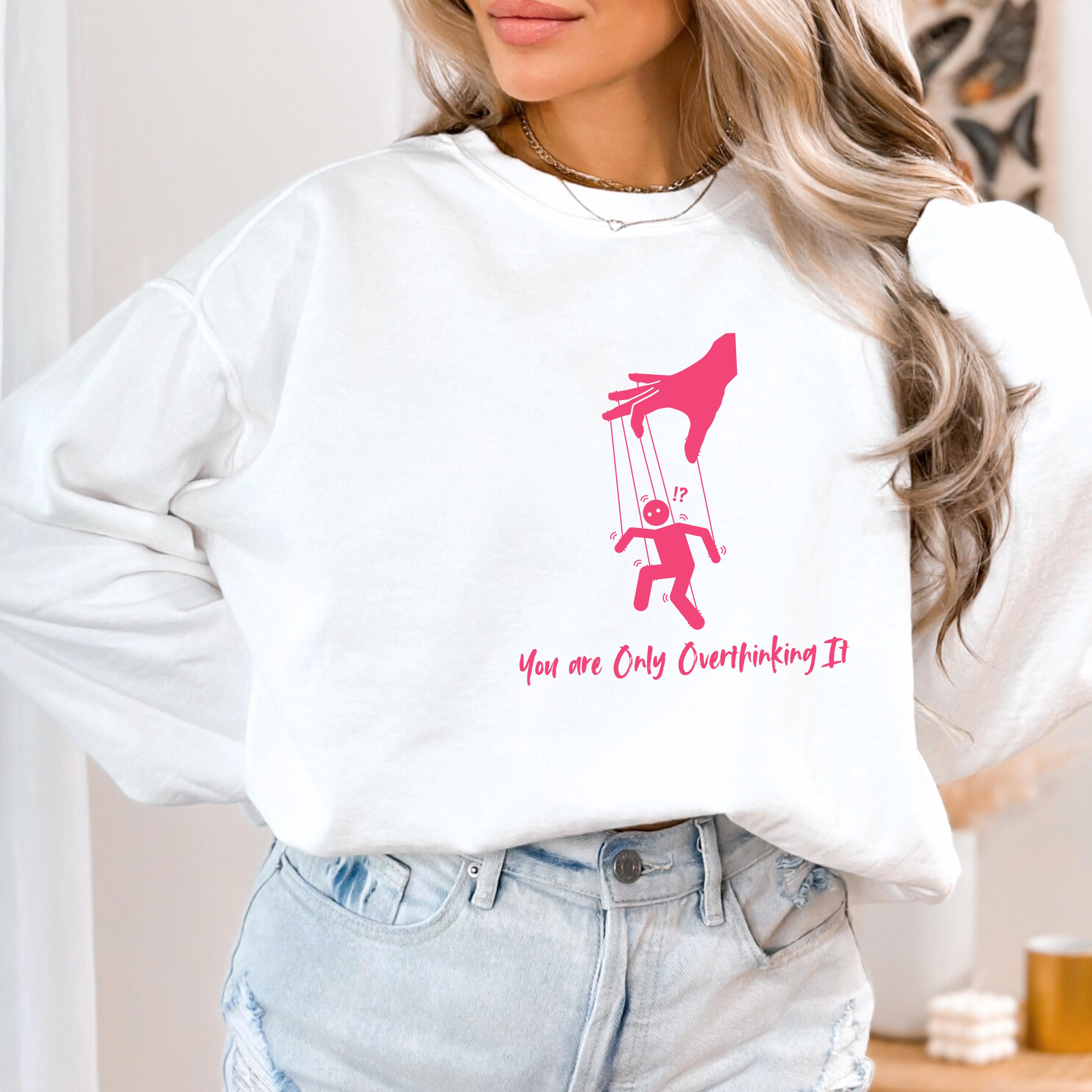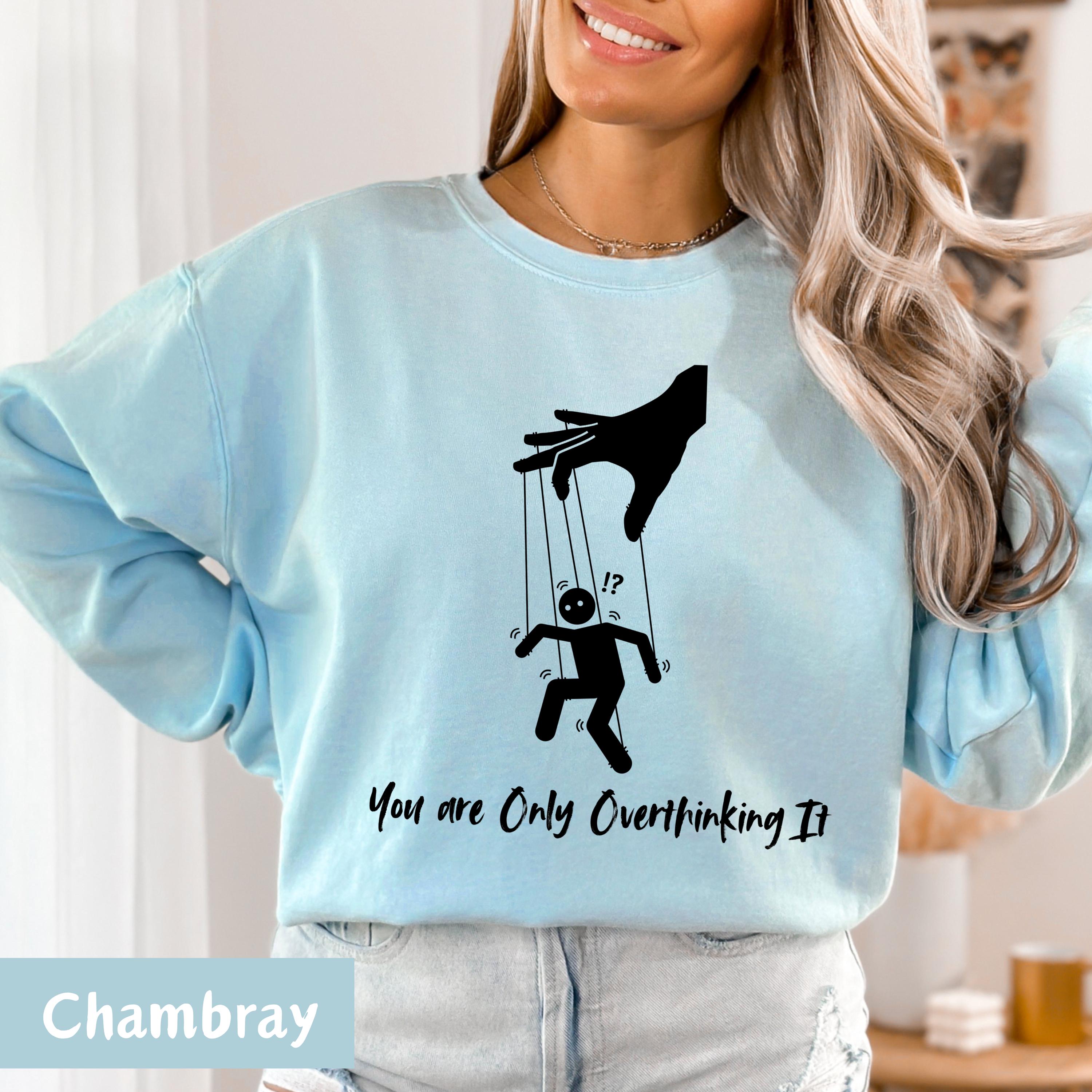 This unique gaslighting comfort colors sweatshirt features a bold puppet-string design paired with the sarcastic phrase “You are Only Overthinking It.” Perfect for anyone who enjoys dark humor, ironic fashion, and calling out manipulation in a stylish way.