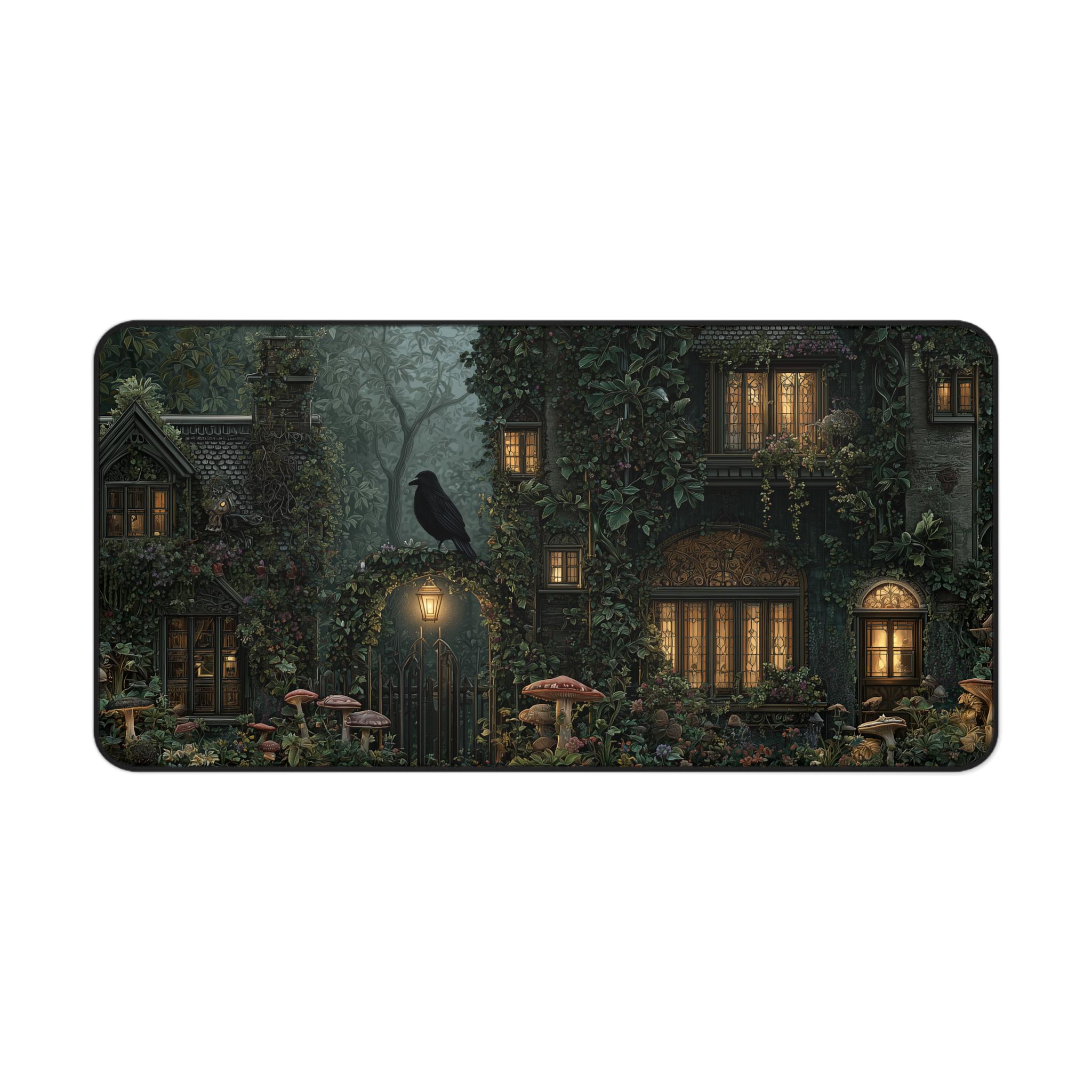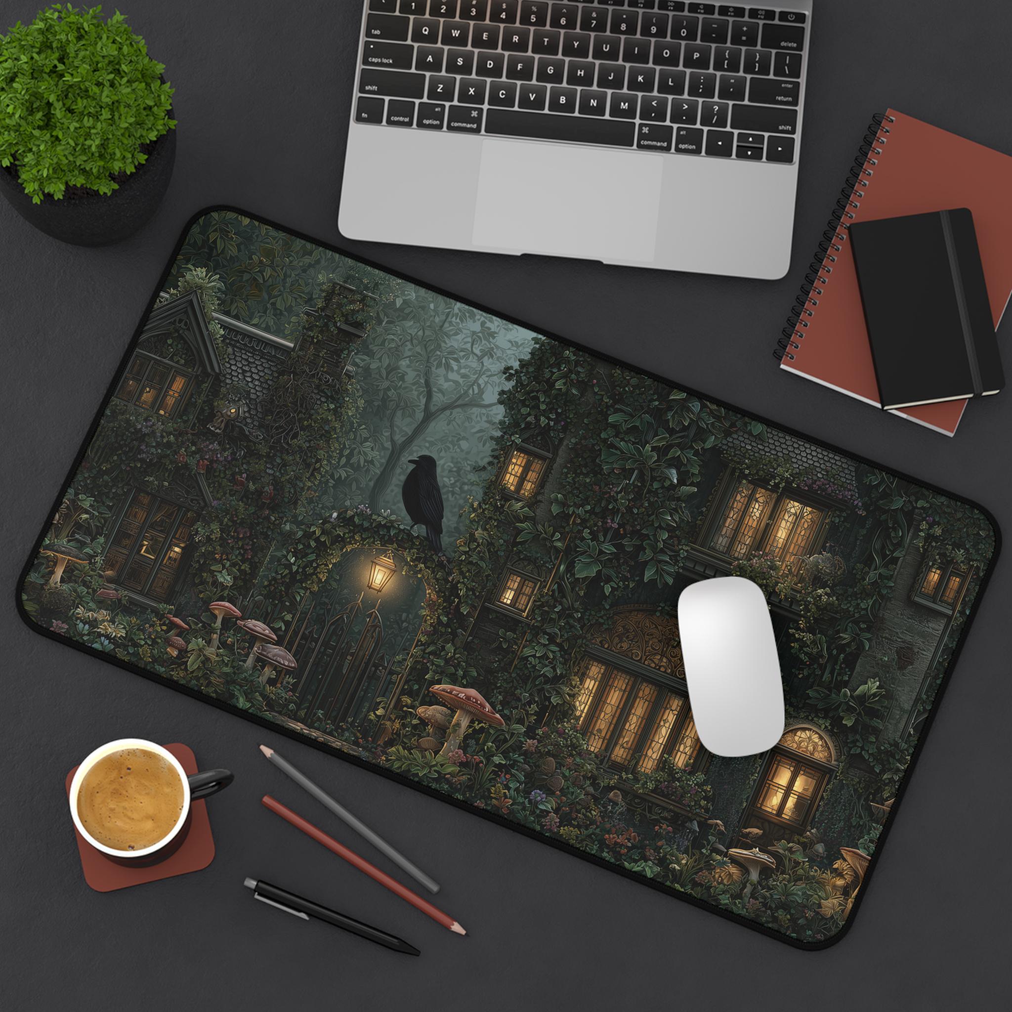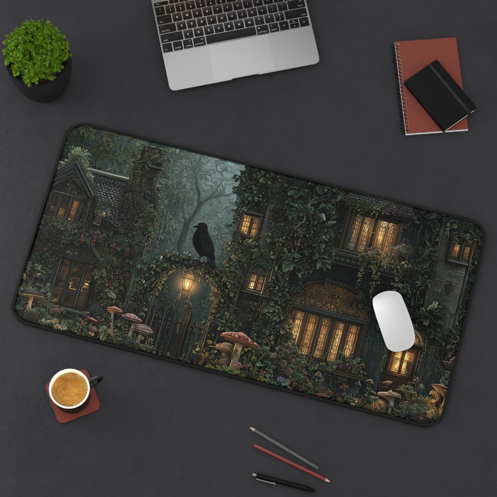 Cottagecore Raven Desk Pad, Gothic Desk Mat, Dark Academia Mouse Pad, Vintage Book Candle Mat, Large Office Gaming Desk Cover