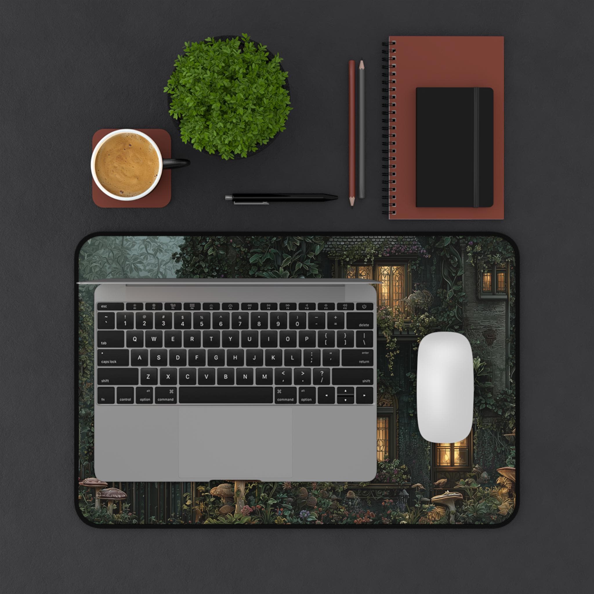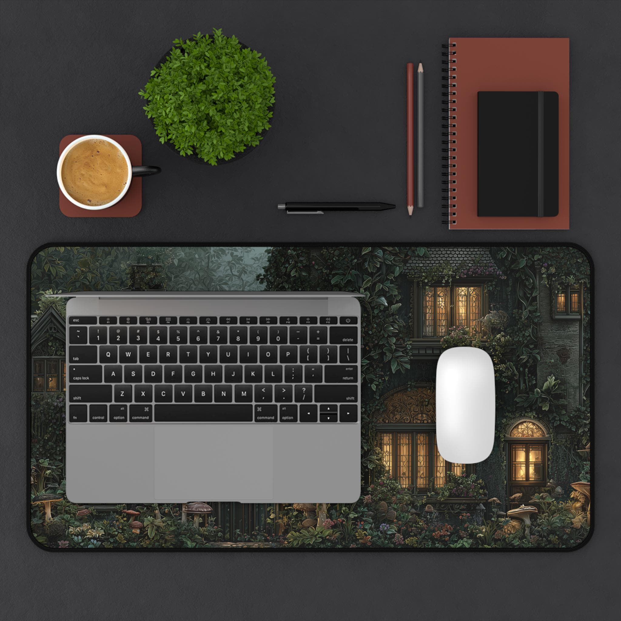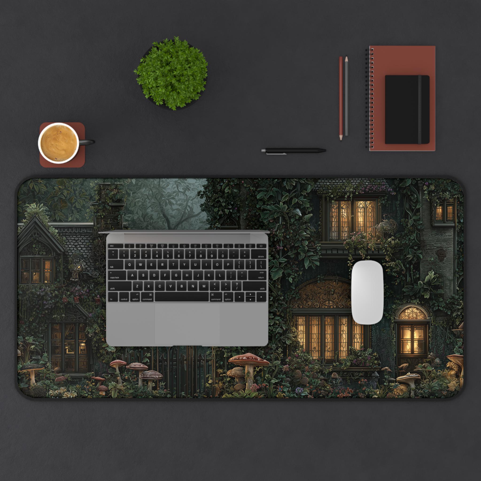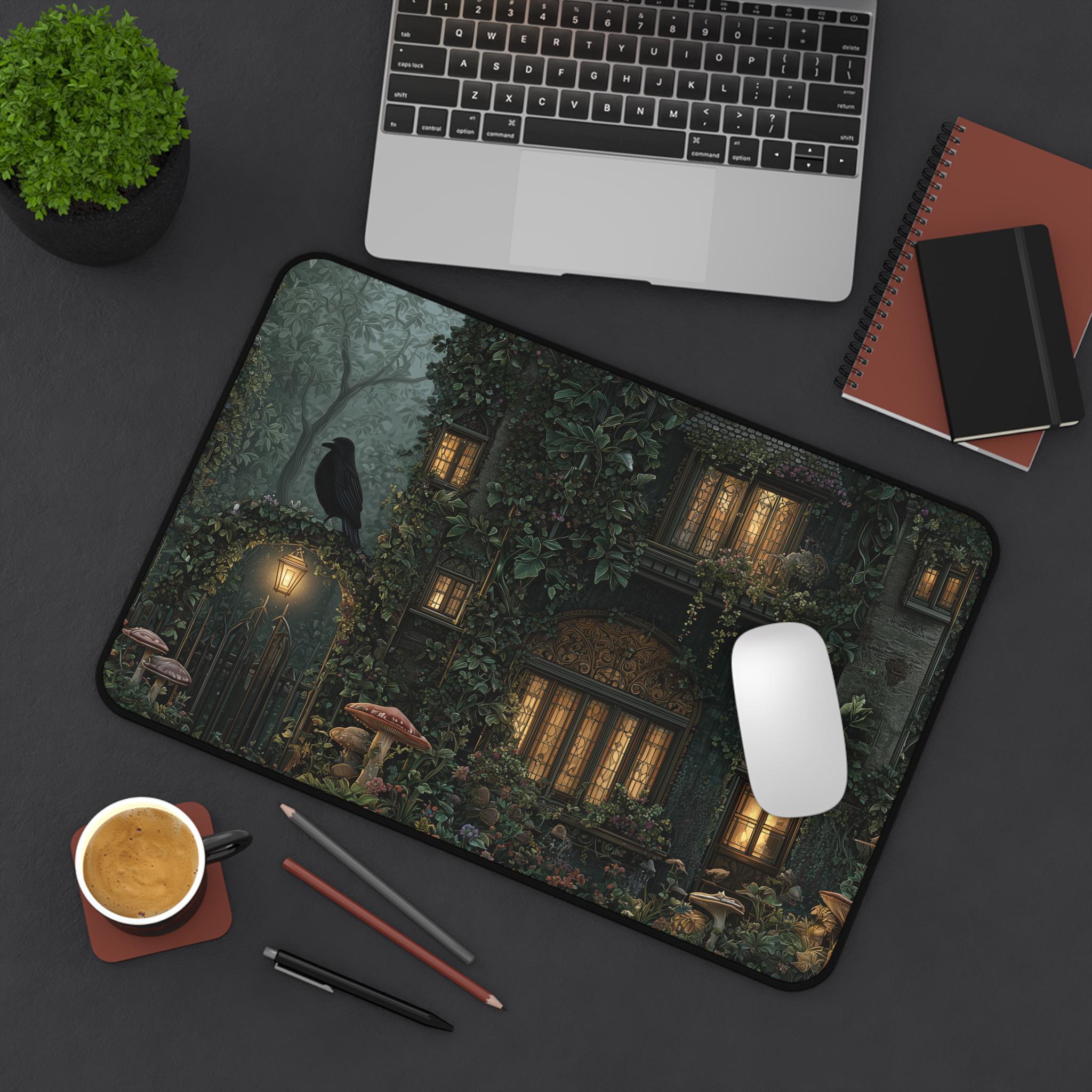 Cottagecore Raven Desk Pad, Gothic Desk Mat, Dark Academia Mouse Pad, Vintage Book Candle Mat, Large Office Gaming Desk Cover