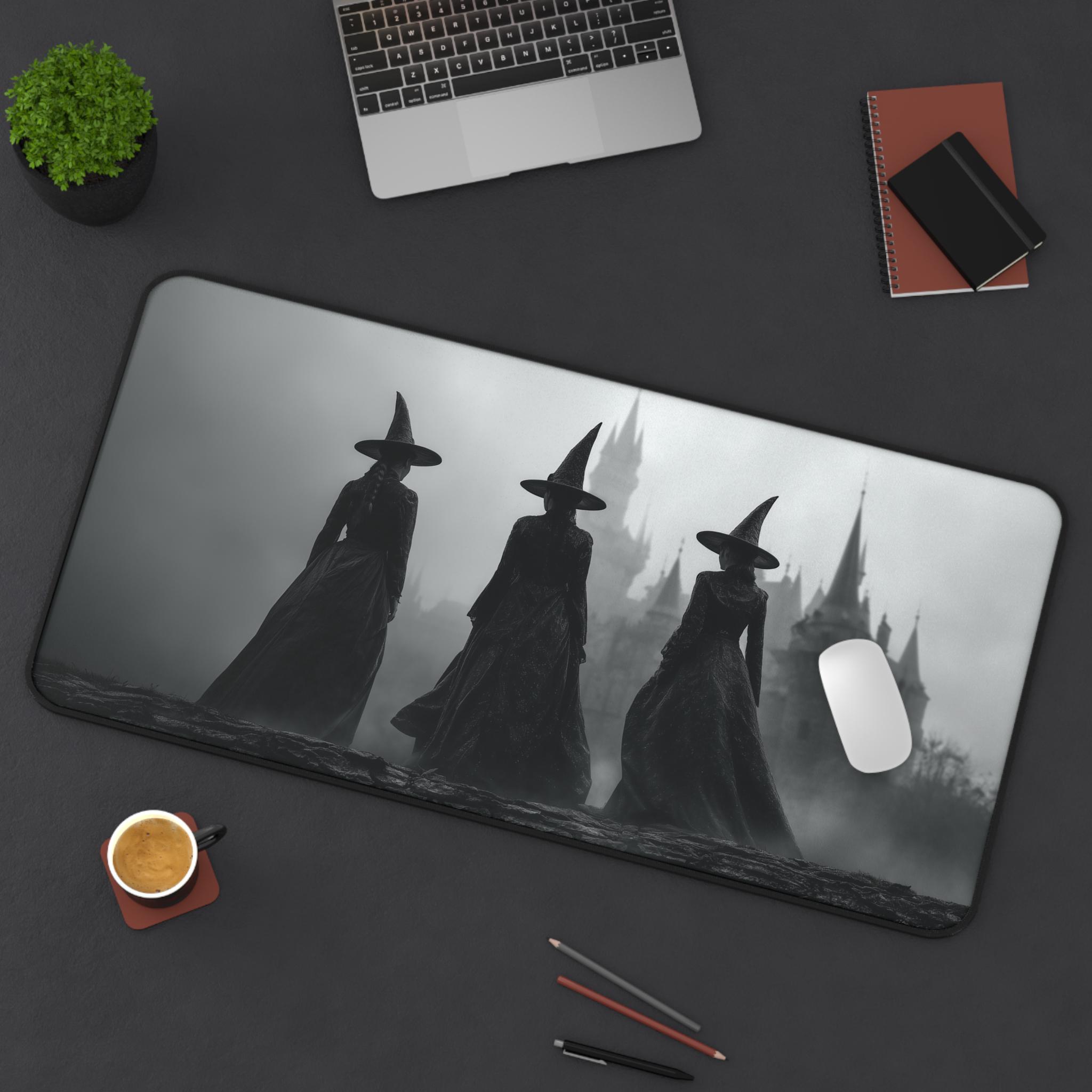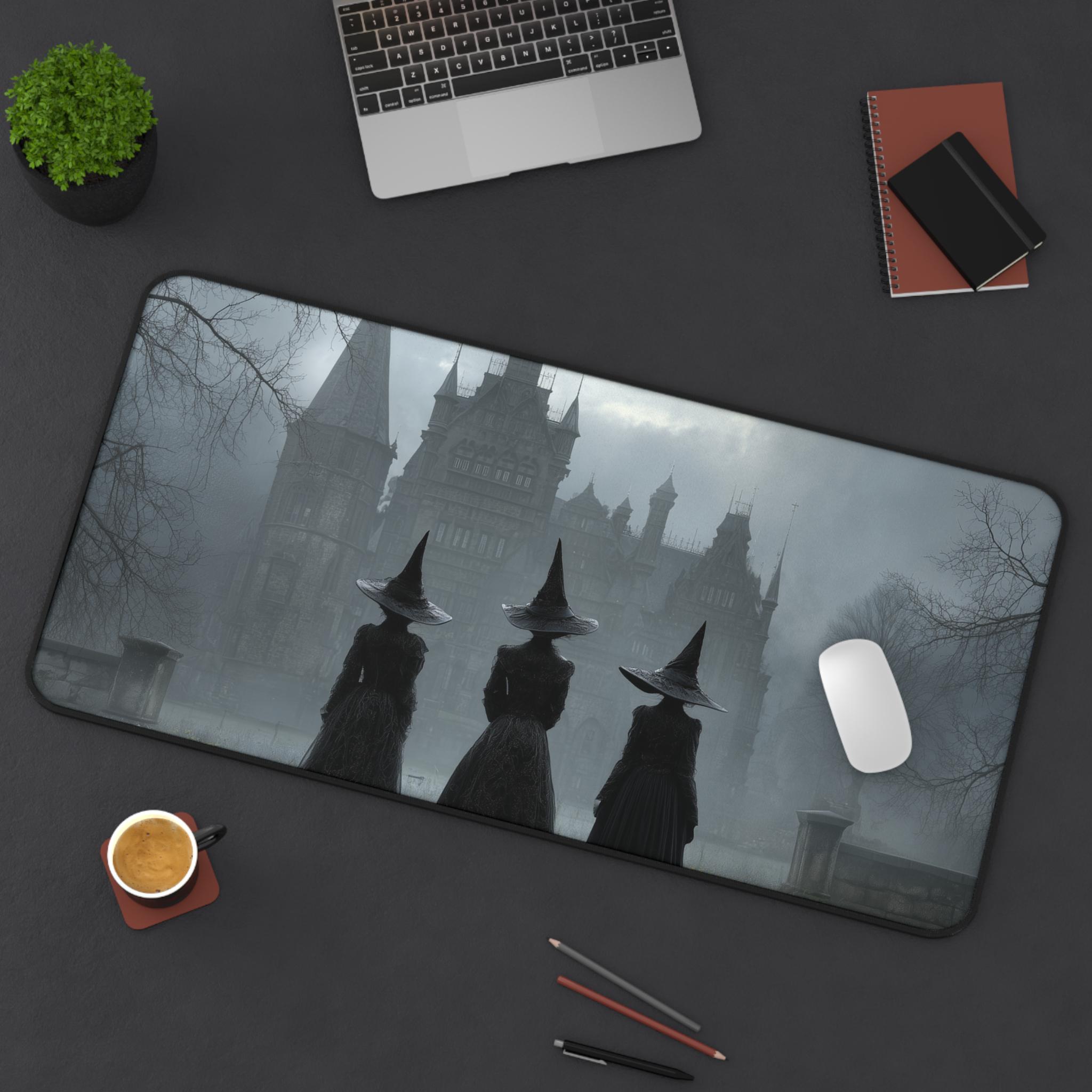 Witch Desk Mat, Halloween Gift, Gothic Castle Desk Pad, Dark Academia Horror Mouse Pad, Foggy Haunted Desk Mat, Witchy Gaming Office Mat