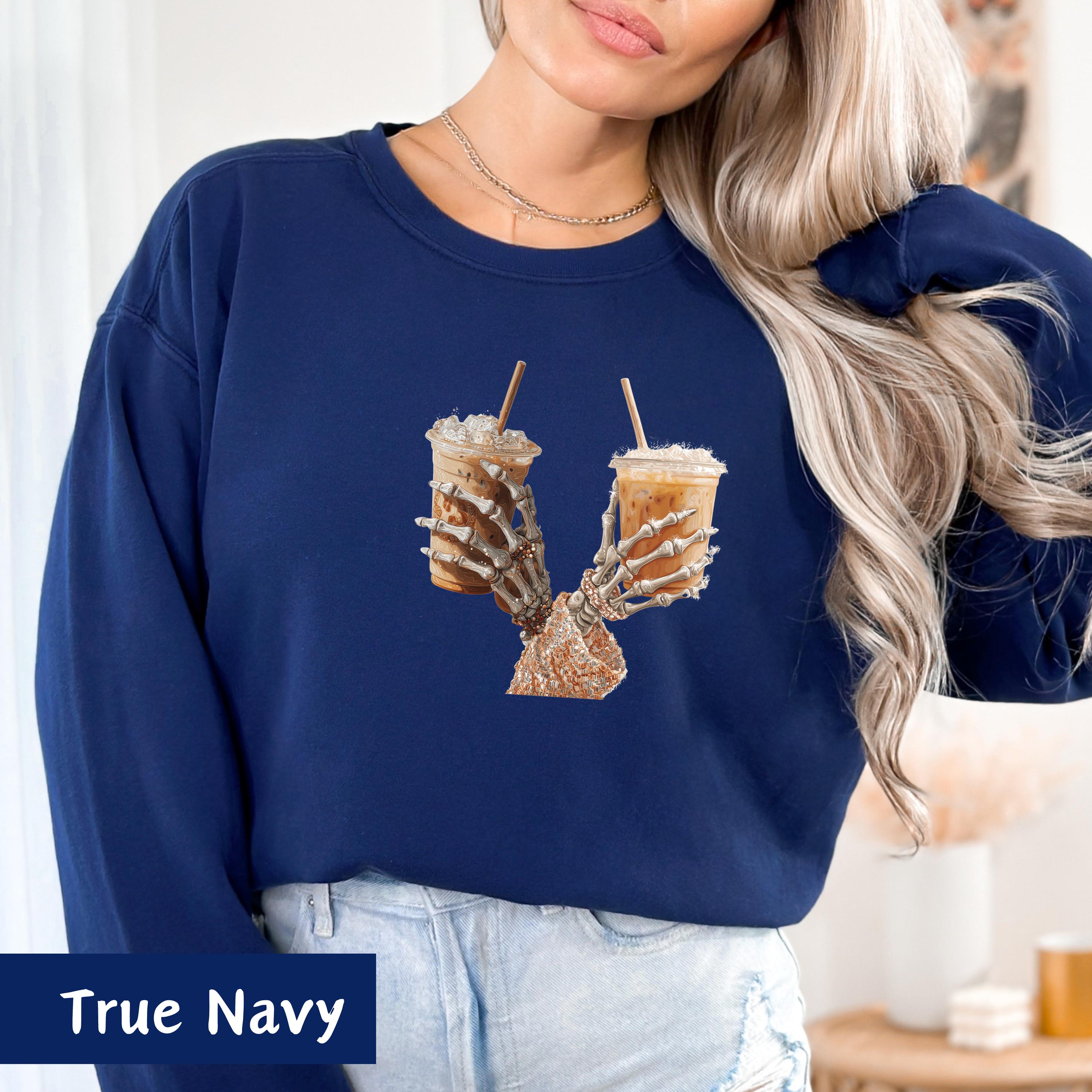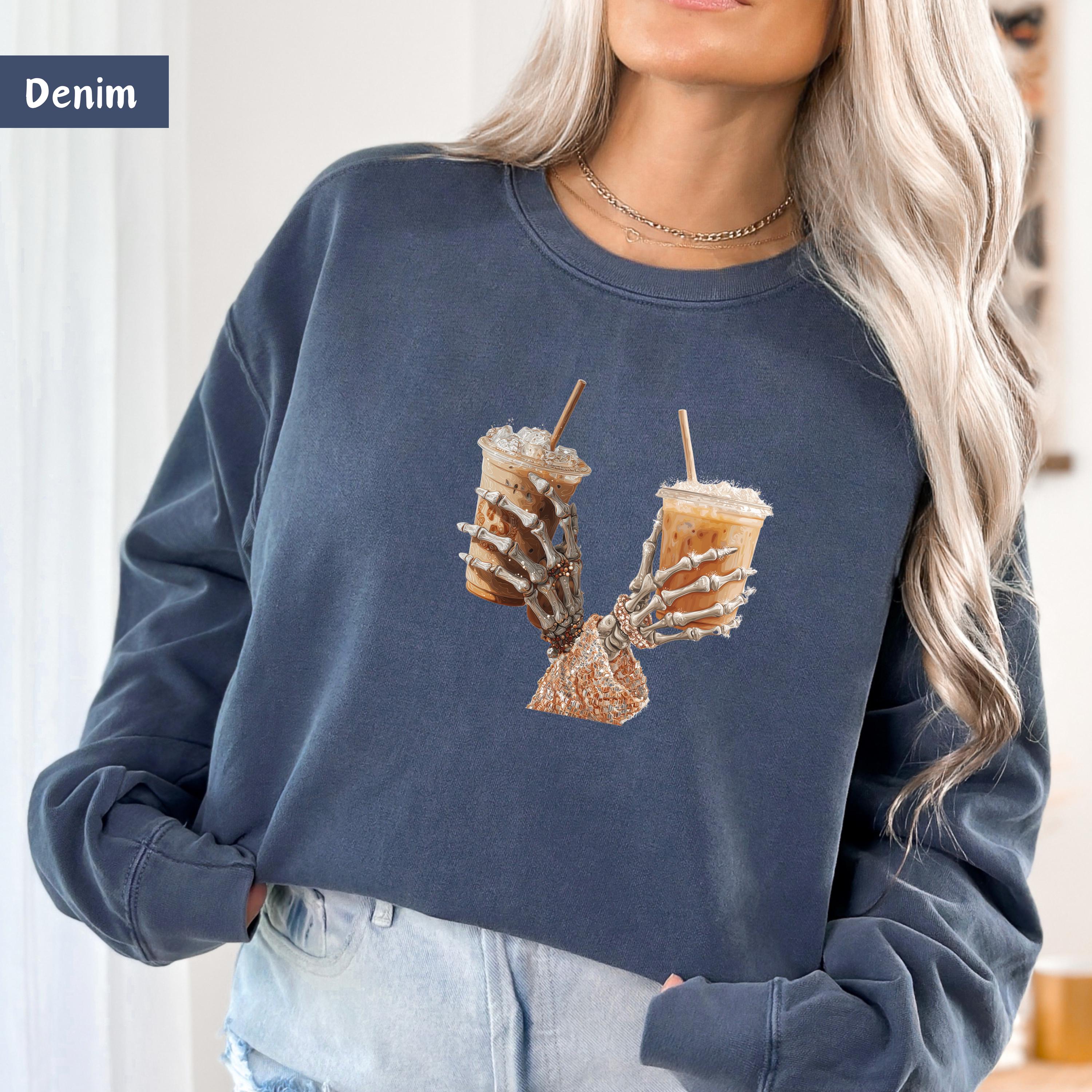 Skeleton Hand Iced Coffee Shirt | Spooky Halloween Coffee Tee | Gothic Shirt | Funny Fall Aesthetic Gift, Funny Spooky Shirt, Coffee Shirt