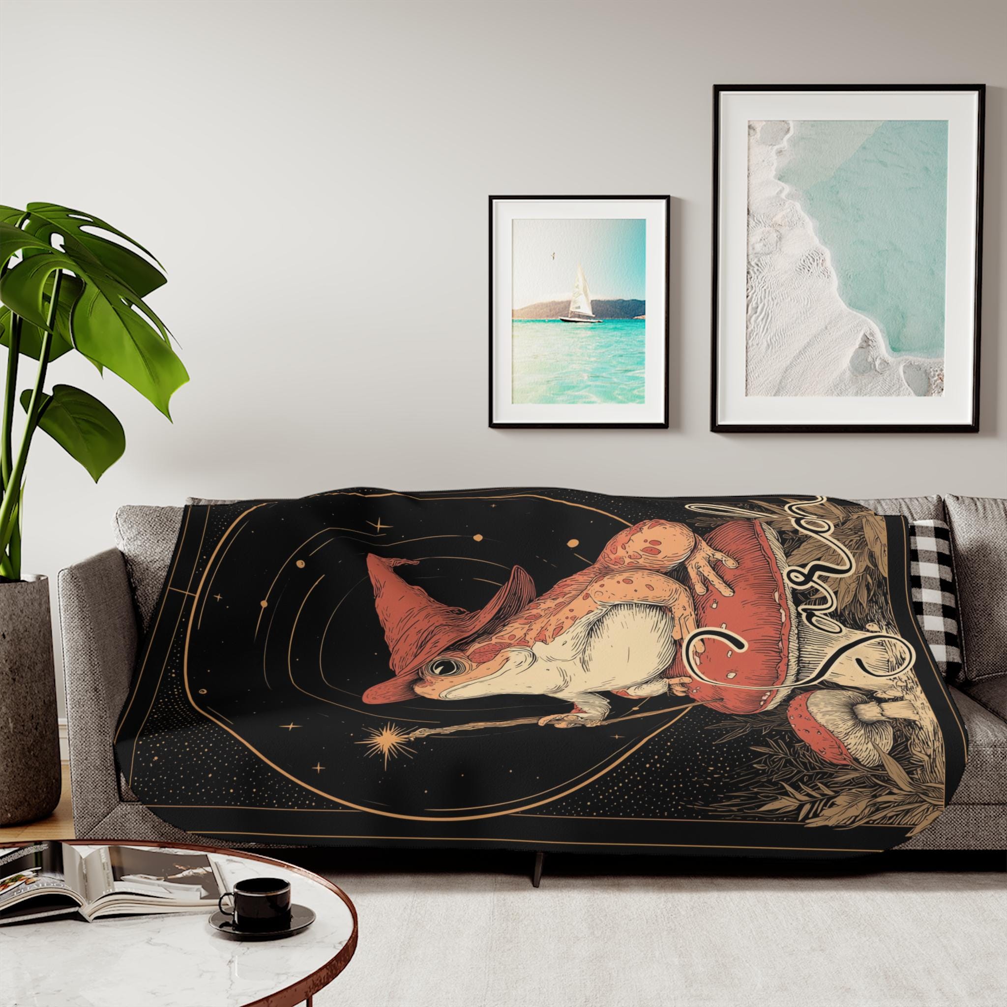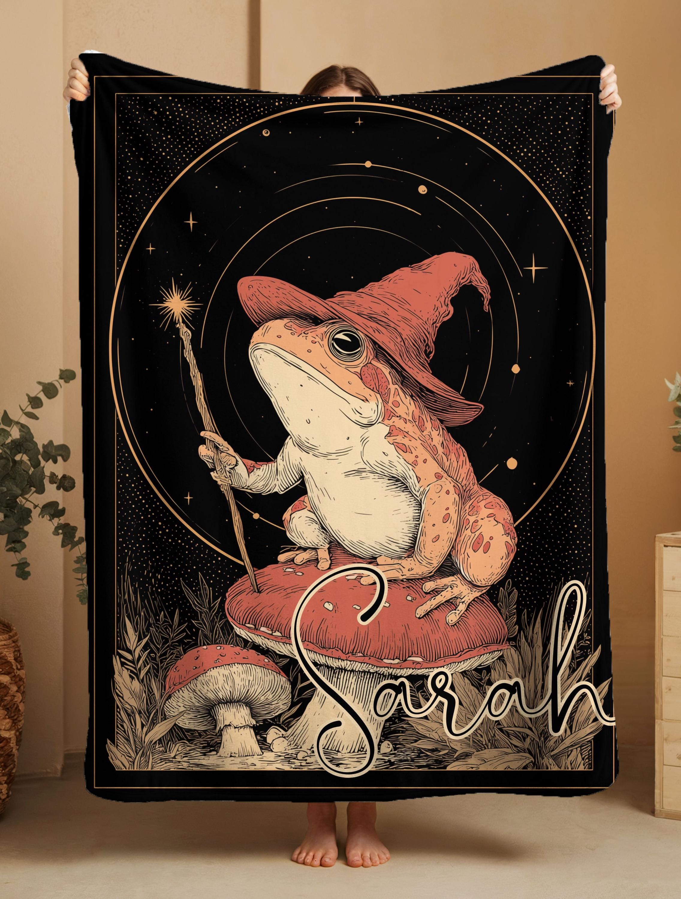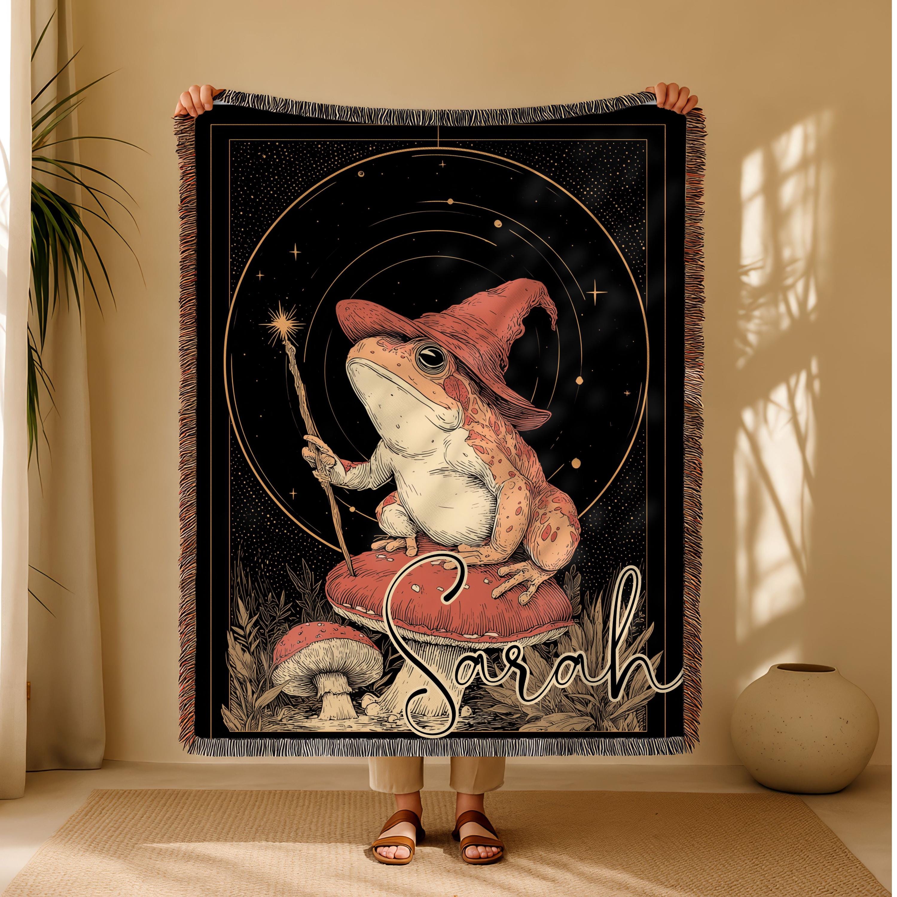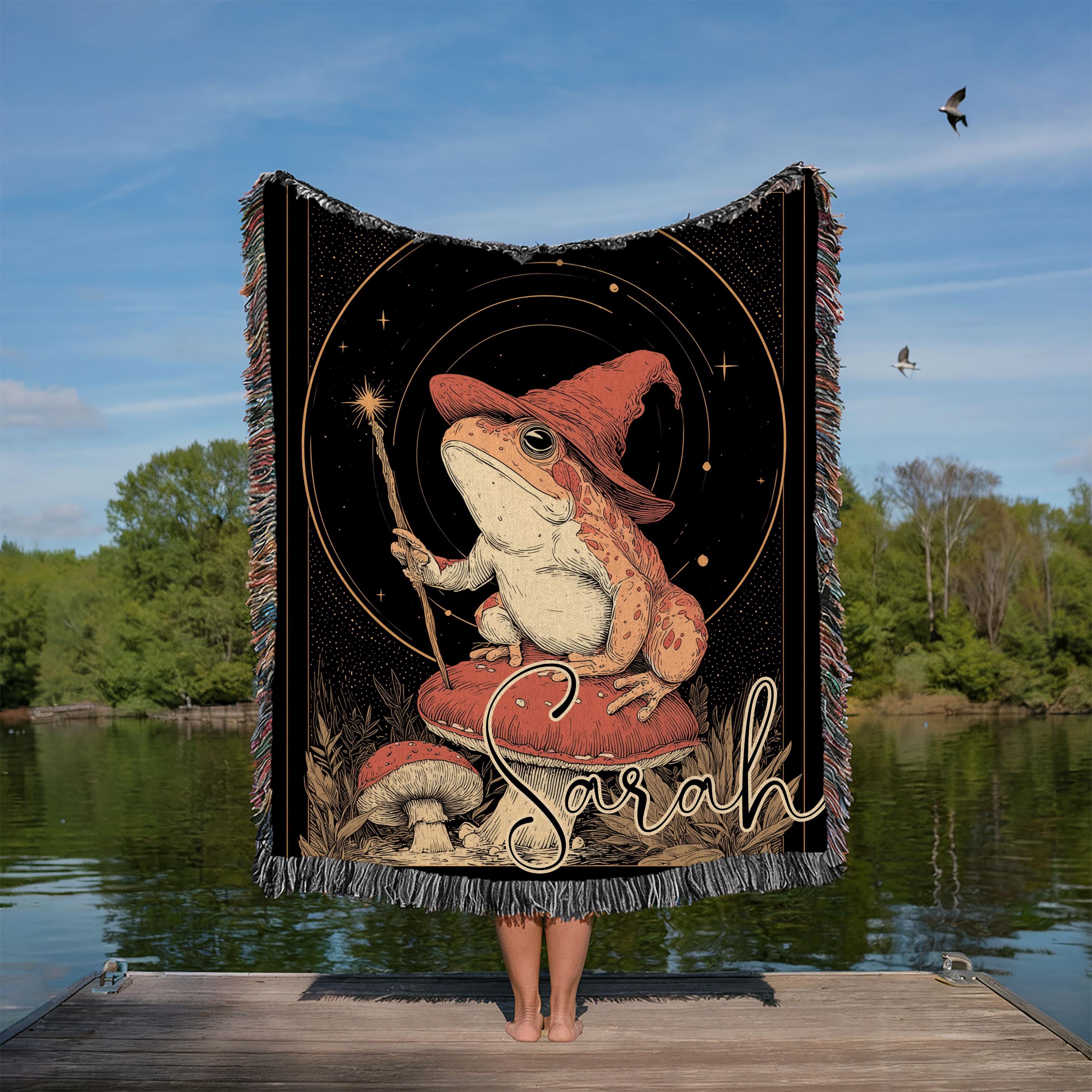Wizard Frog Woven Blanket: Custom Name, Goblincore Blanket, Enchanted Woodland Decor