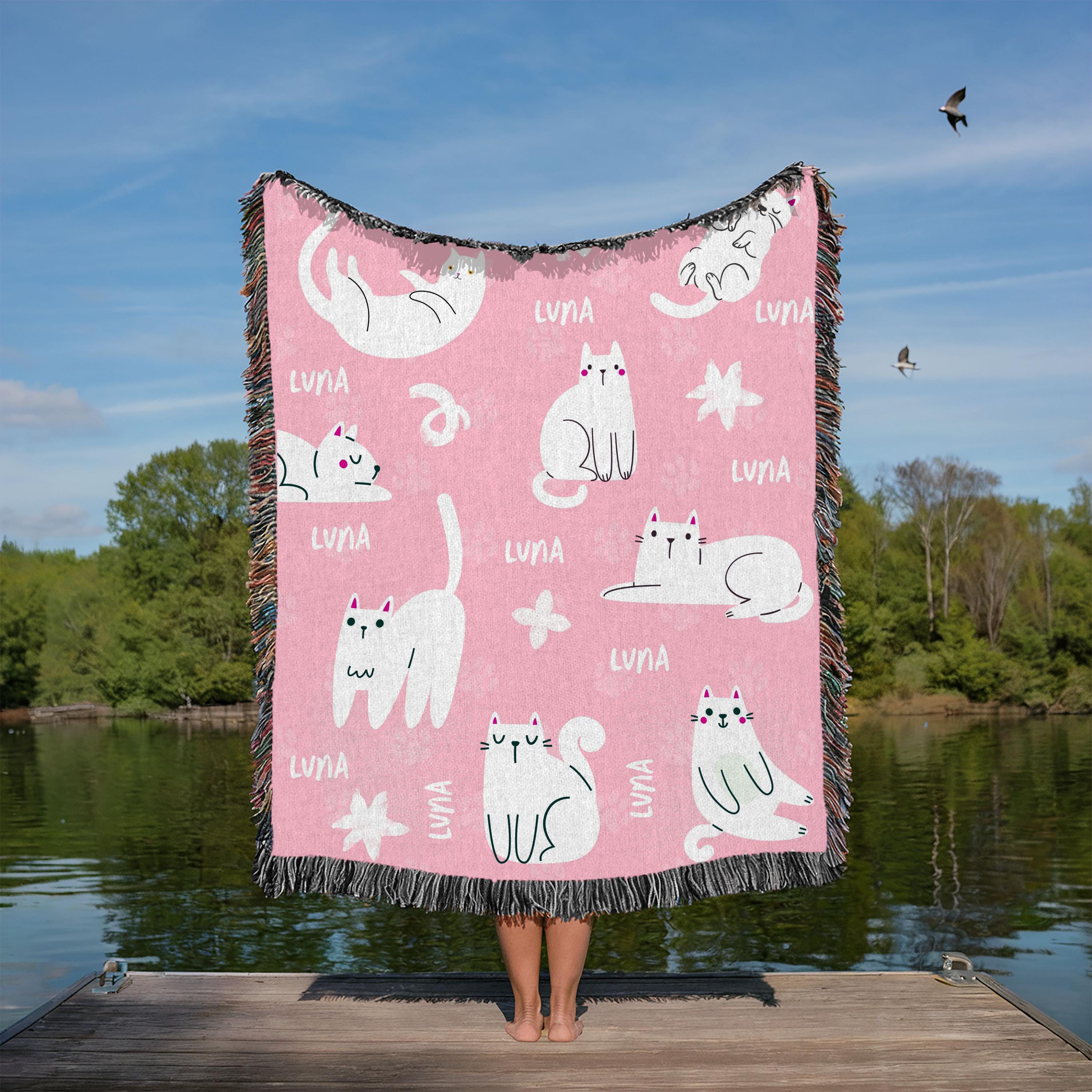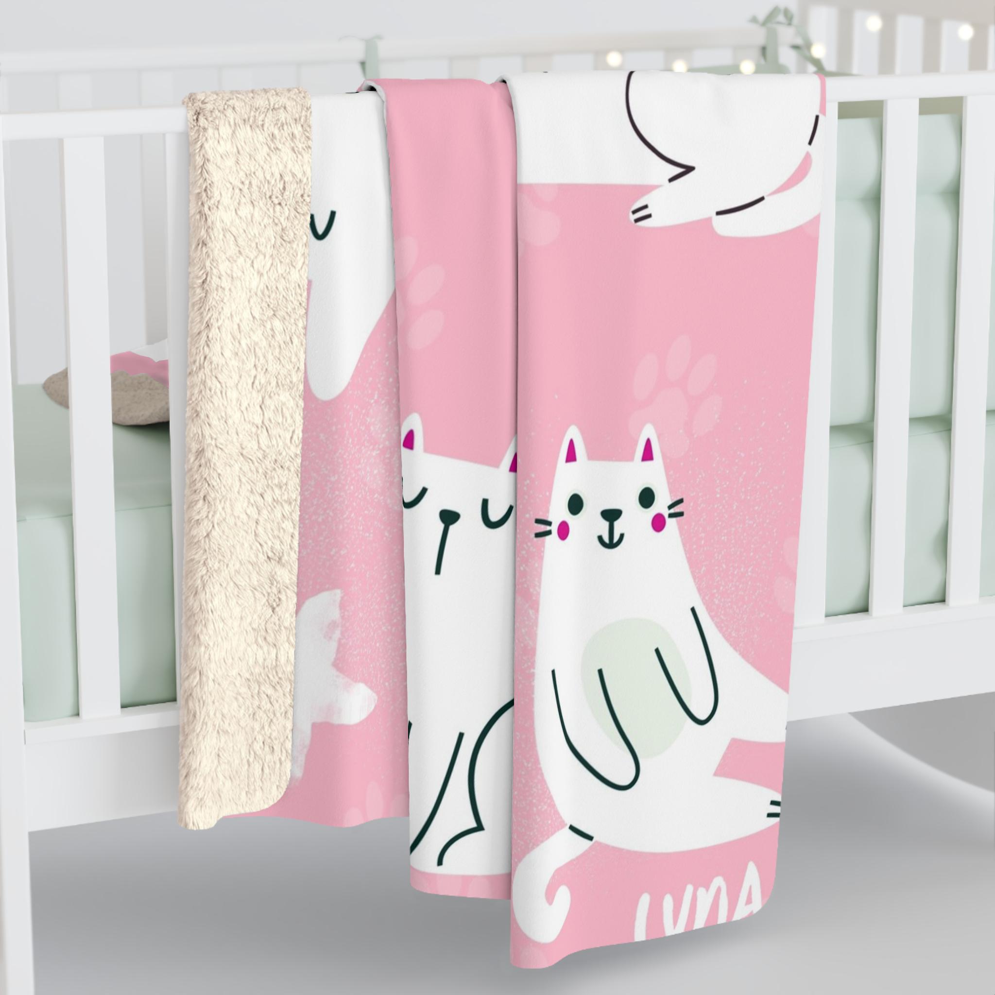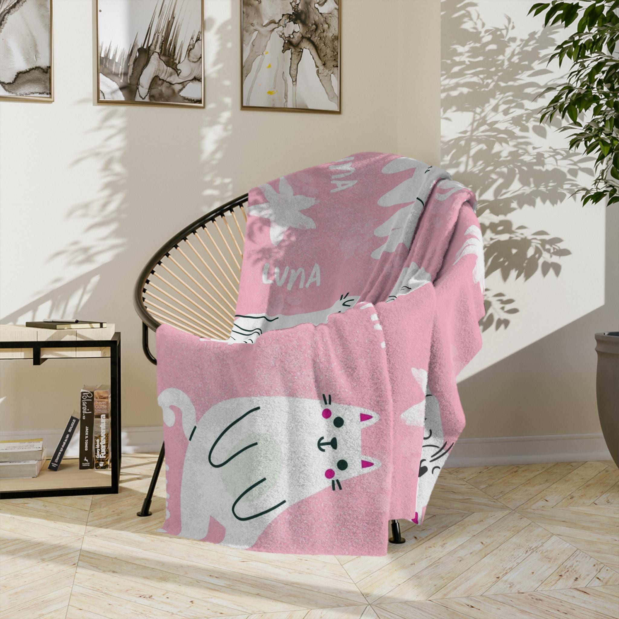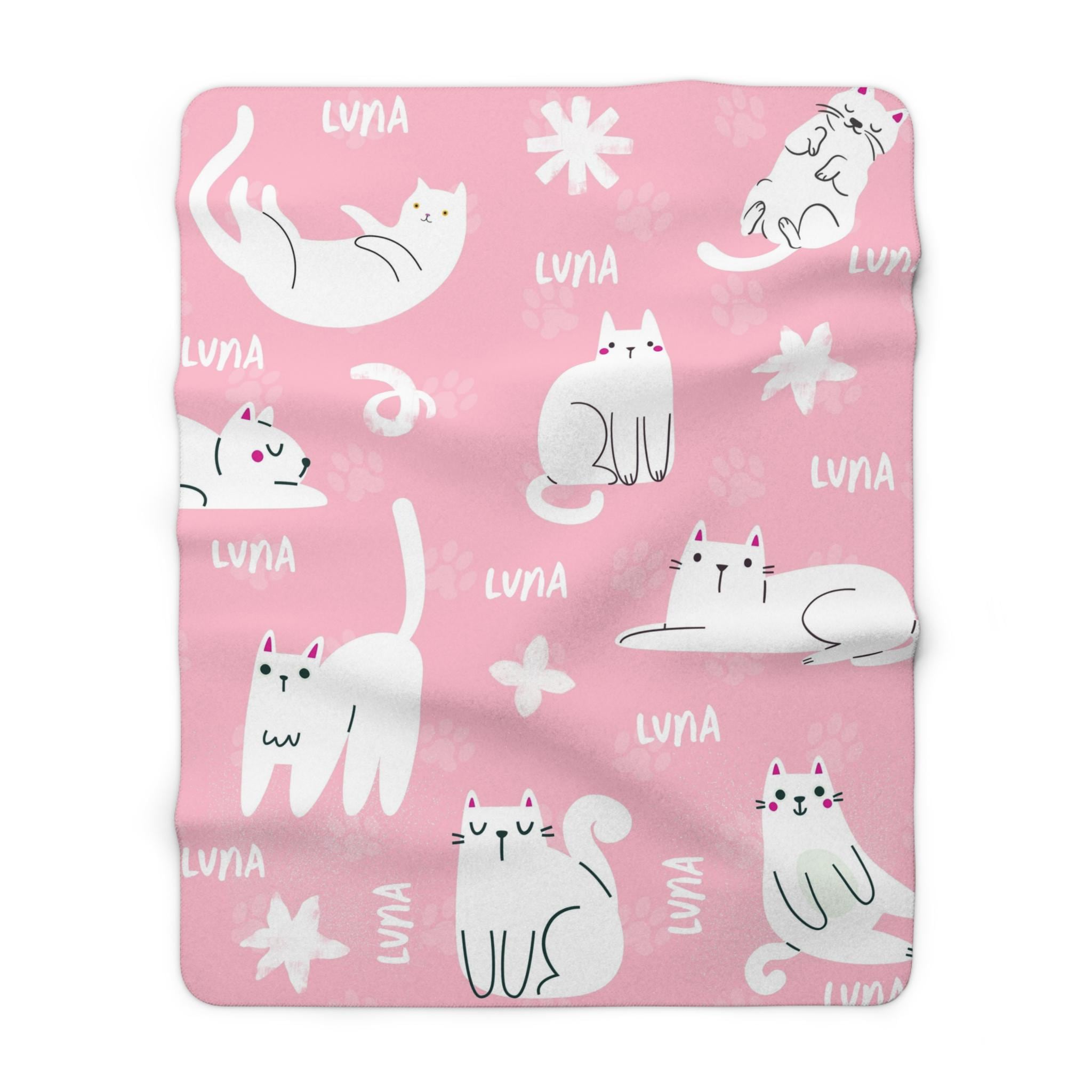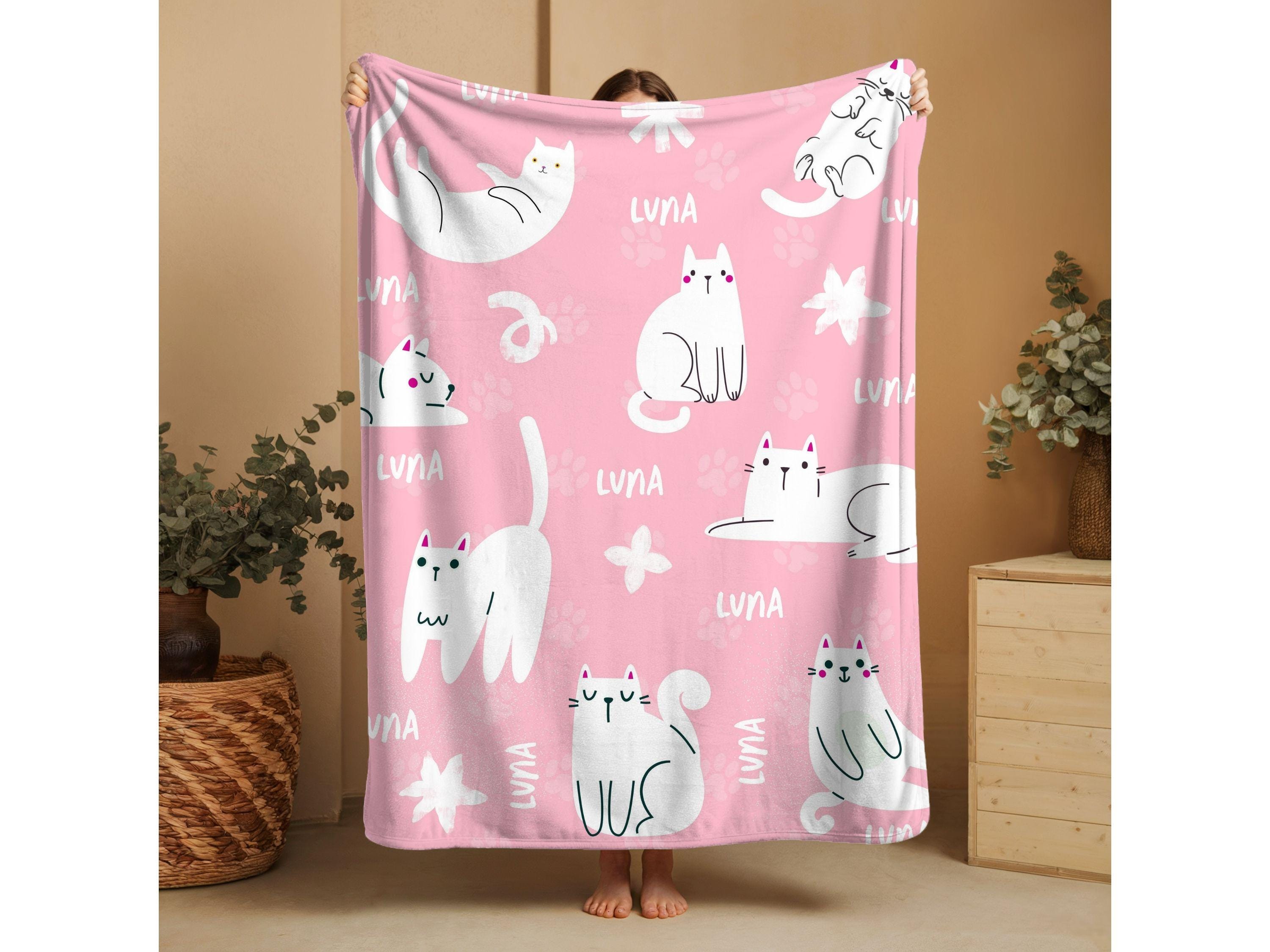 Custom Name Pet Blanket, Fluffy Pink Cat Blanket, Personalized Kitten Blanket, Cat Lover Gift, Throw for Pet Owners available in 4 types
