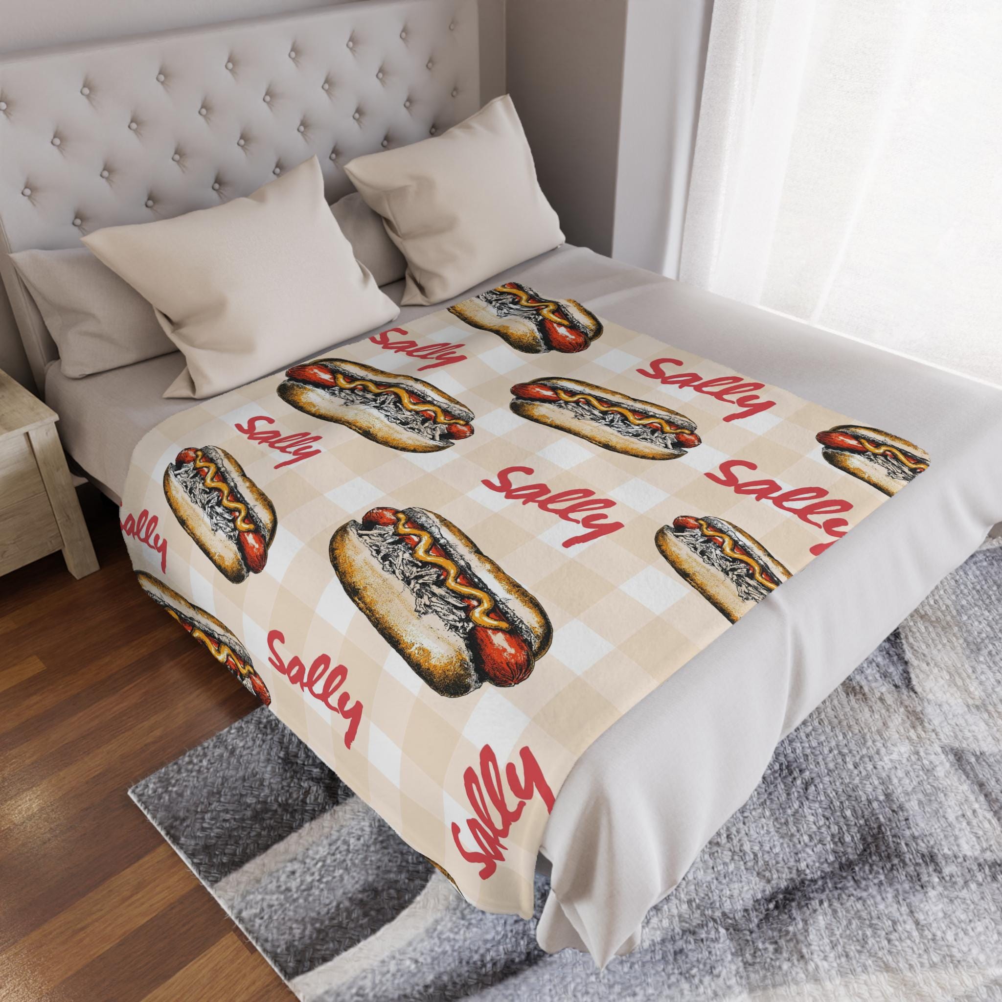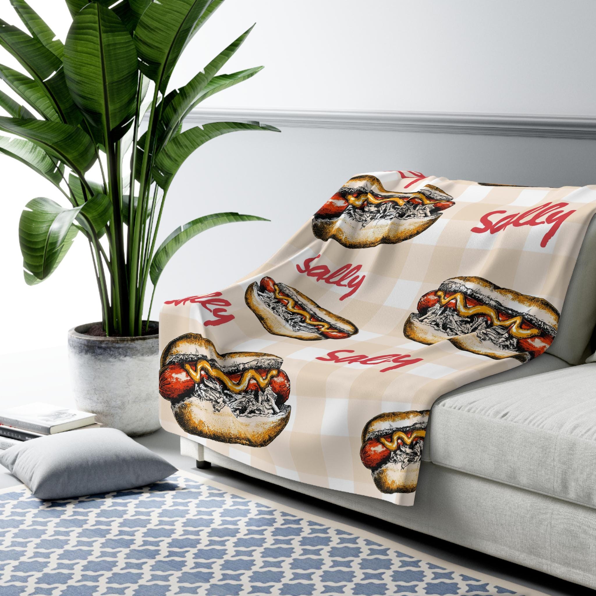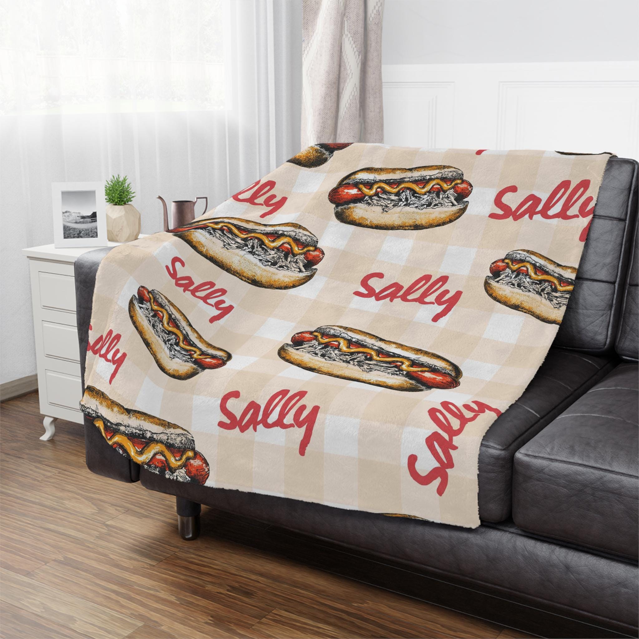Custom name hot dog blanket — the perfect foodie throw for hot dog lovers, kitchens, or quirky home décor.🛋️ Makes a unique housewarming gift or foodie gift set, available in 4 blanket types for every style and occasion.