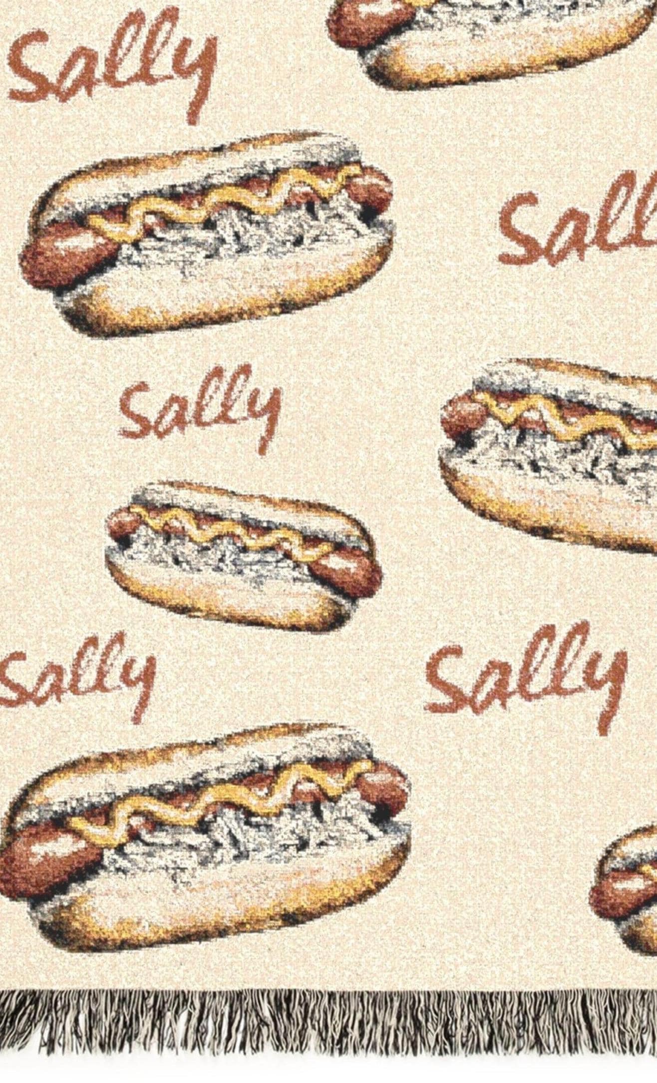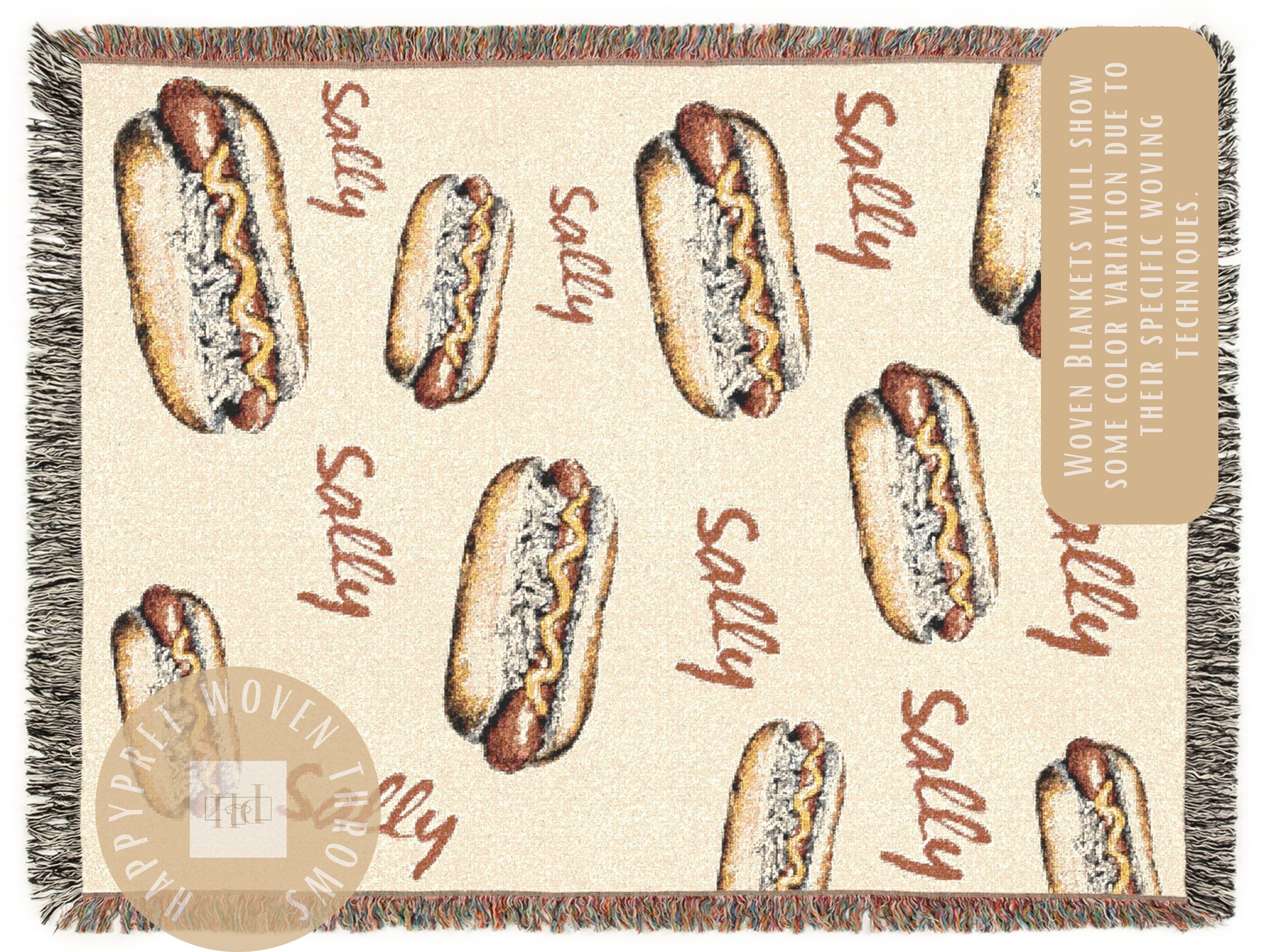 Custom name, Hot Dog tapestry, hot dog blanket, Picnic throw, Weiner Blanket, House Warming Gift, foodie gift set, available in 4 types
