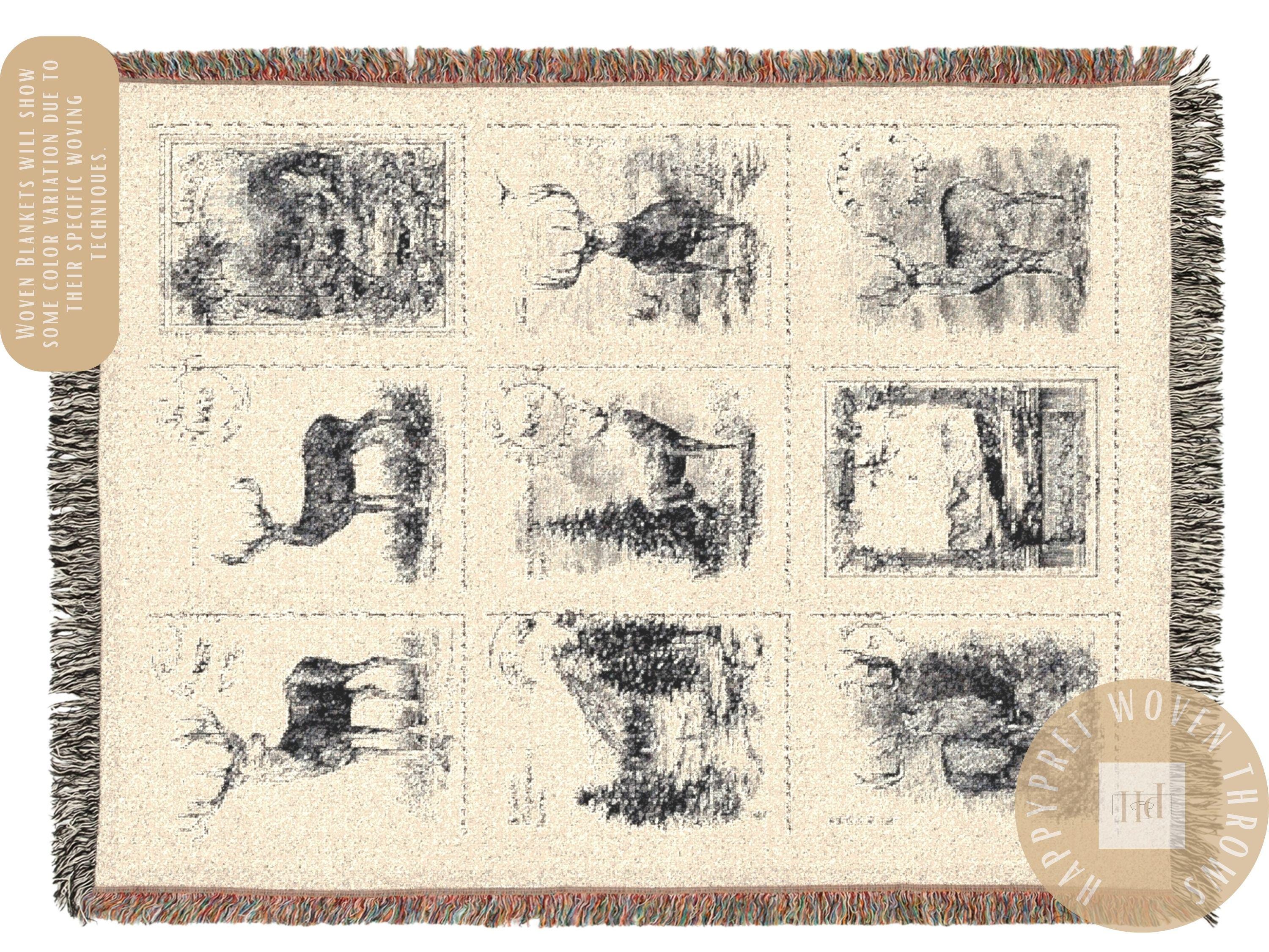 Elk Tapestry, woven Cottagecore Tapestry, elk blanket, Folkore Tapestry, Vintage Elk Blanket, keepsake blanket cabin blanket, 4 types