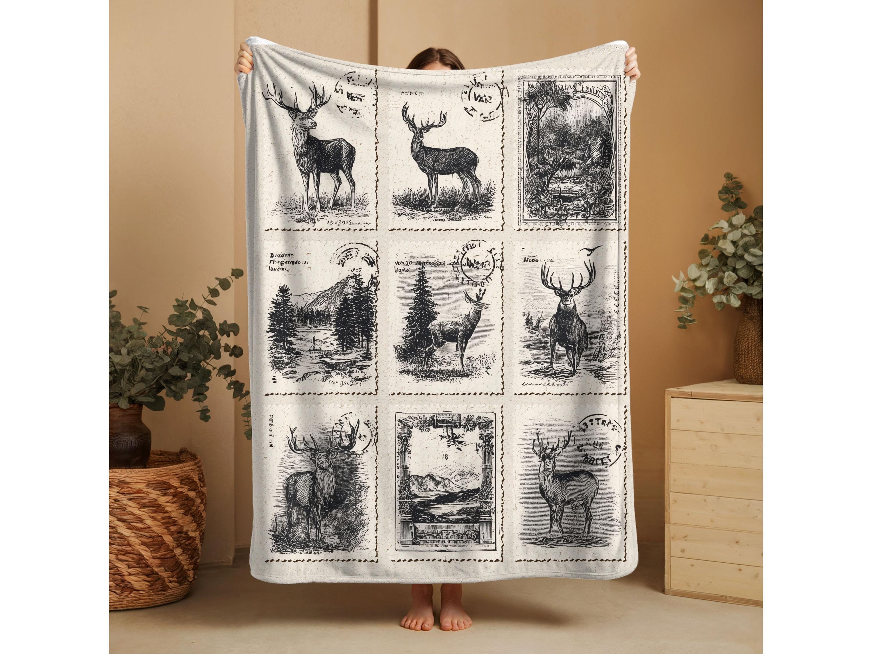 Folklore Inspired ElkTapestry, Cottagecore Dark academia Throws and Blankets.