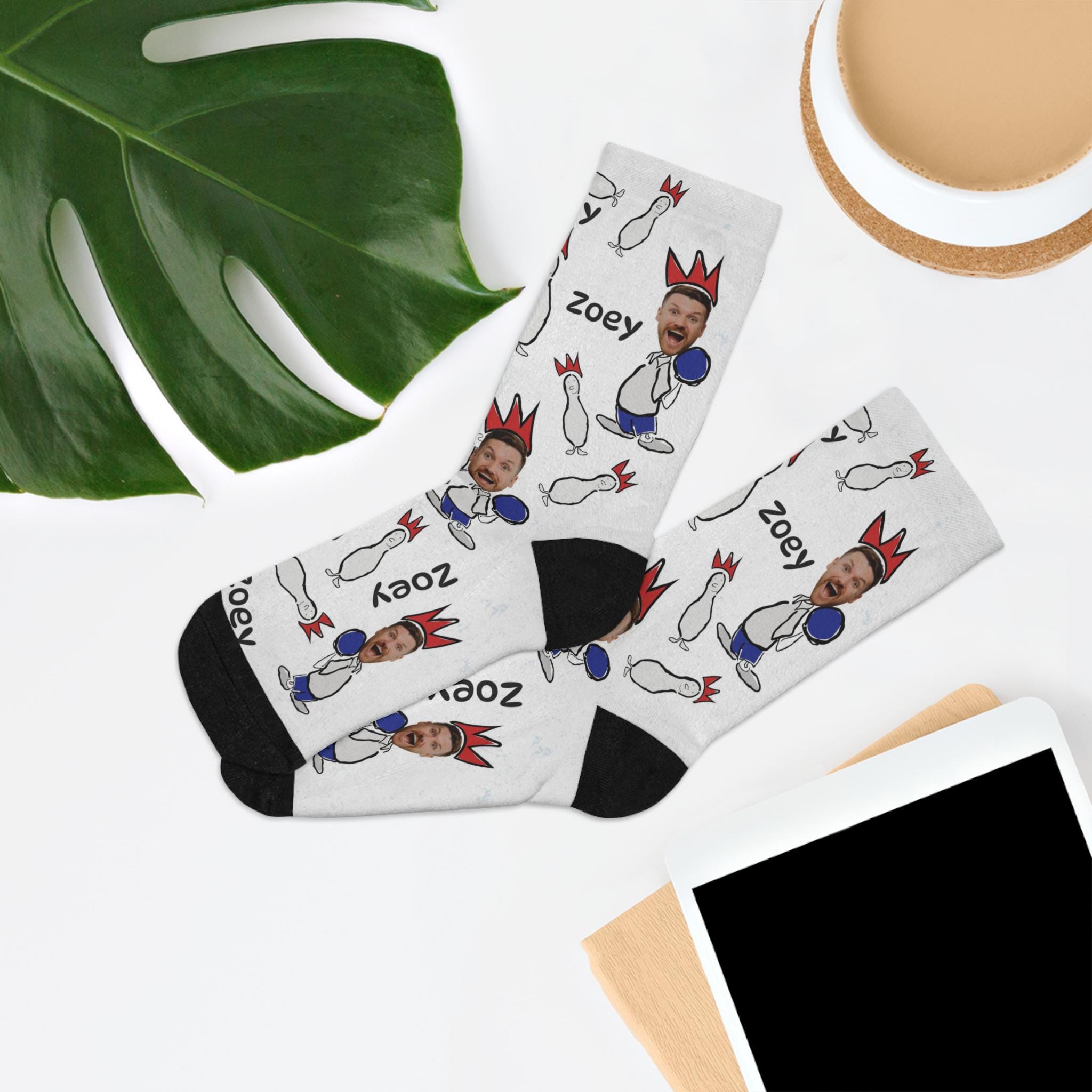 custom bowling socks, funny photo socks, personalized bowling gift, socks for him, Custom face socks, printed socks, fun sports gift