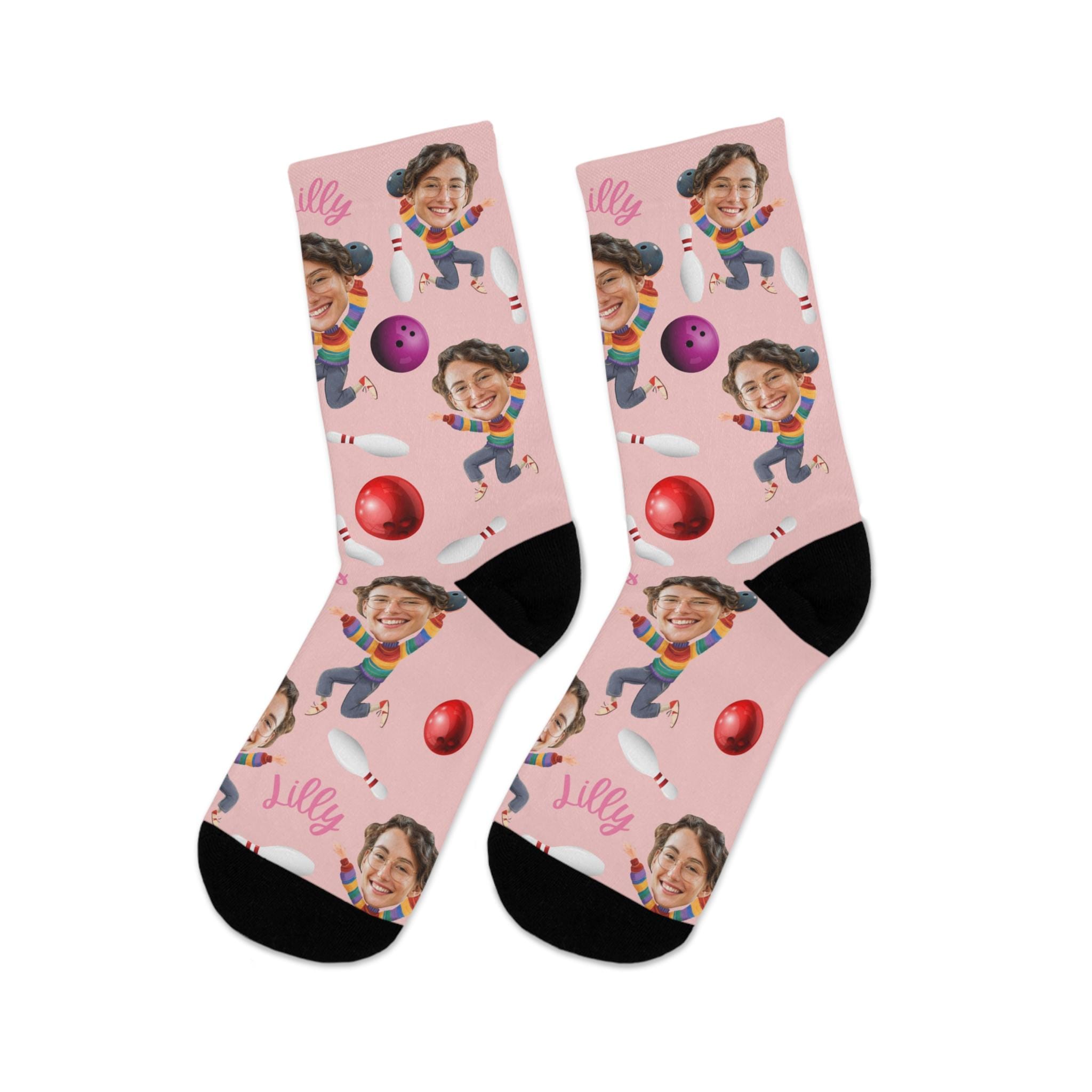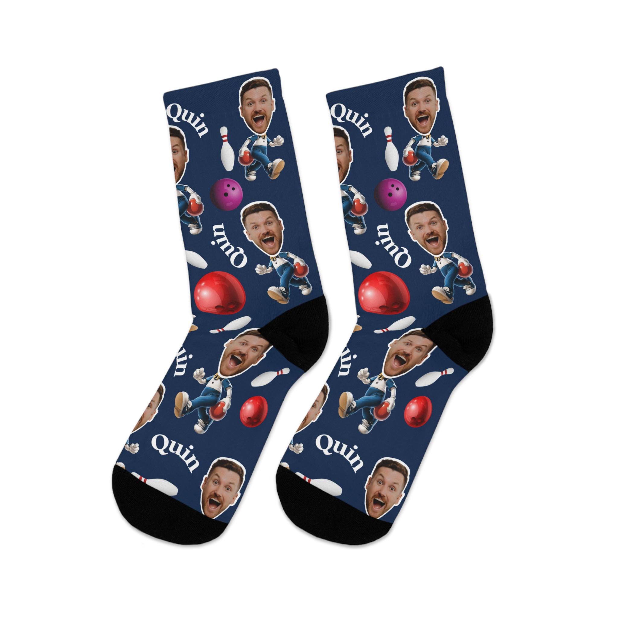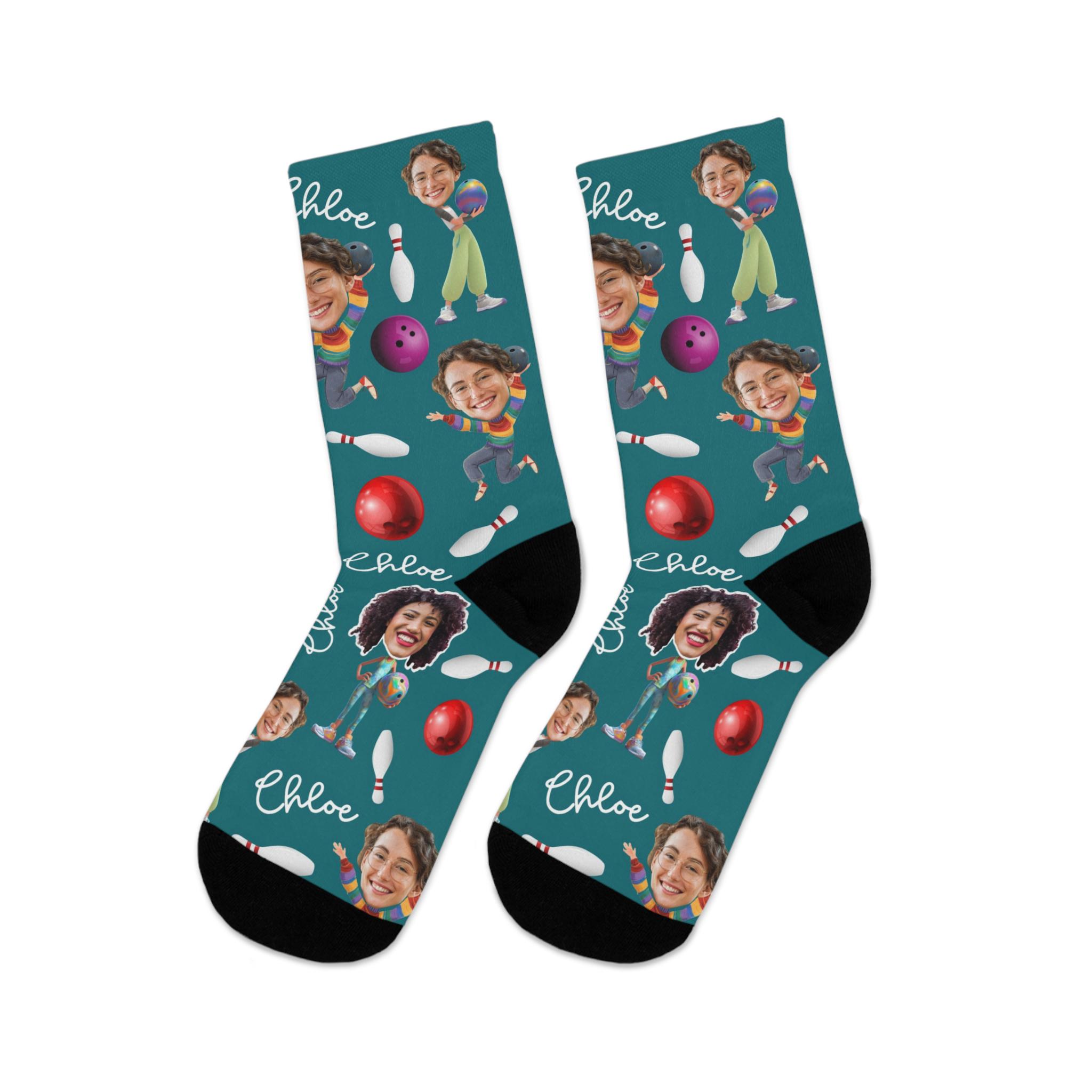 custom bowling socks, funny photo socks, personalized bowling gift, socks for him, Custom face socks, printed socks, fun sports gift