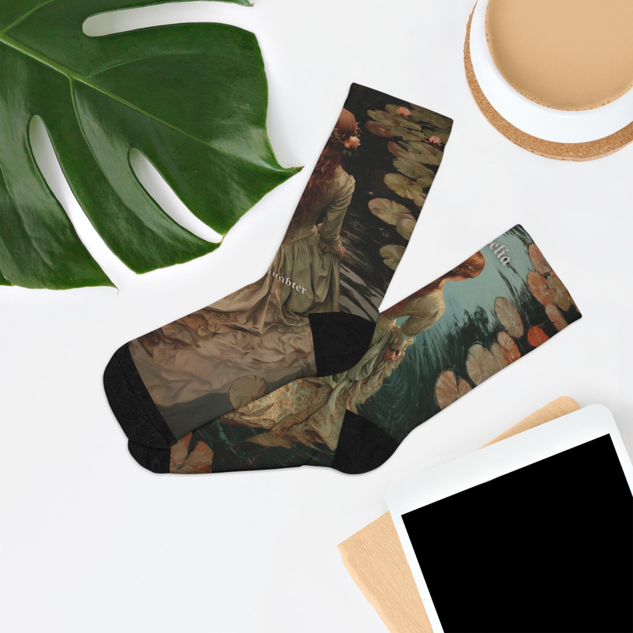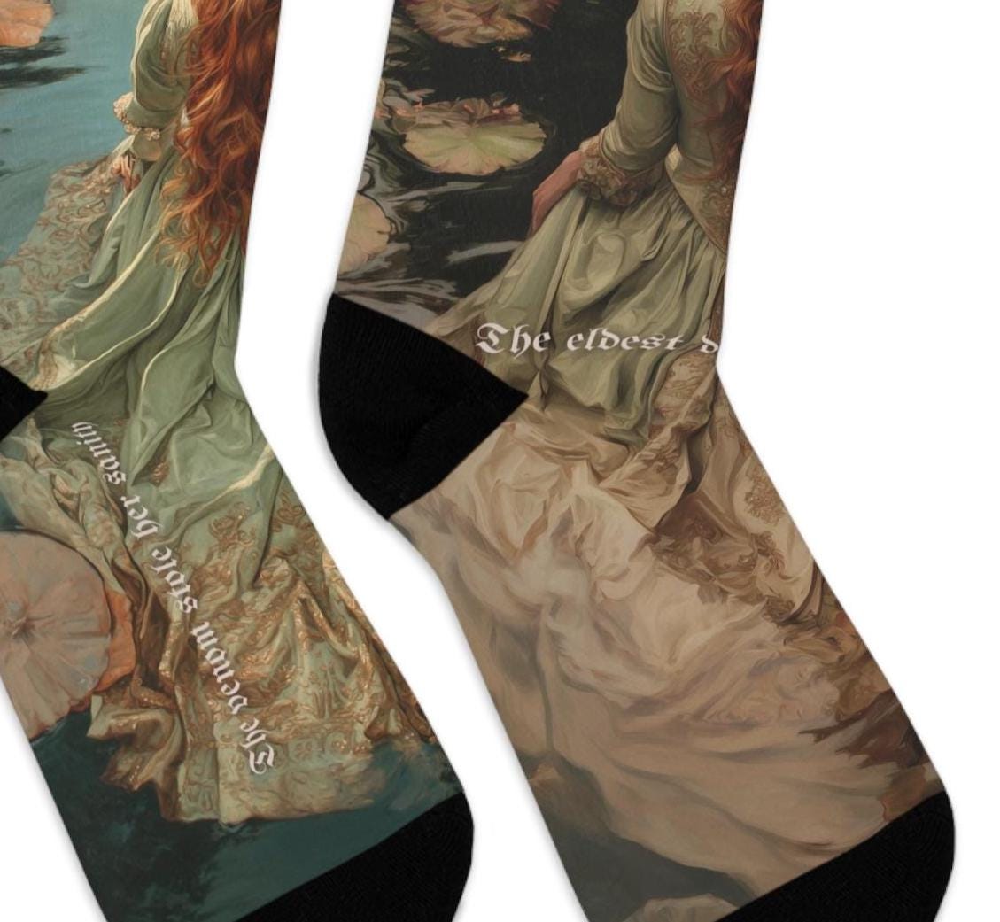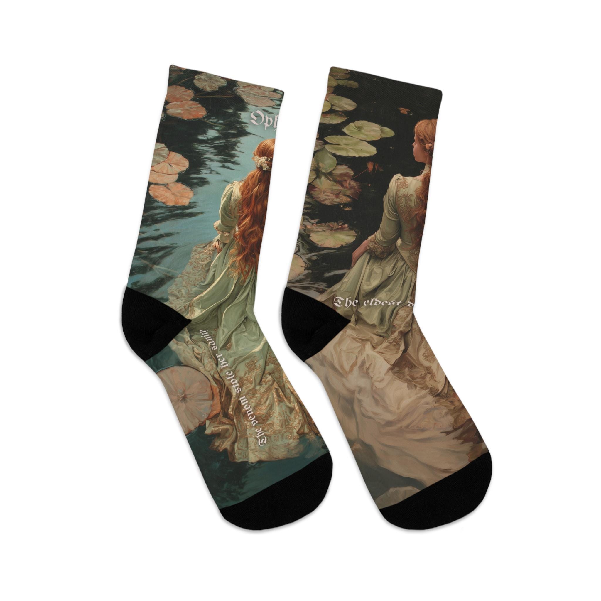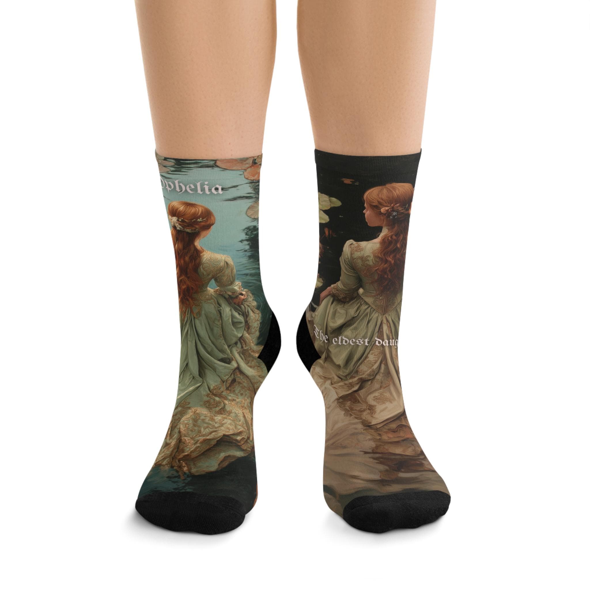 Ophelia Socks, Shakespearean Literature, Fan art Socks, Gift for her, Opalite Girl, Showgirl aesthetics, Hamlet, Shakespeare, Art, Fanclub