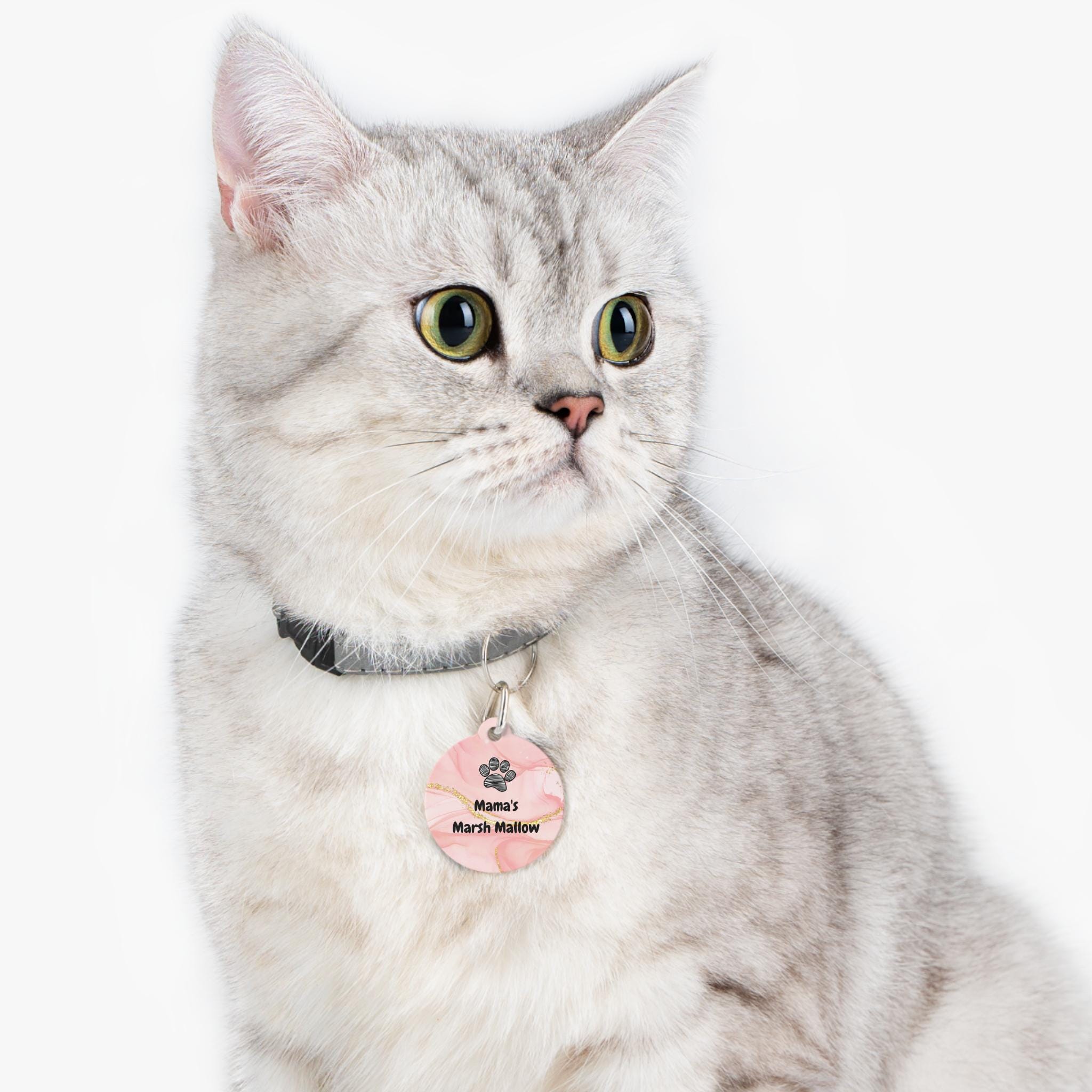 Custom Pet Tag, Personalized Ceramic Pet ID Tag | Cute Pink Marble Design | Fully Customizable | Cat & Dog Name Tag