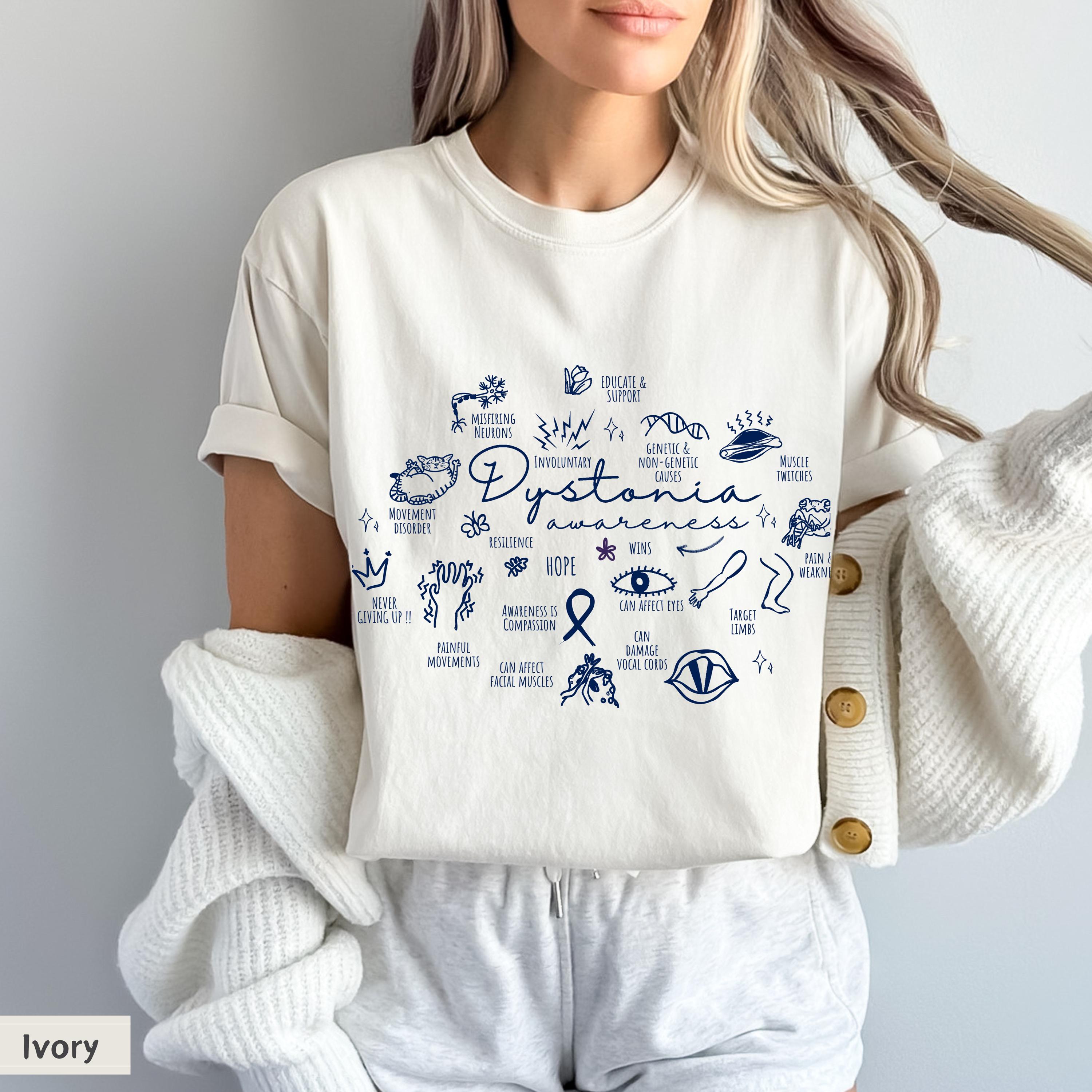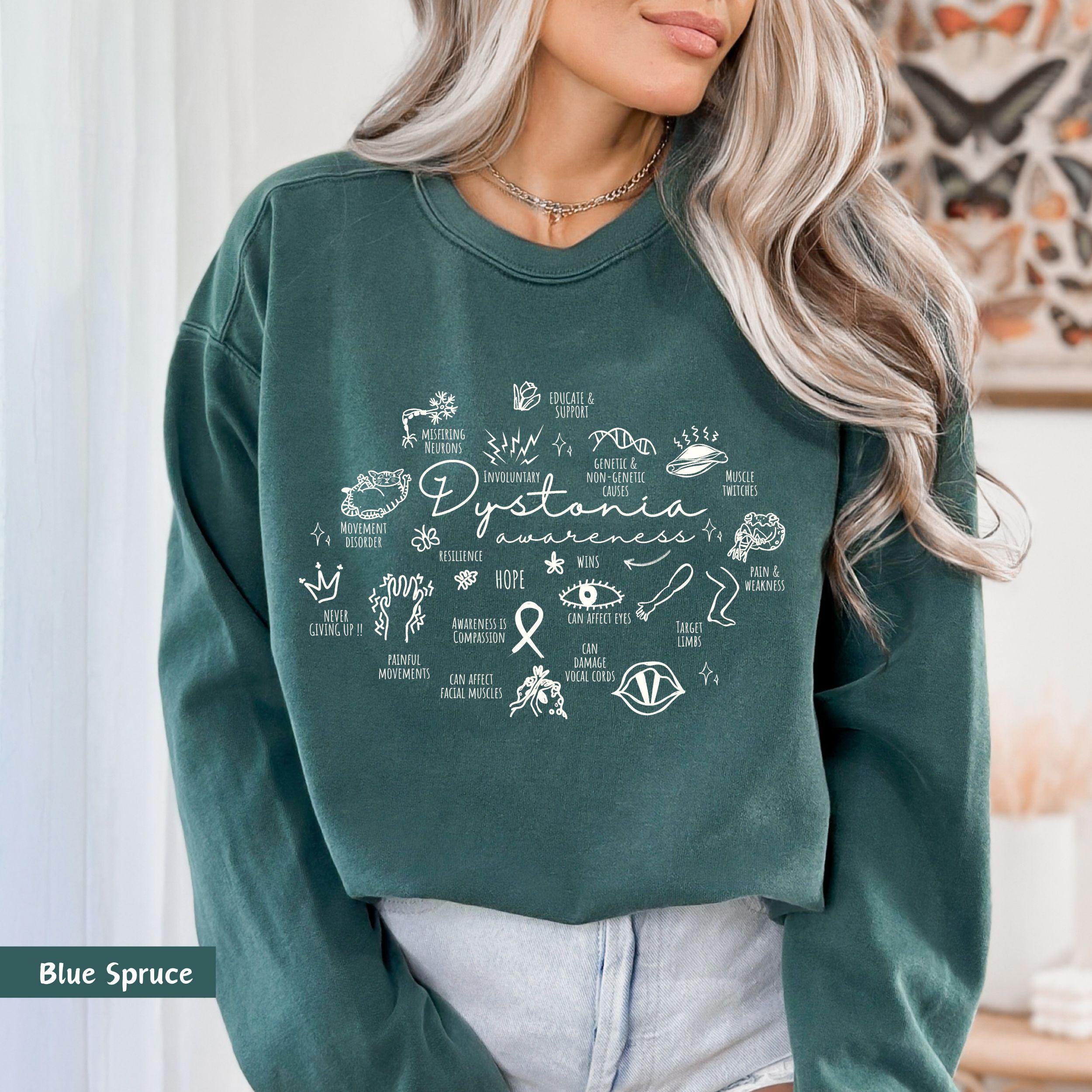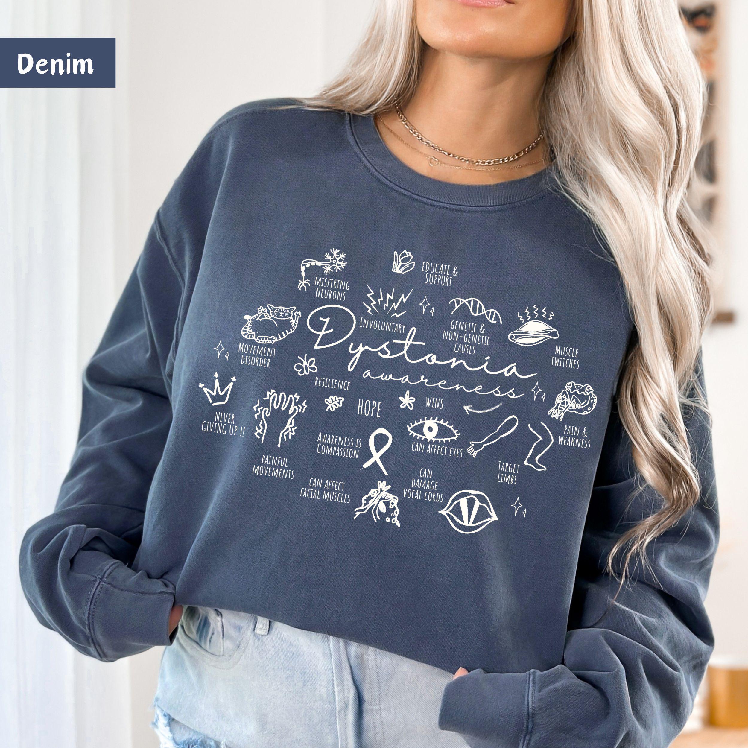 A Customisable comfort colors shirt and sweatshirt for a strong people who are surviving and fighting Dystonia. Awareness Shirt, Support Dystonia Walk Tees, Blue Ribbon Shirts, Dystonia Warrior, Gift For Dystonia Awareness, Dystonia Awareness Month Shirt, Blue Dystonia T-Shirt,  Rare Disease Shirt, funny dysautonomia shirt, Medical Unicorn