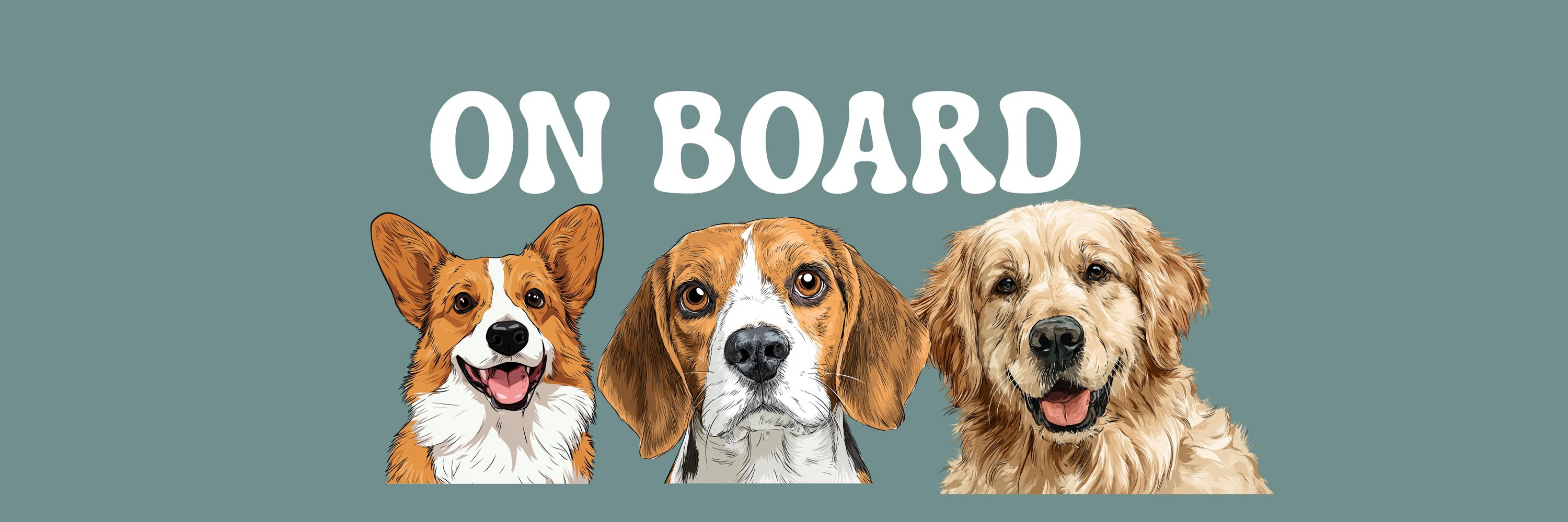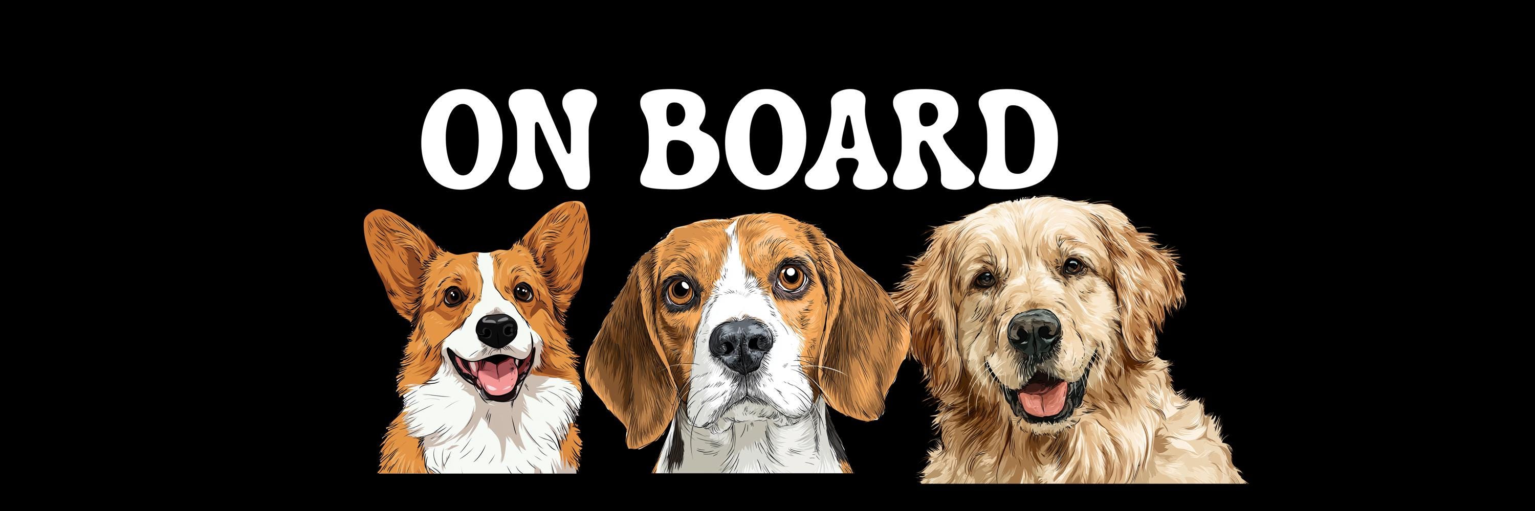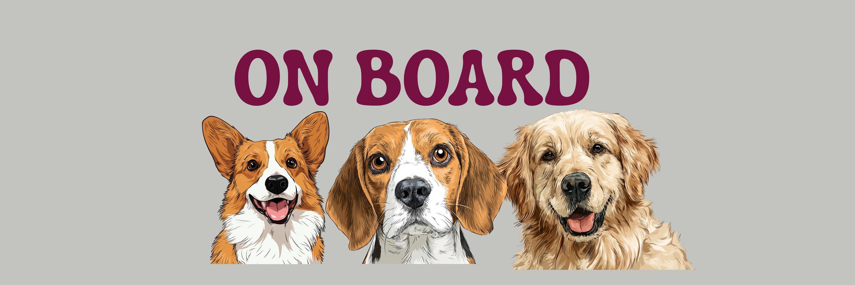 Custom Dog Car Magnet – “On Board” Sign with Cute Dog Illustrations – Pet On Board Magnet – Funny Car Accessory for Dog Lovers
