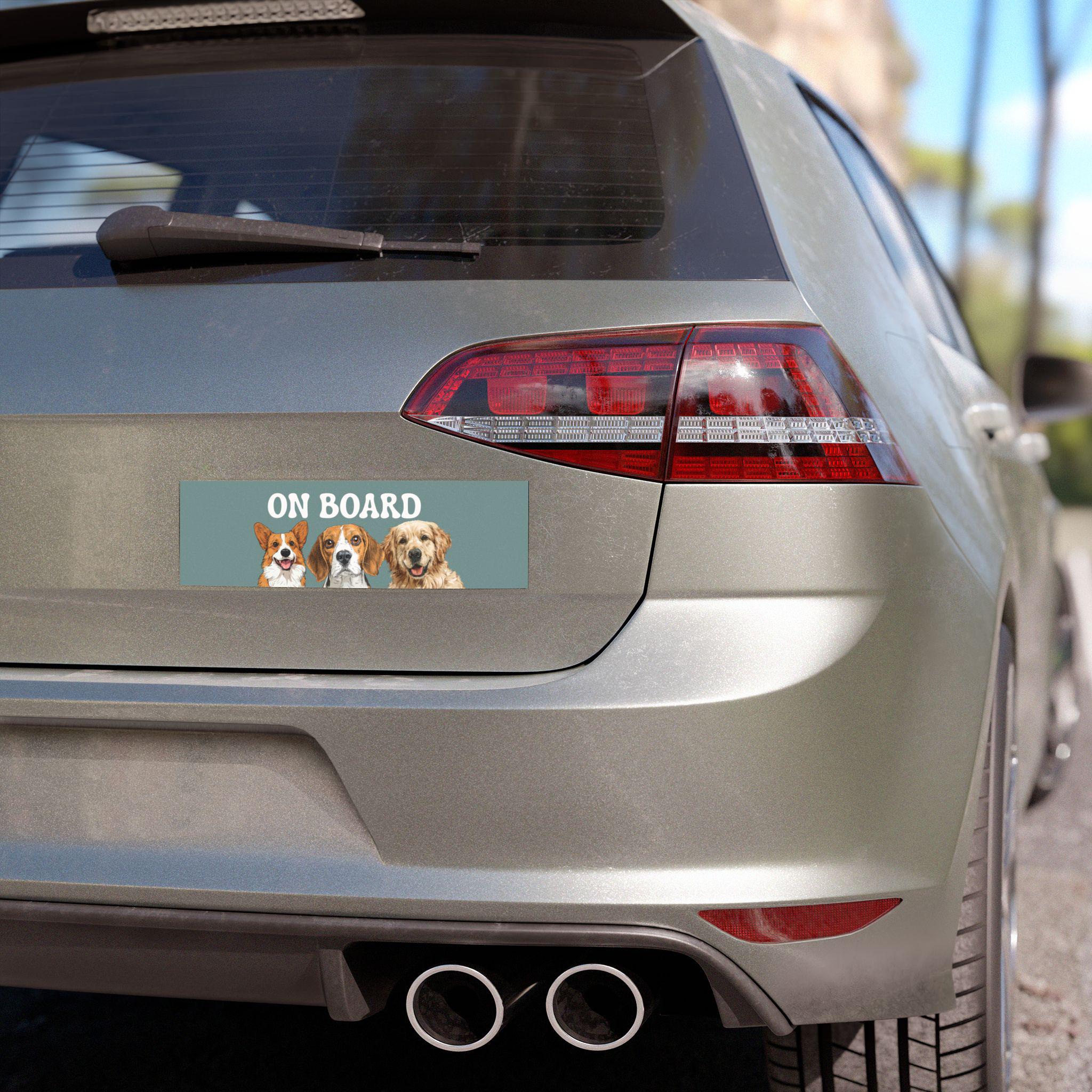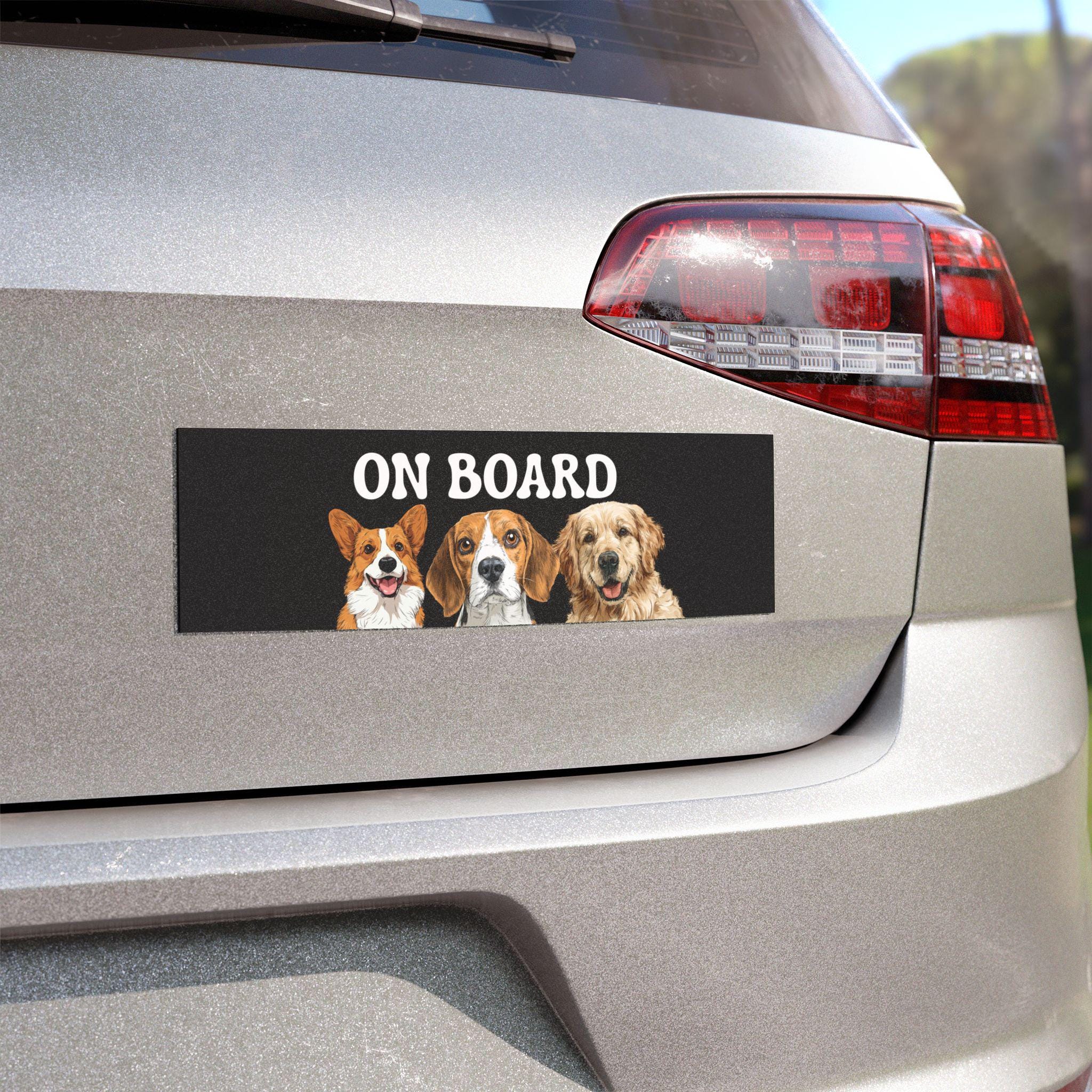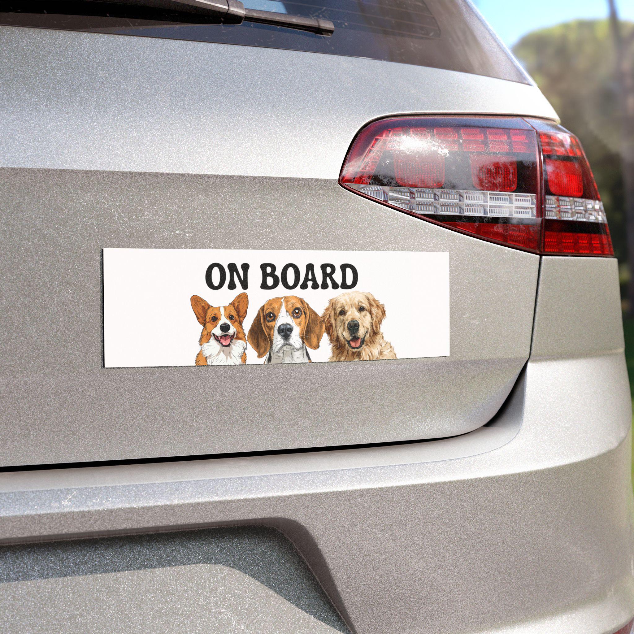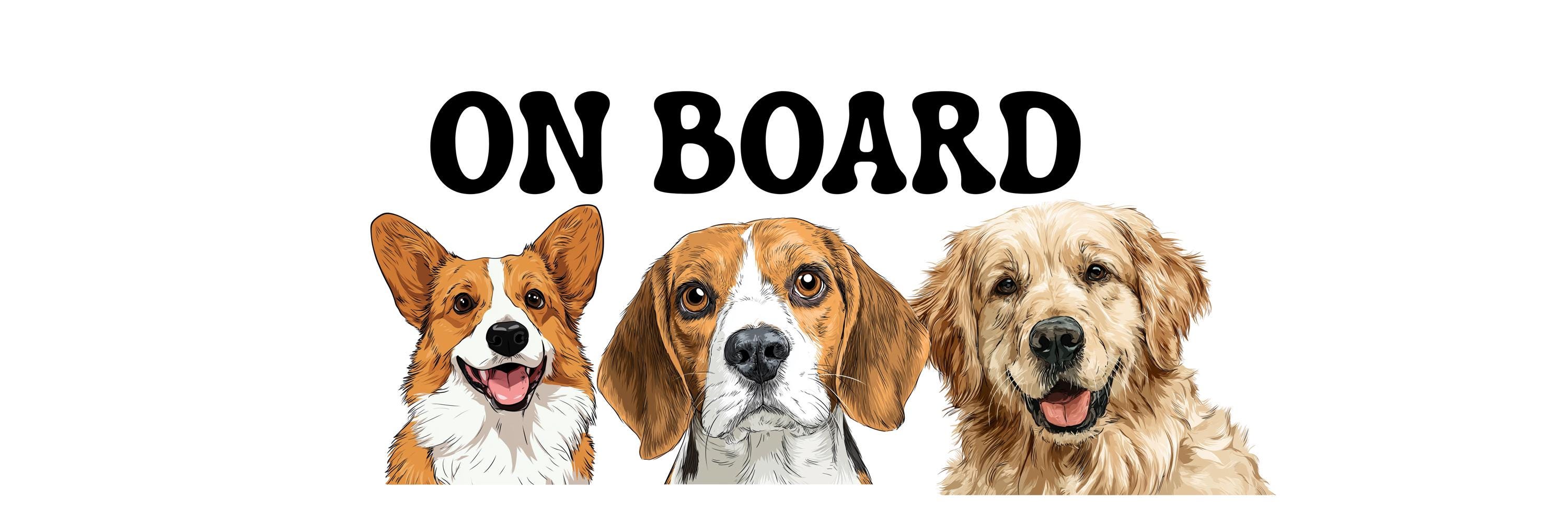 Custom Dog Car Magnet – “On Board” Sign with Cute Dog Illustrations – Pet On Board Magnet – Funny Car Accessory for Dog Lovers