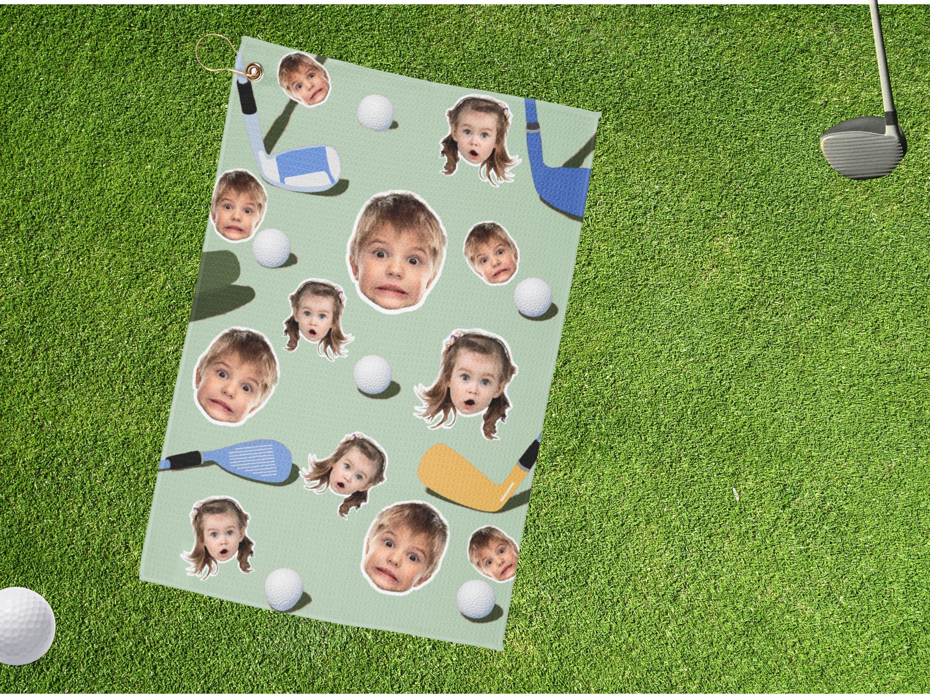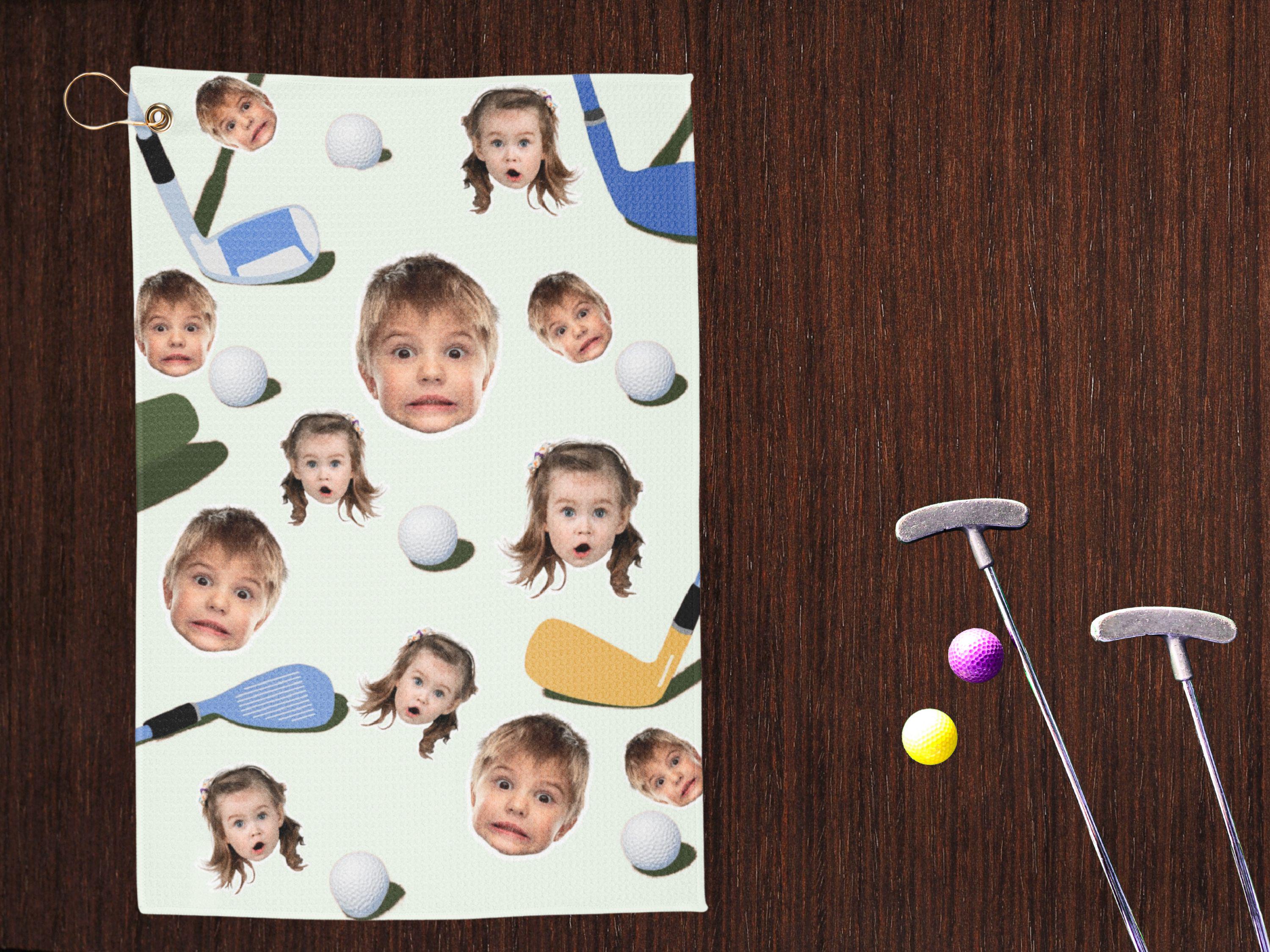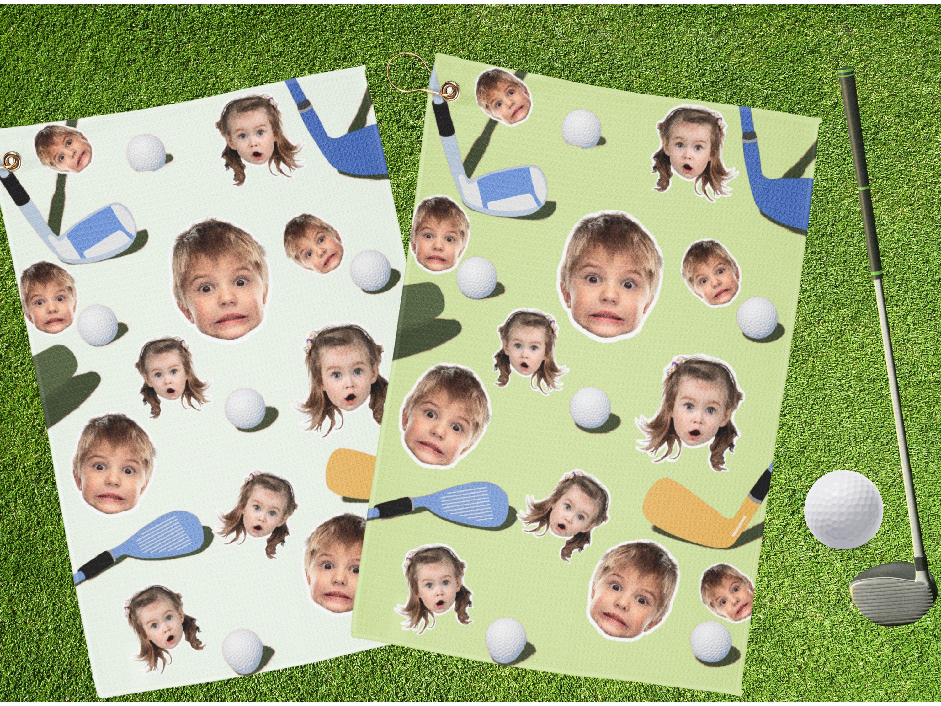 Custom Photo Golf Towel, Golf Players gift, Personalized Baby Face Golf Towel, Golf Towel With Kids Faces, Baby Photo Gift, Best Dad By Par