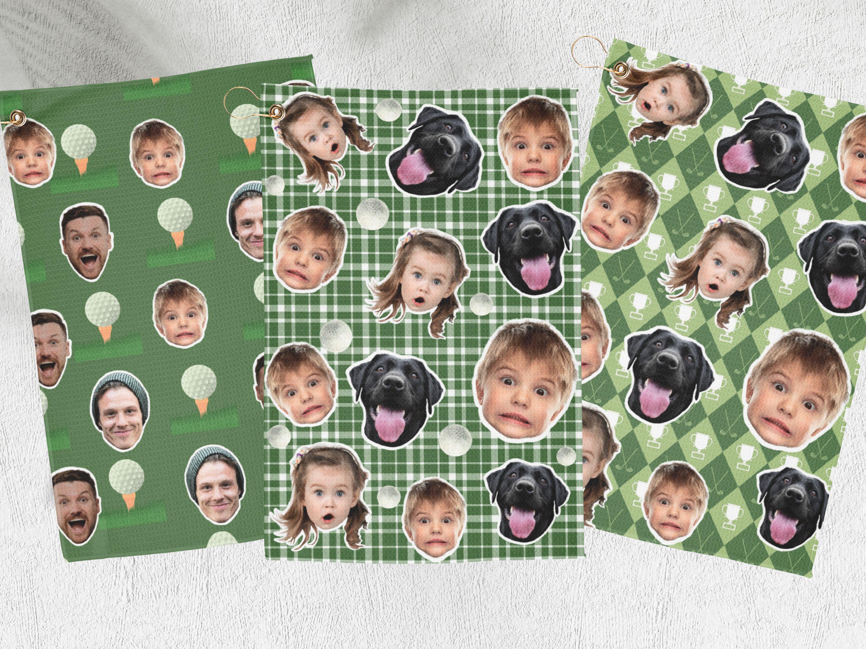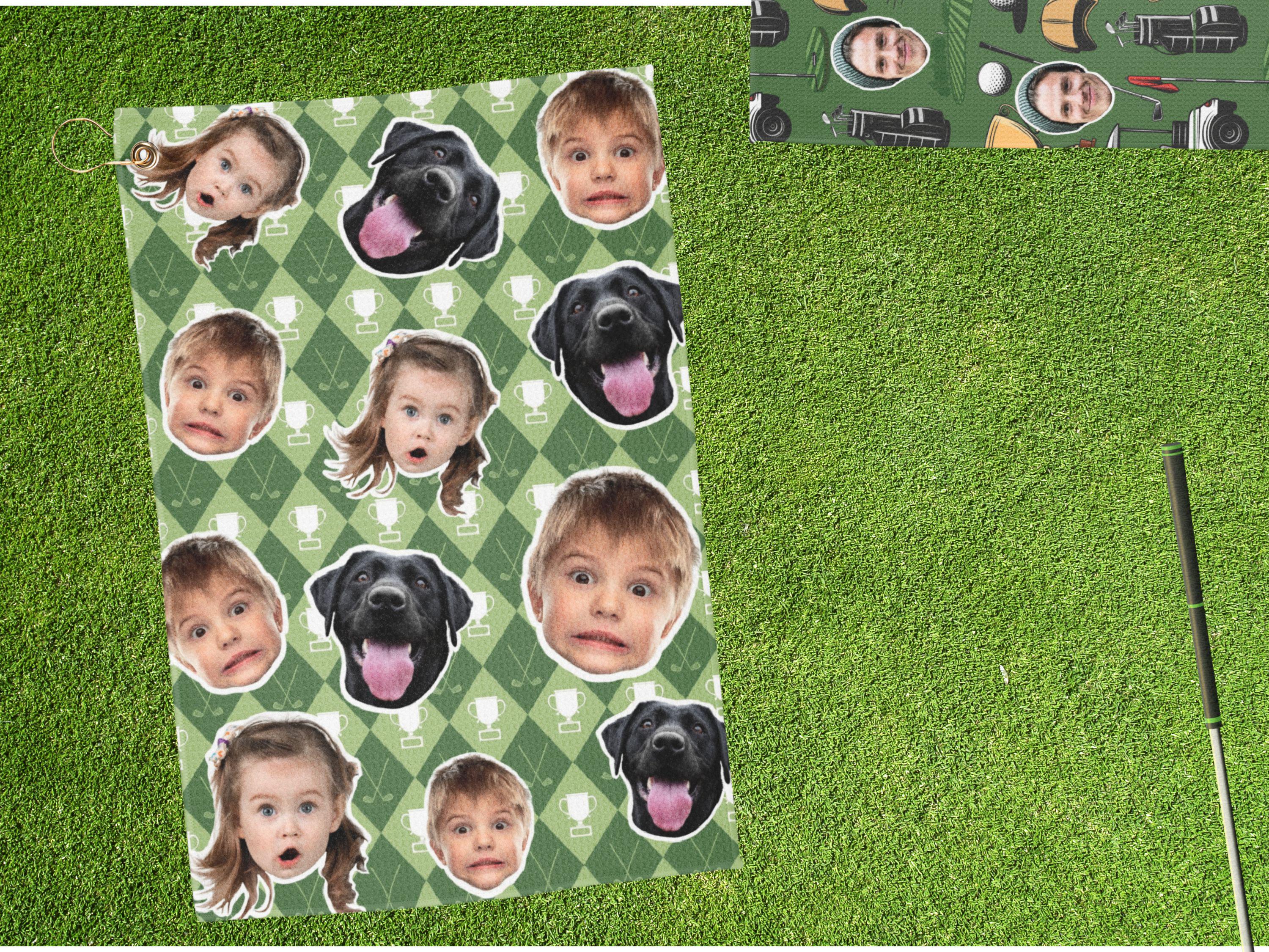 Custom golf towel for Papa, Grandpa with faces pictures.