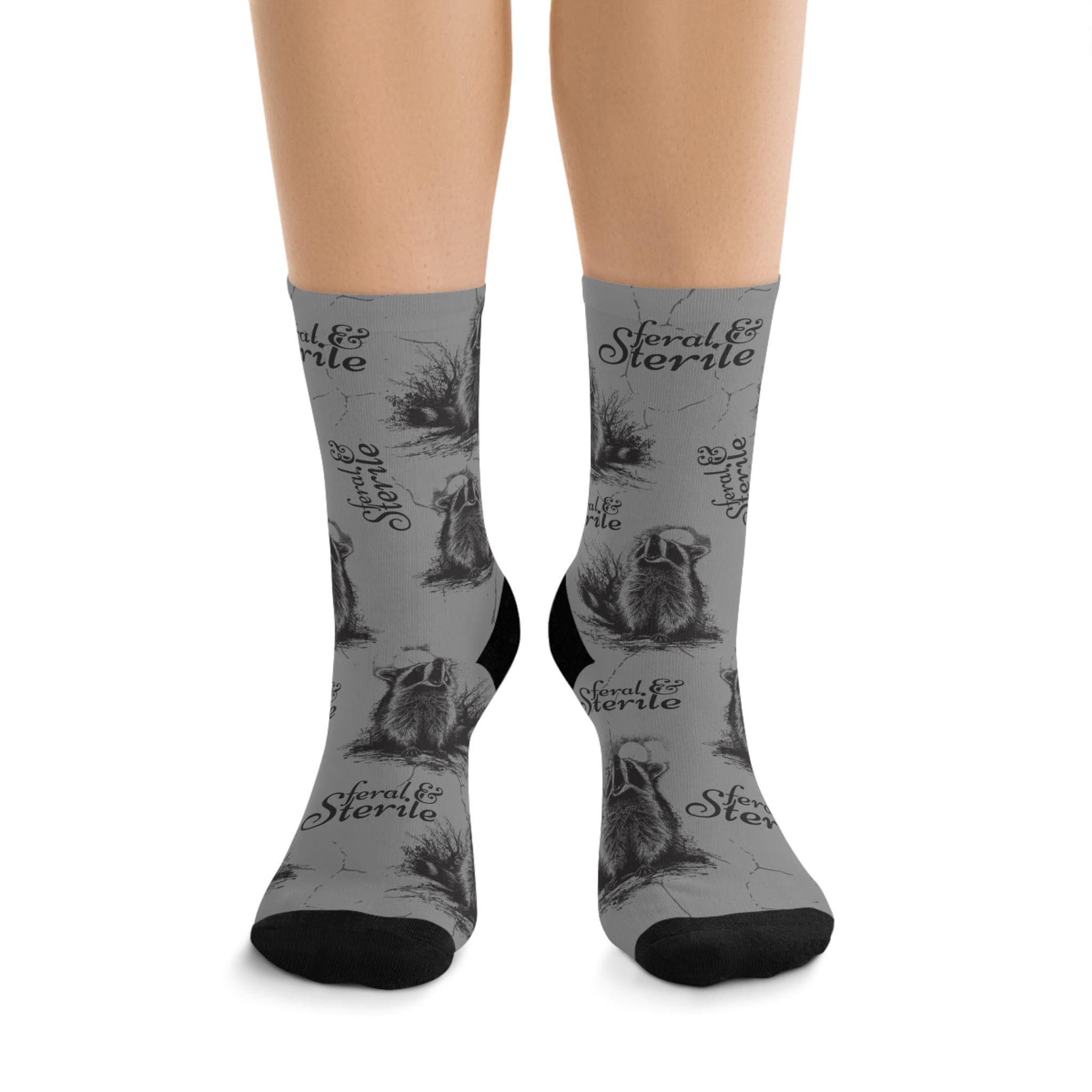 Feral and Sterile Unisex Socks, Post Hysterectomy Gift, Silly crew socks, Vasectomy Care Package Item, Tubal Ligation Surgery Recovery Gift