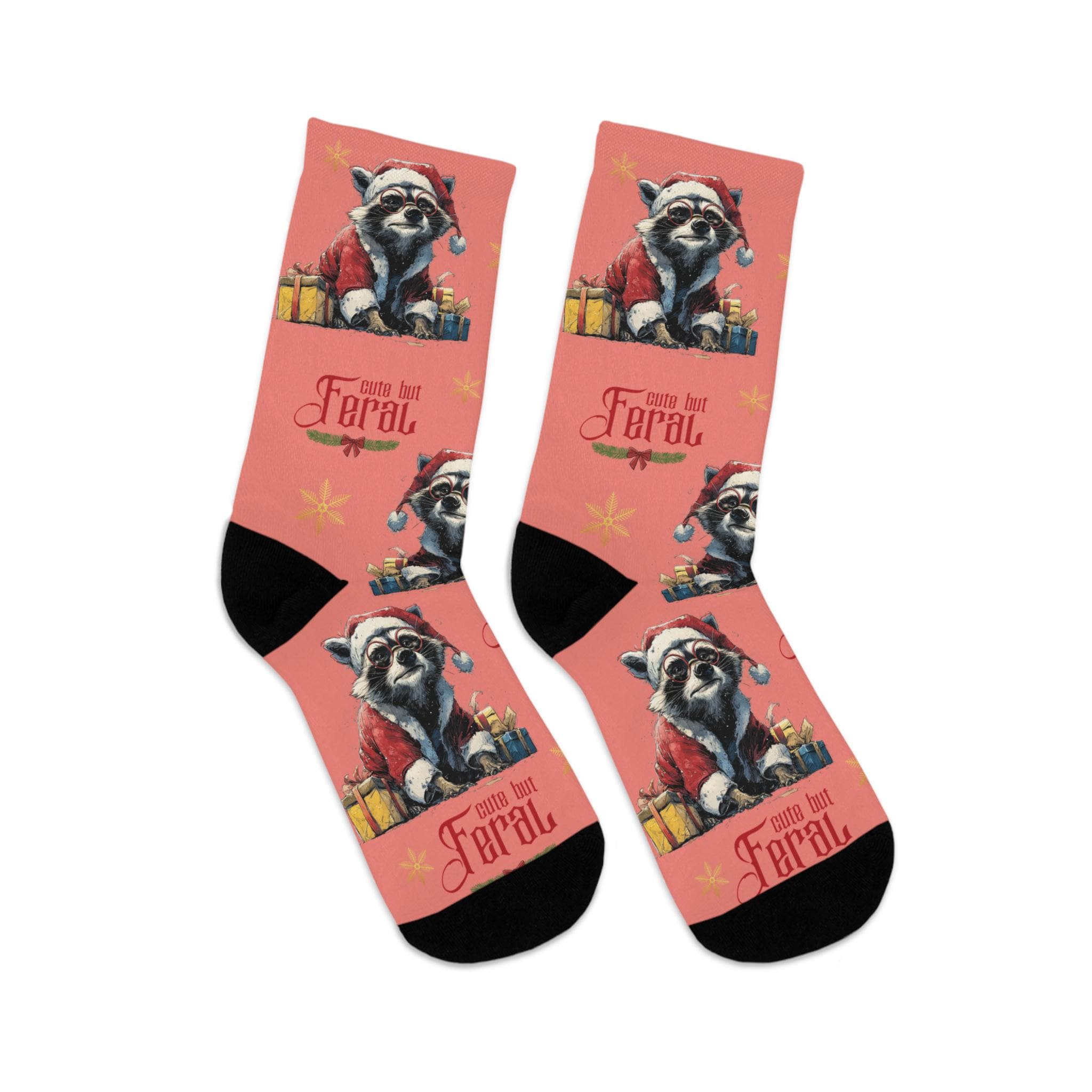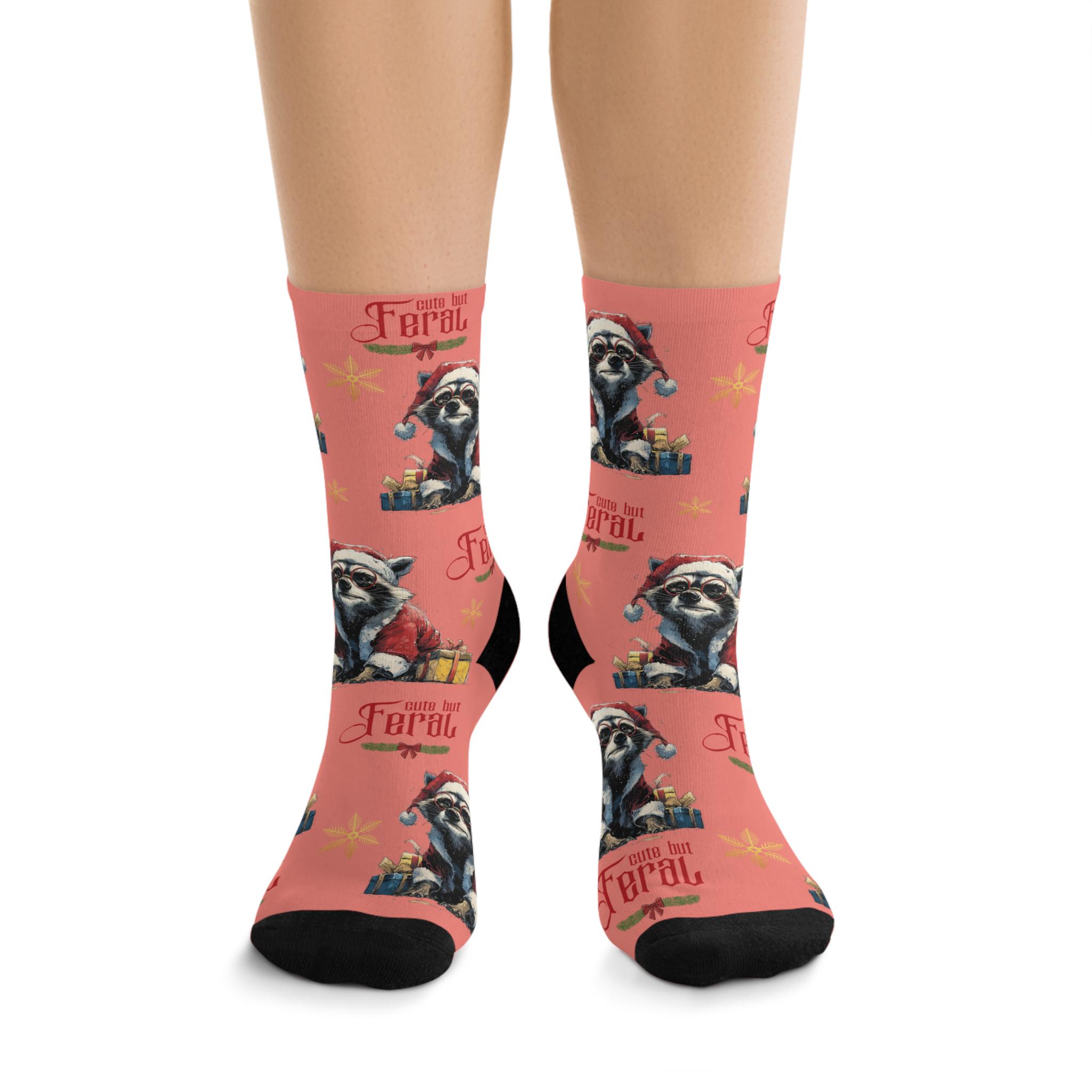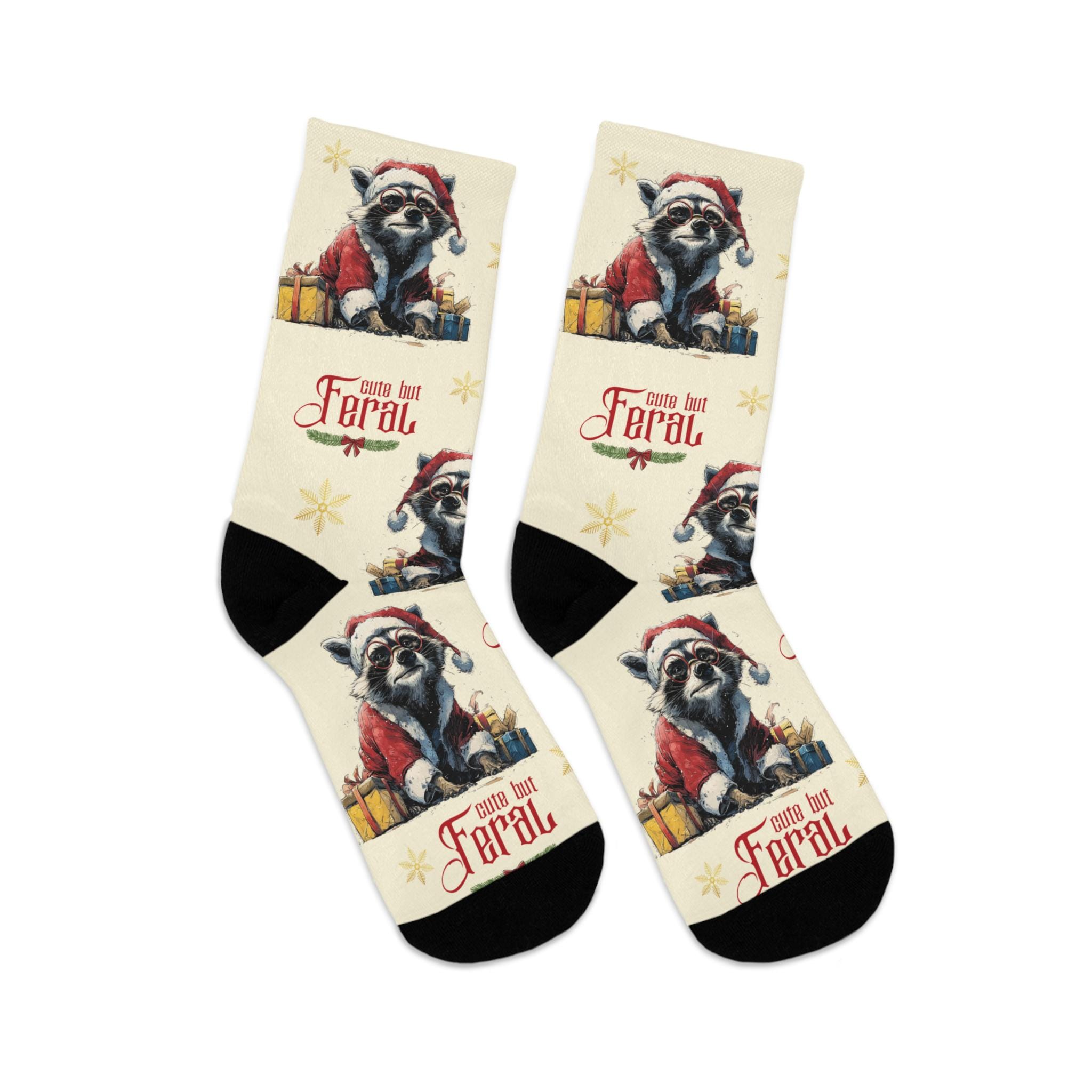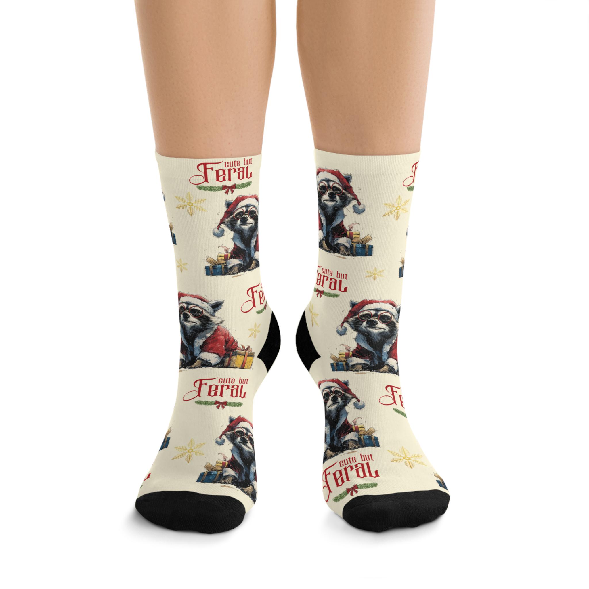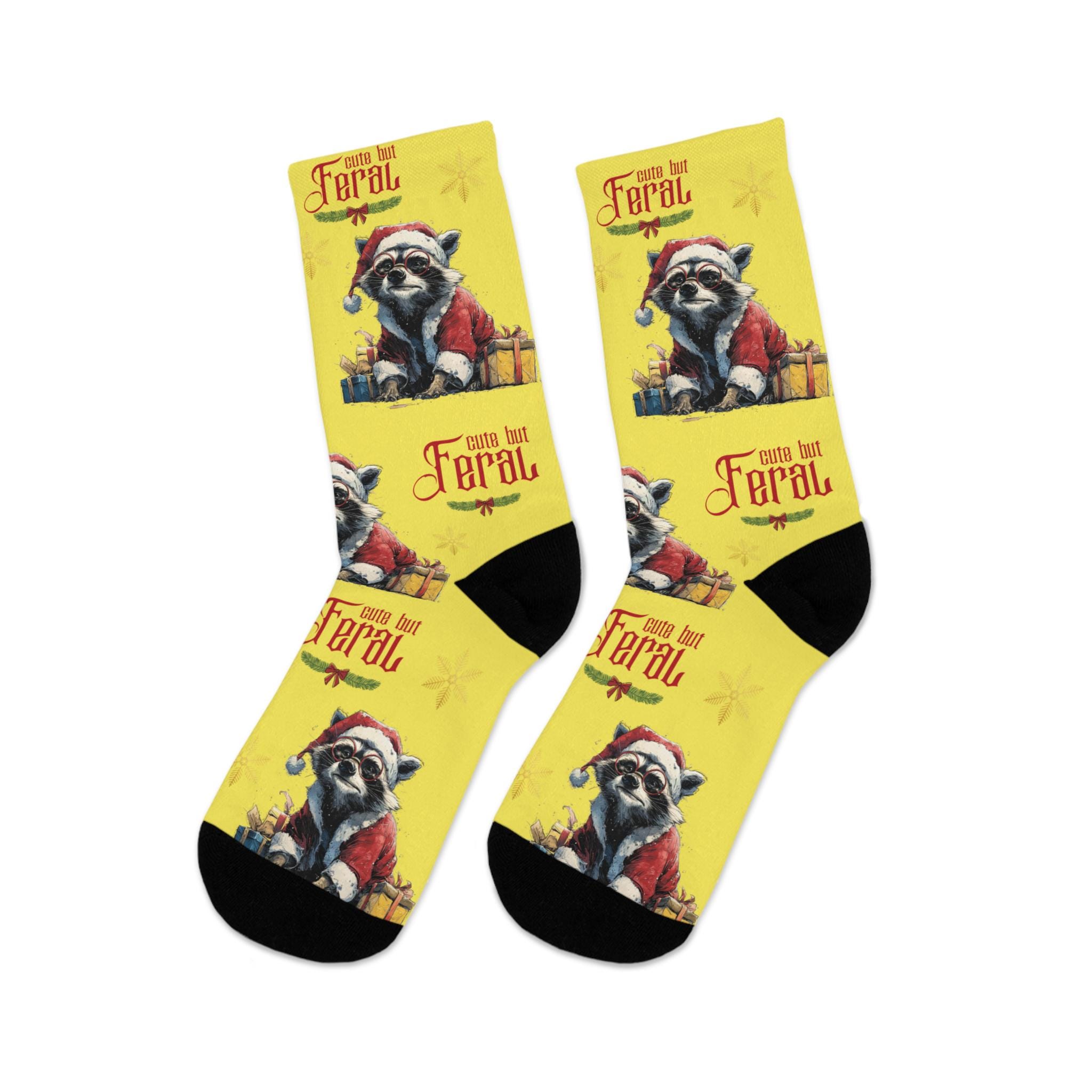 Raccoon Santa, Crew Socks, Trash Panda Socks, Stay trashy Socks, Cryptid Socks, Opossum Socks, Novelty Racoon Socks, Racoon Mens Socks