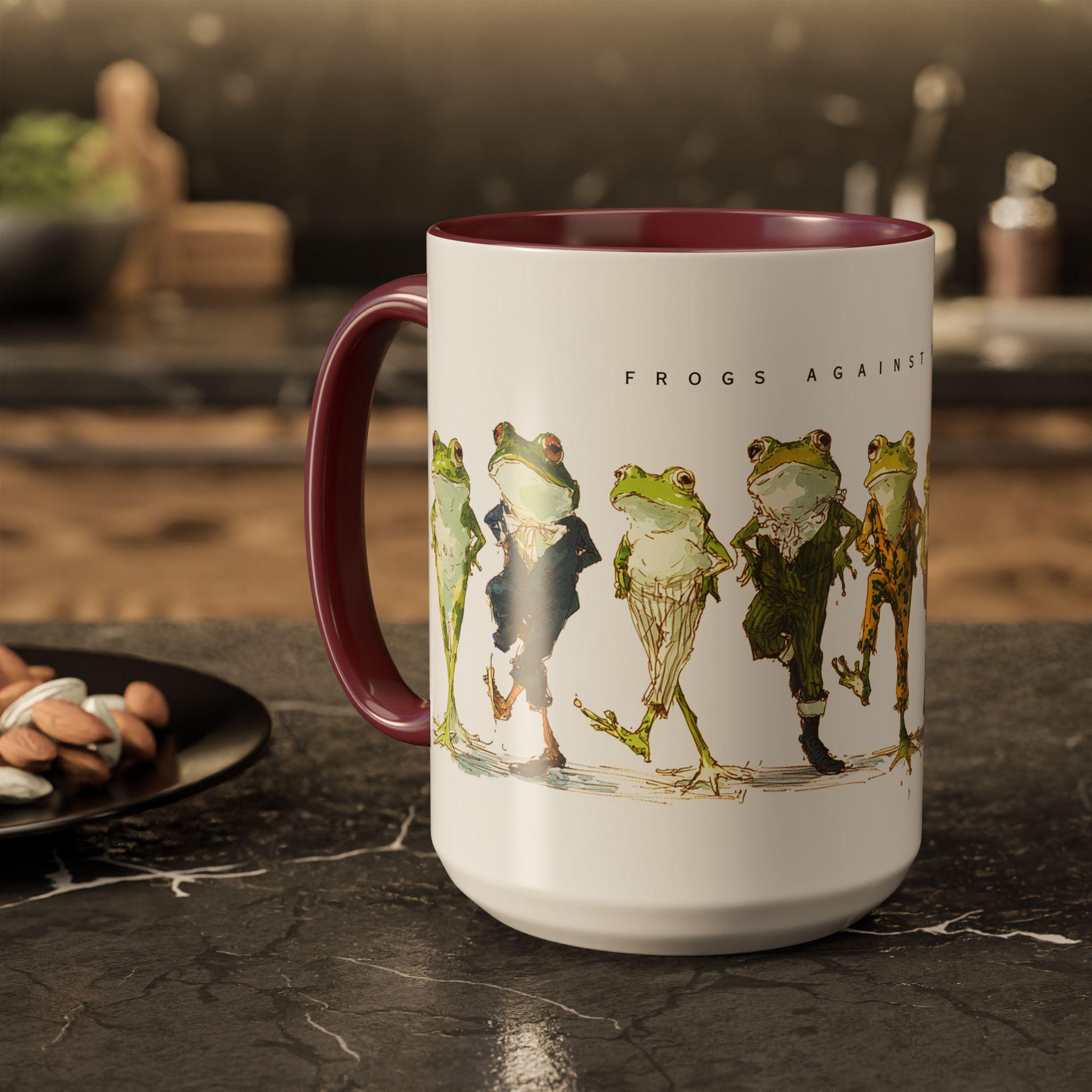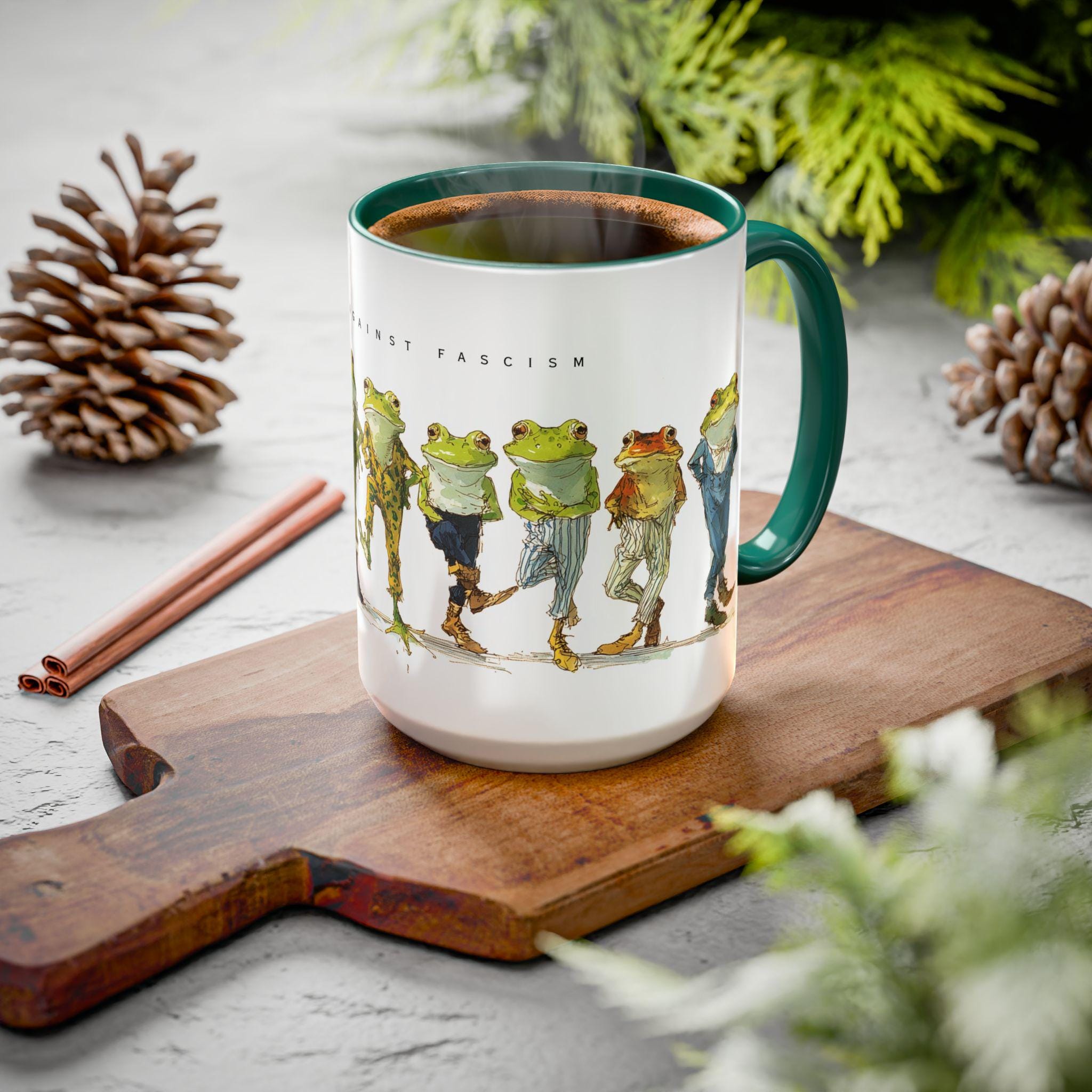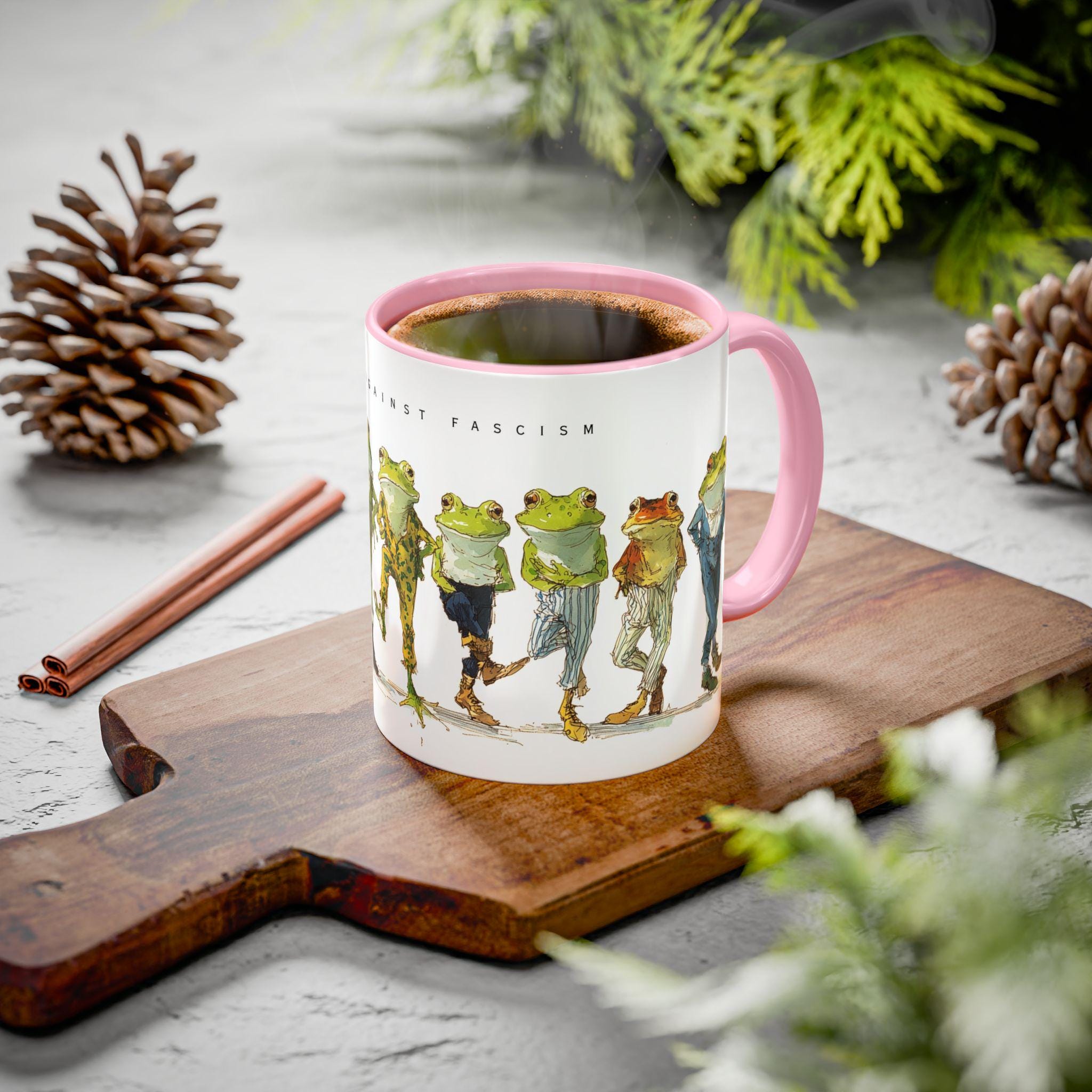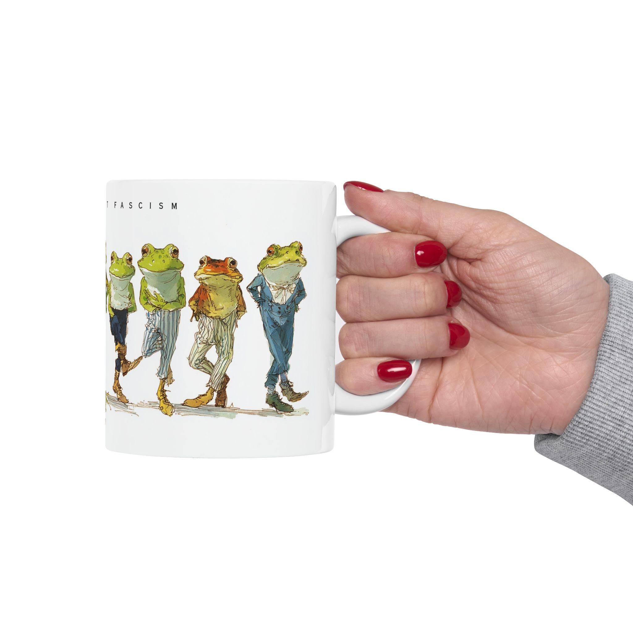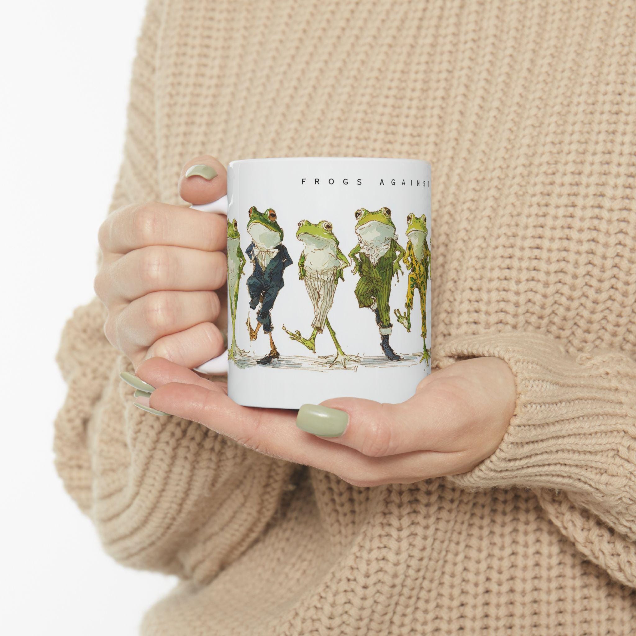 Social justice and frogs against fascism! This funny frog mug blends cottagecore charm with goblincore humor, featuring a quirky frog and toad design that stands for equal rights and good vibes. Perfect as a gag gift, coworker gift, or gift for him, this frog coffee cup comes in both 11oz and 15oz sizes for your favorite brew.