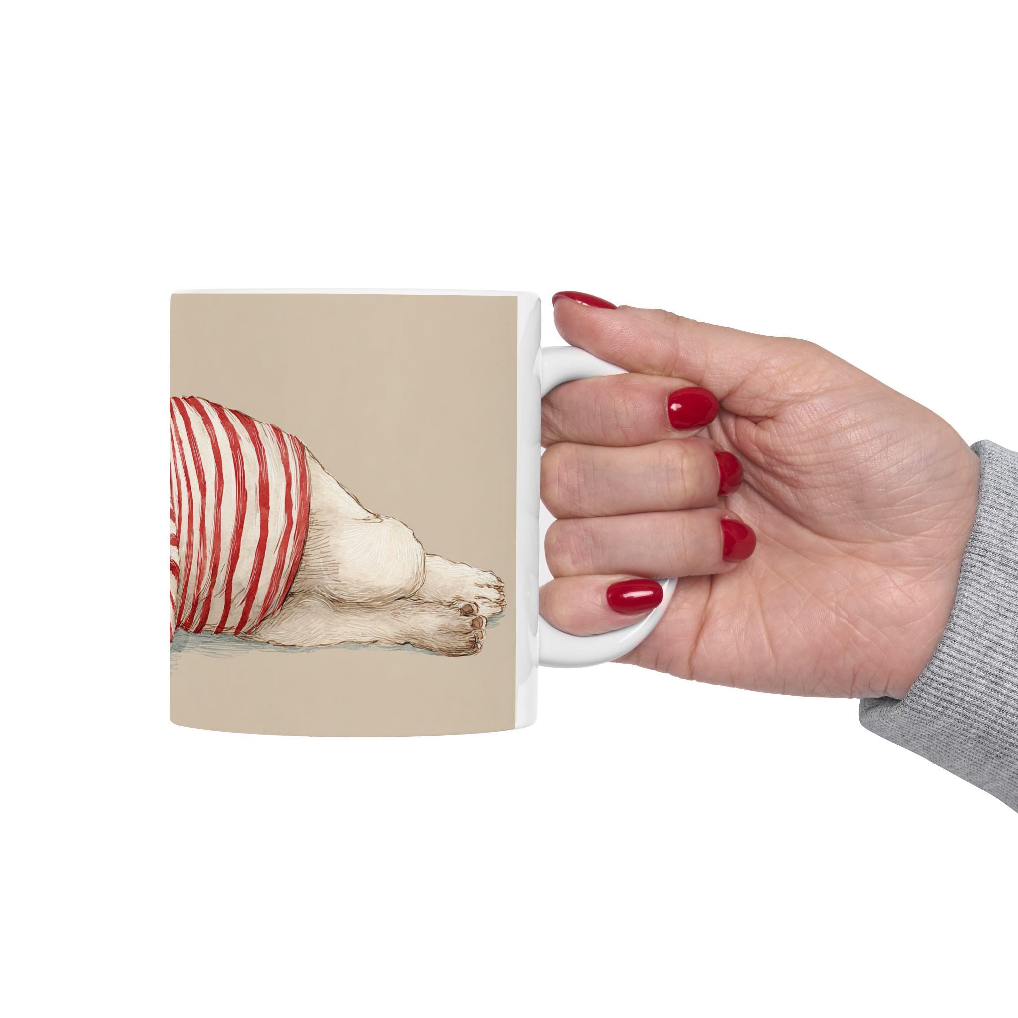 This durable, white ceramic mug features a comfortable C-handle for easy gripping and is safe for microwave and dishwasher use.