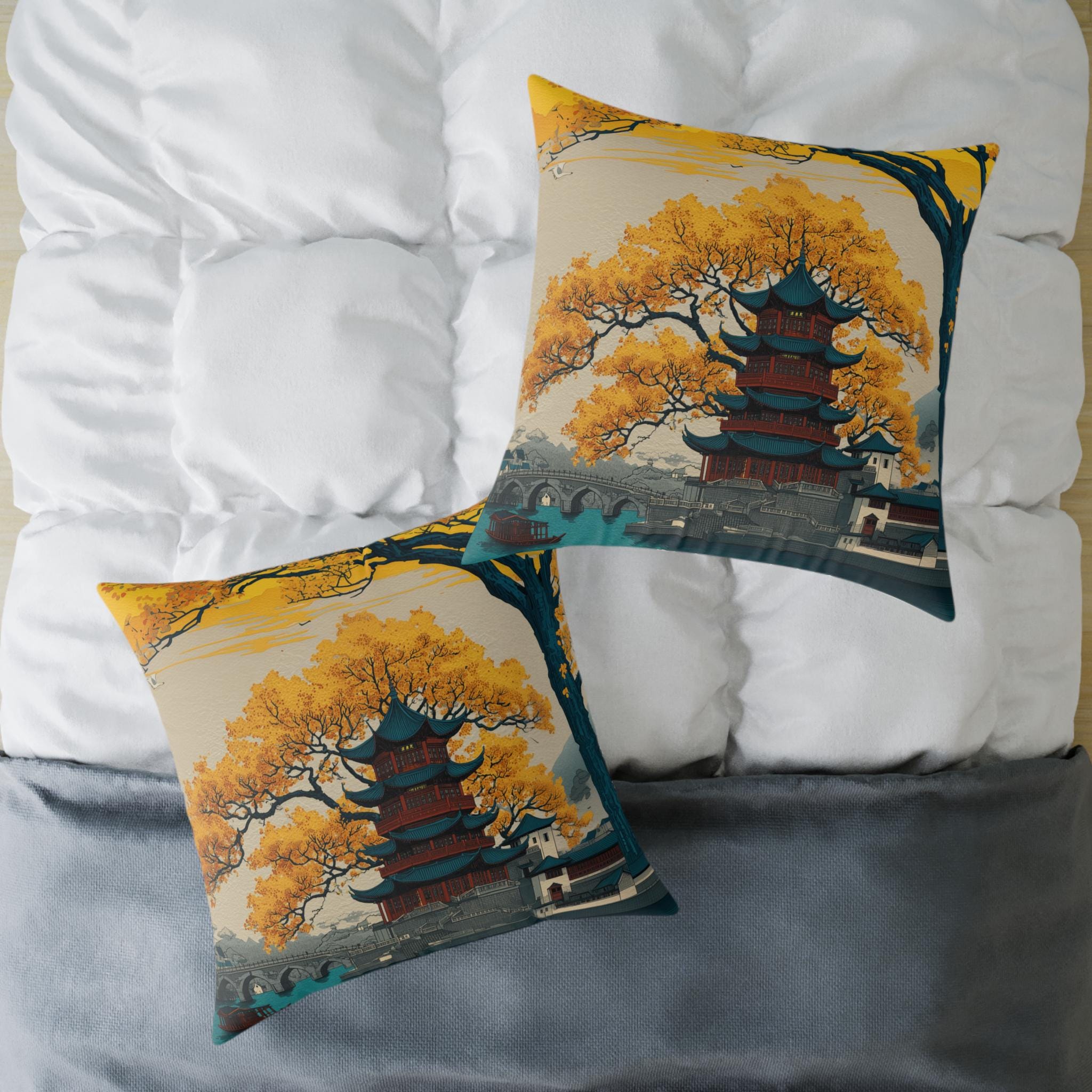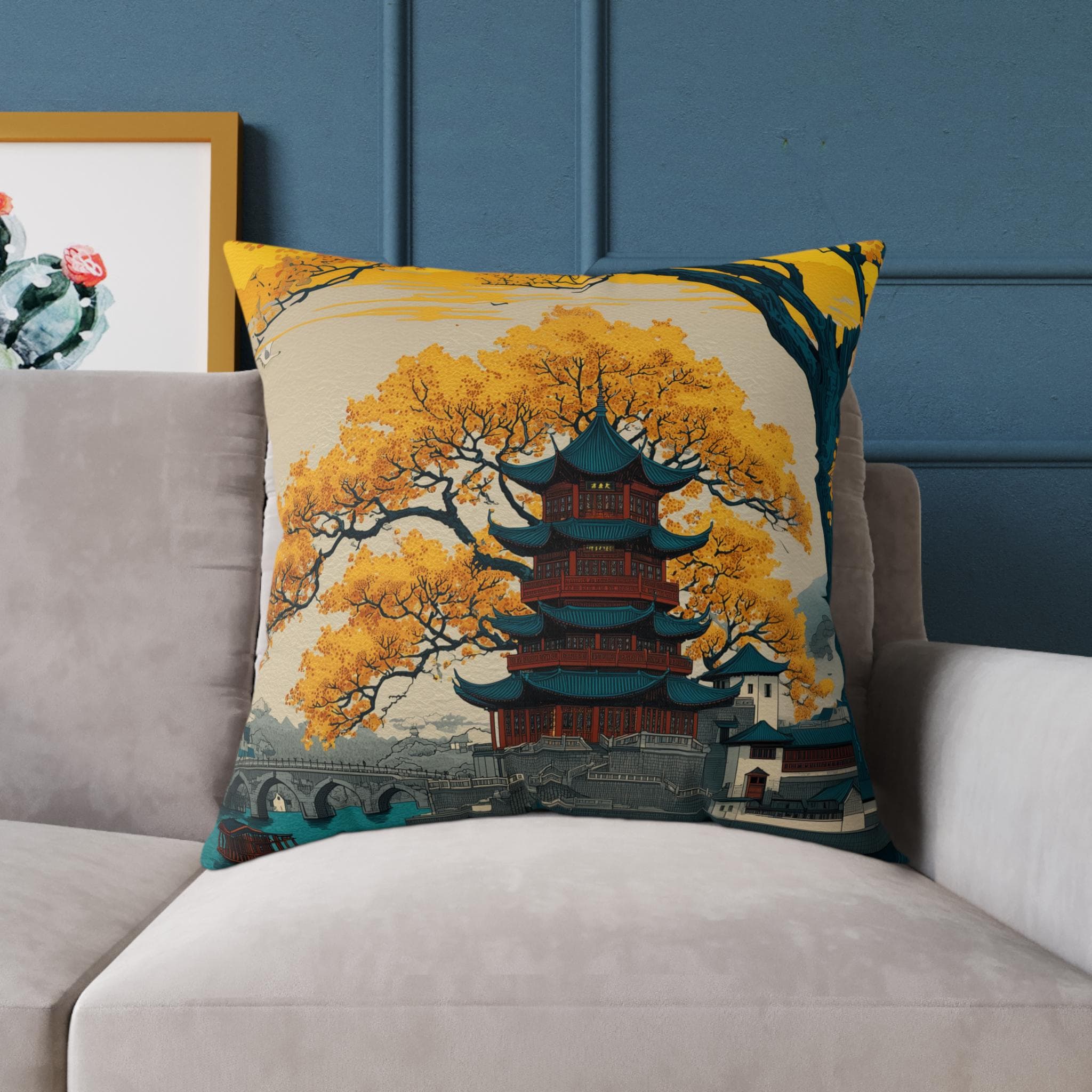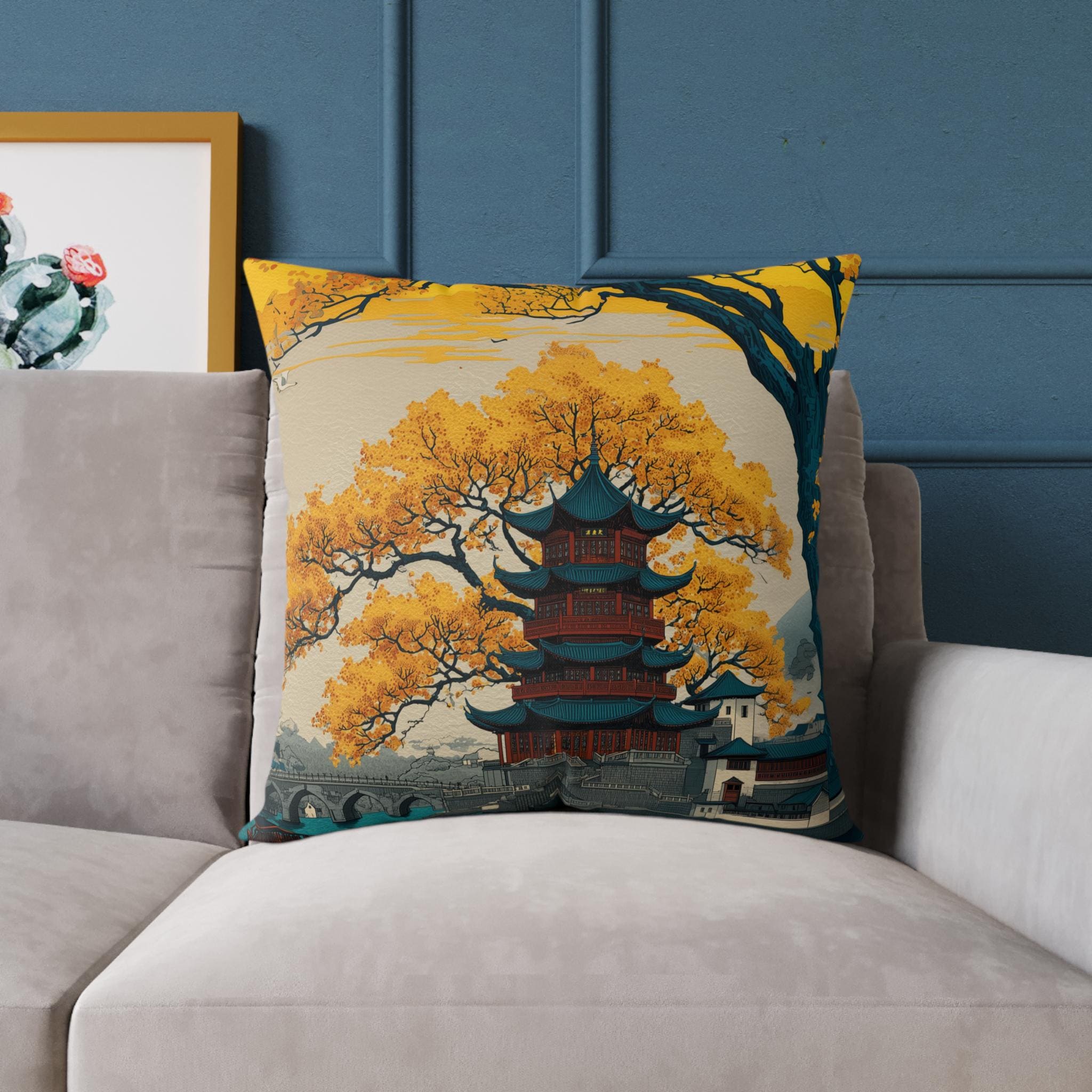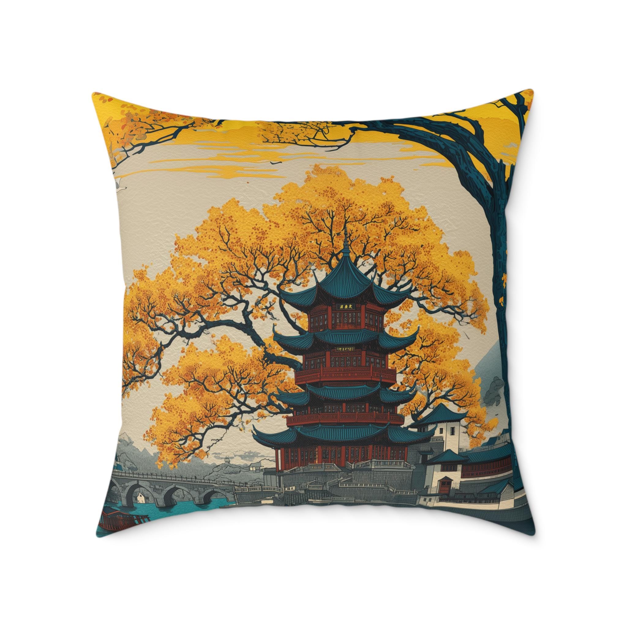 Chinoiserie Pagoda Cushion & Covers – Oriental Decor, Autumn Scene Pillow, Asian-Inspired Gift, Asian Art Cushion, Home Styling, Home Decor