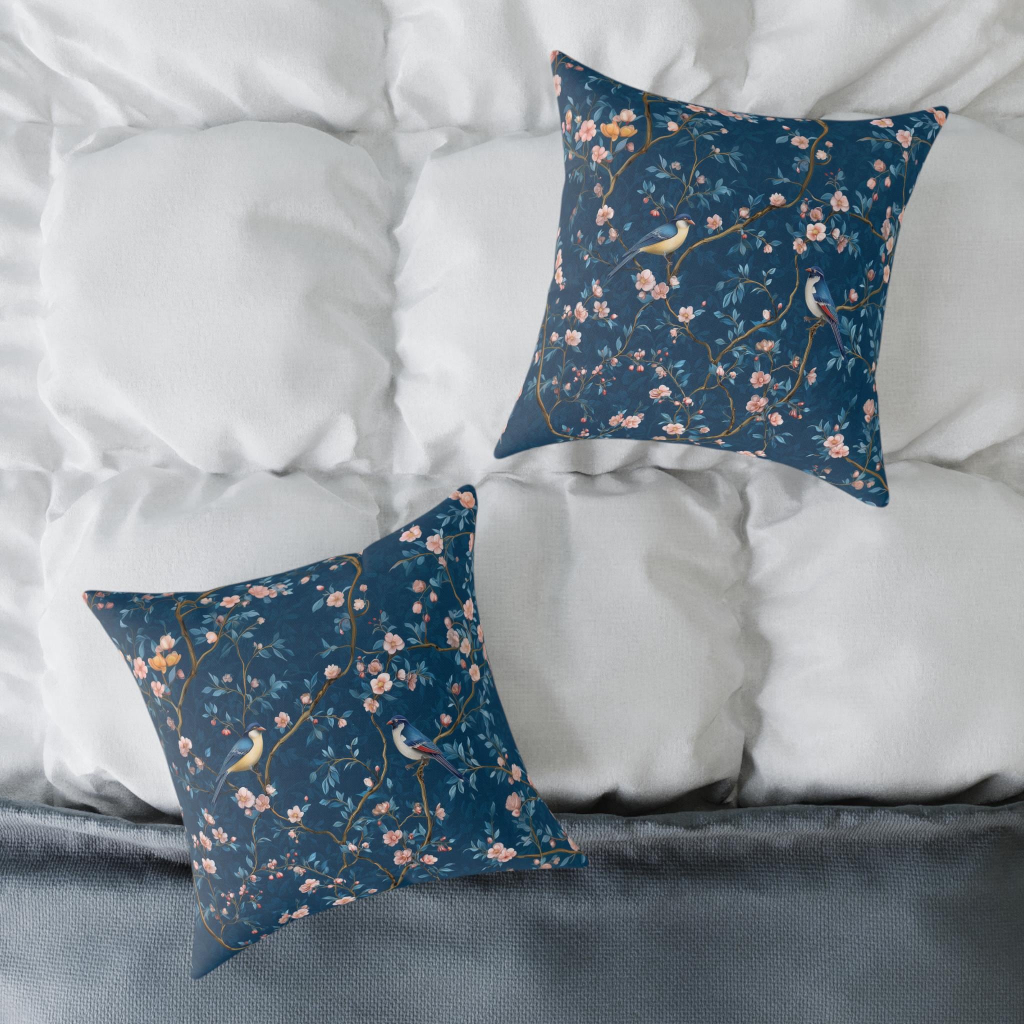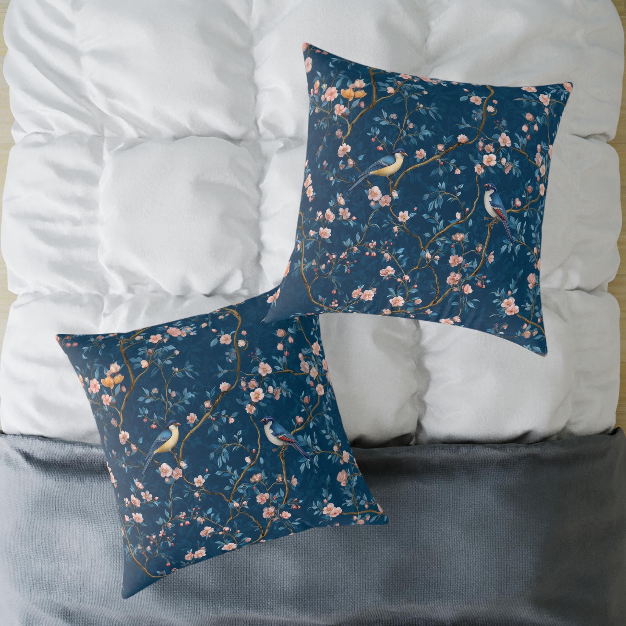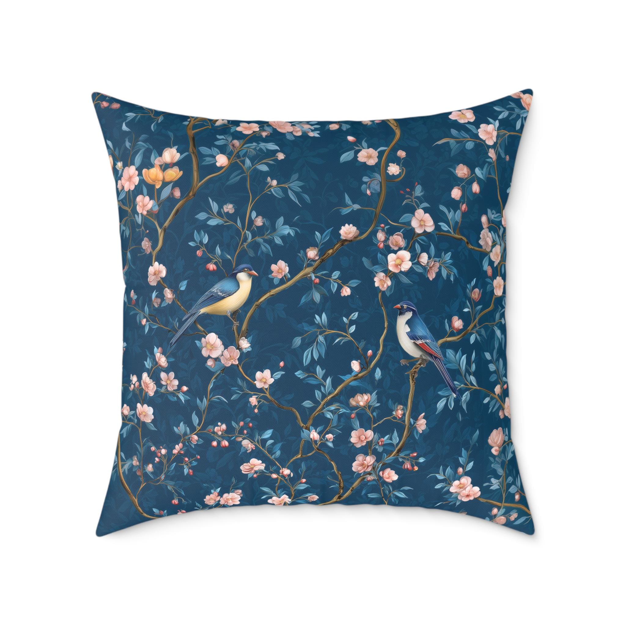 Blue Chinoiserie Cushion, Elegant Throw Pillow, Oriental Home Decor, Vintage Asian Accent Cushion, Asian-Inspired Gift, Home Styling