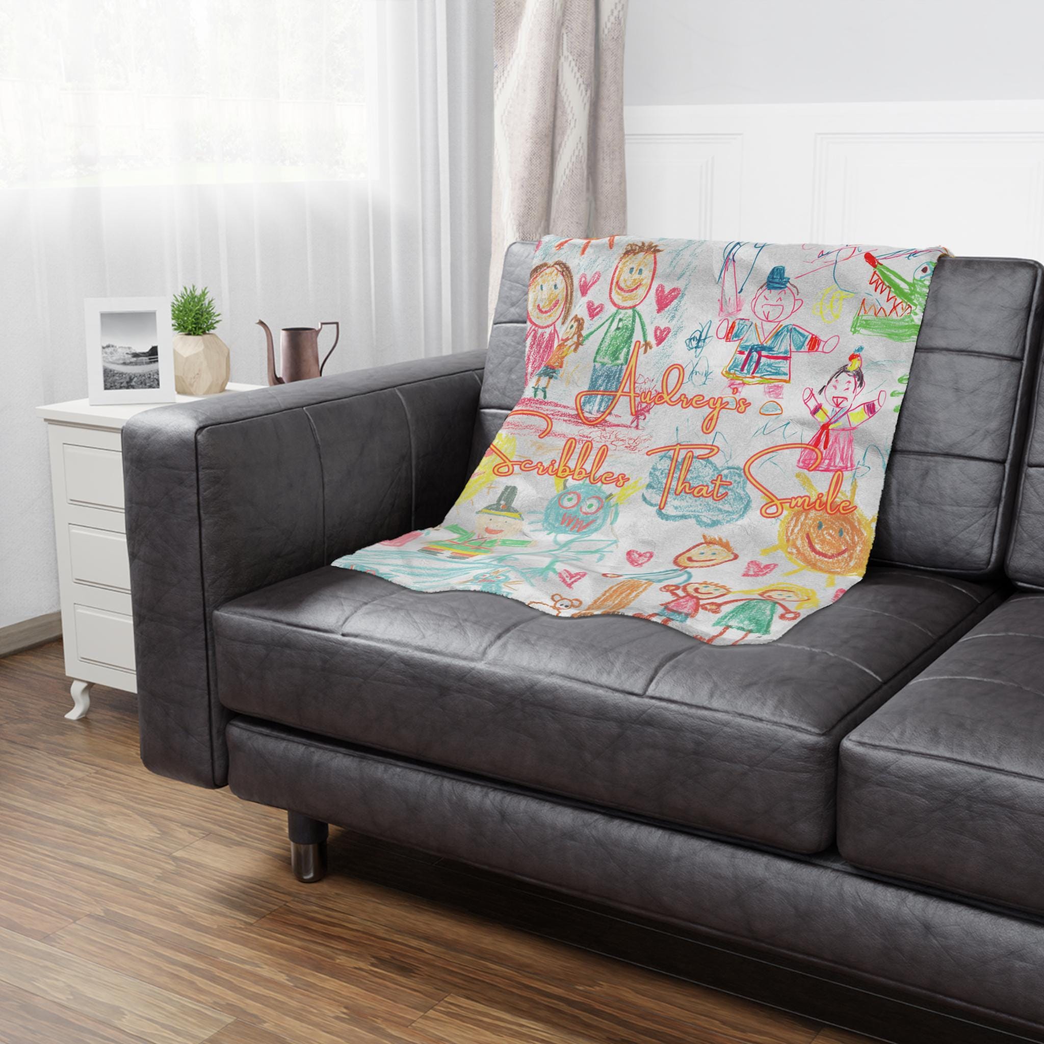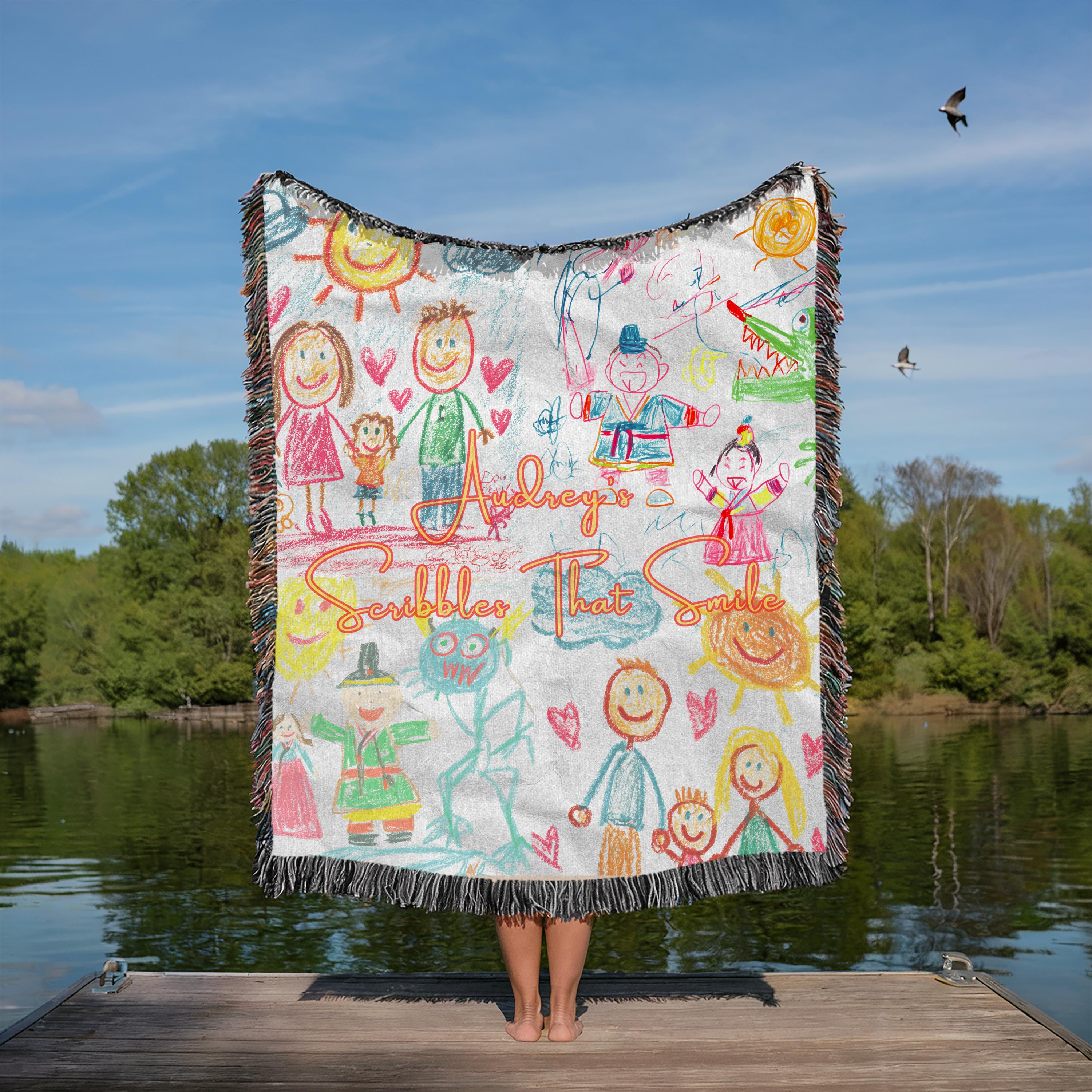 Custom Kids Art Blanket – Personalized Throw Blanket, Child’s Drawing, Memory Keepsake Gift for Parents, Grandparents & Kids, Woven Tapestry