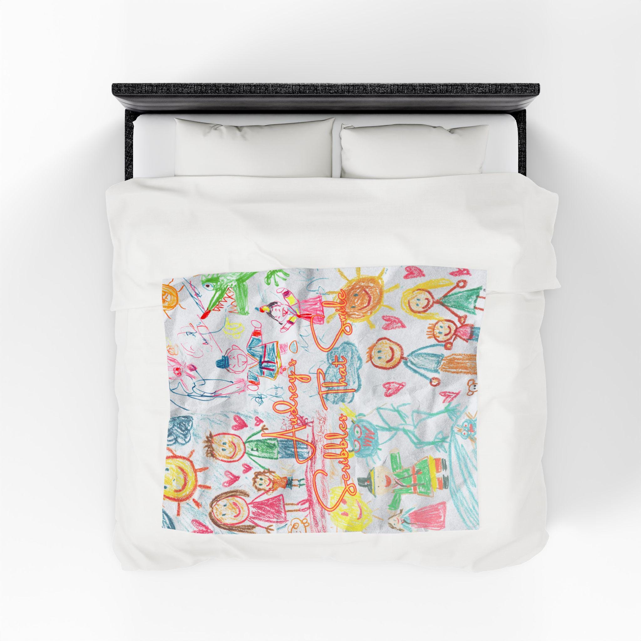 Whether it’s a crayon masterpiece, a doodle from school, or your child’s very first self-portrait, we lovingly print their art onto a soft, high-quality blanket that becomes a timeless memory to cherish forever.