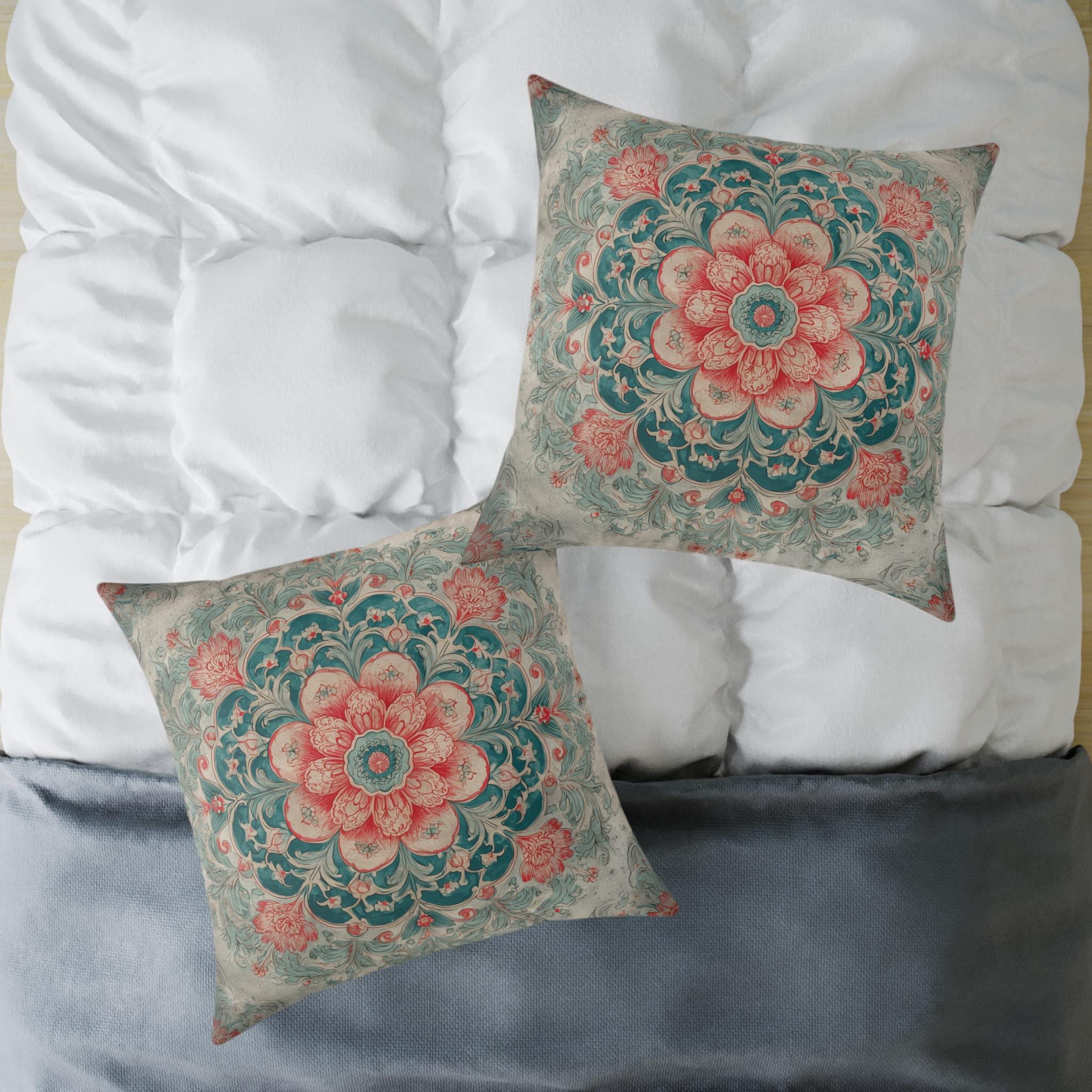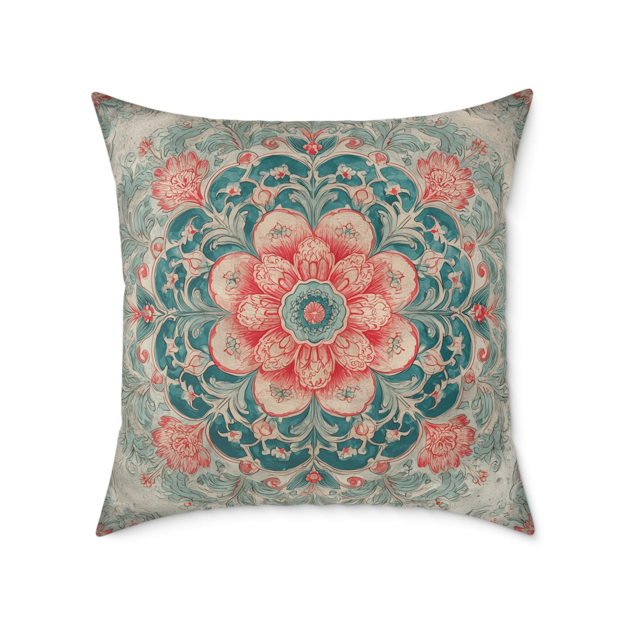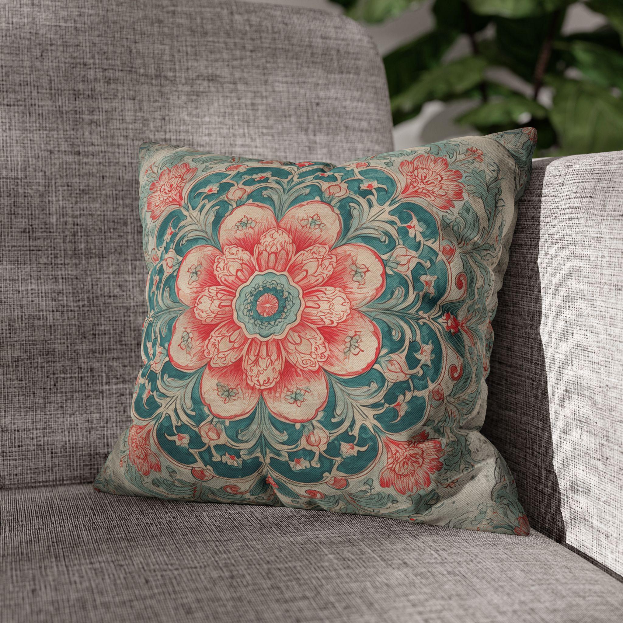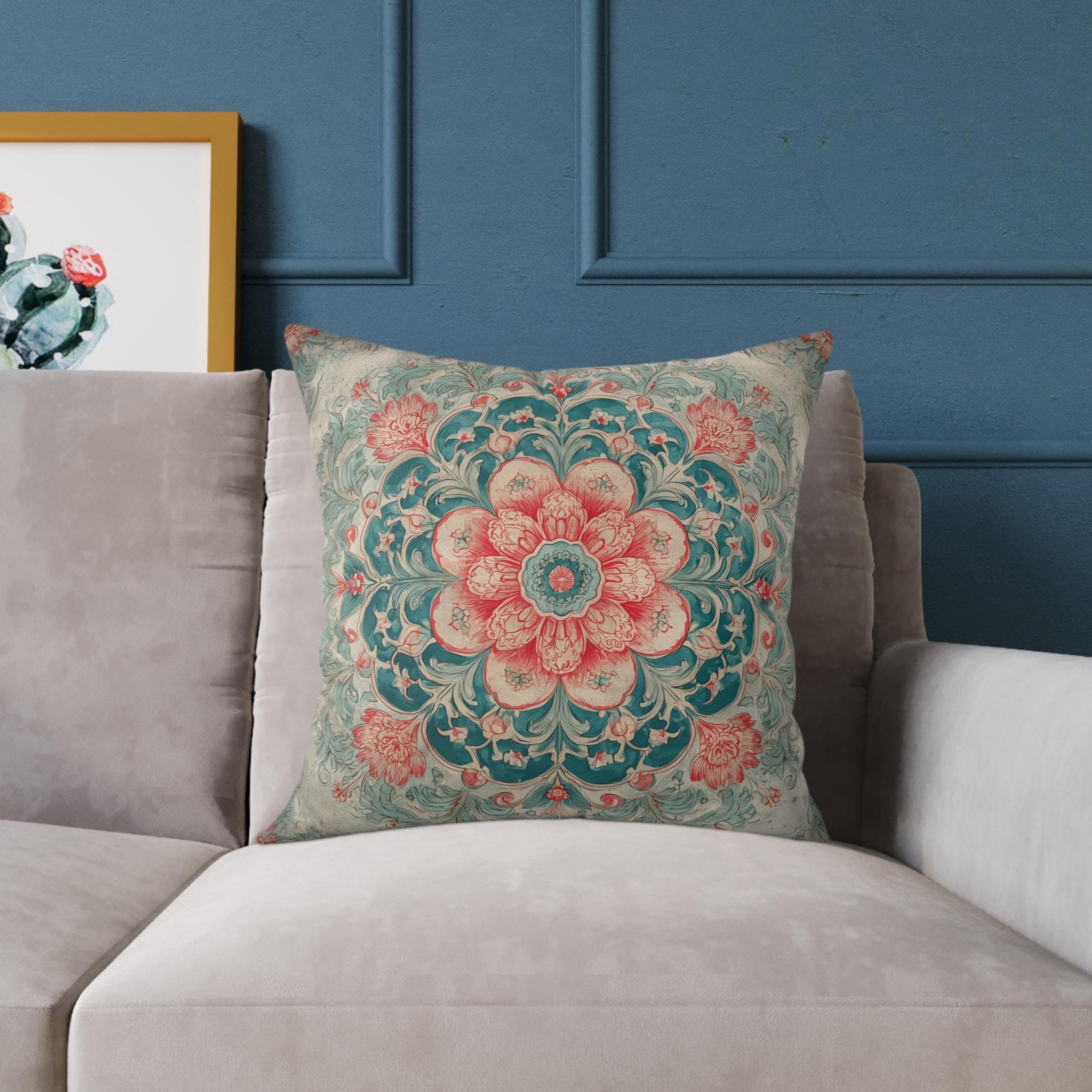 Add timeless charm to your home with this Elegant Floral Cushion Cover, beautifully designed with an intricate mandala-inspired flower motif in soothing teal and coral tones. Perfect for adding a pop of artful color to your living room, bedroom, or reading nook.