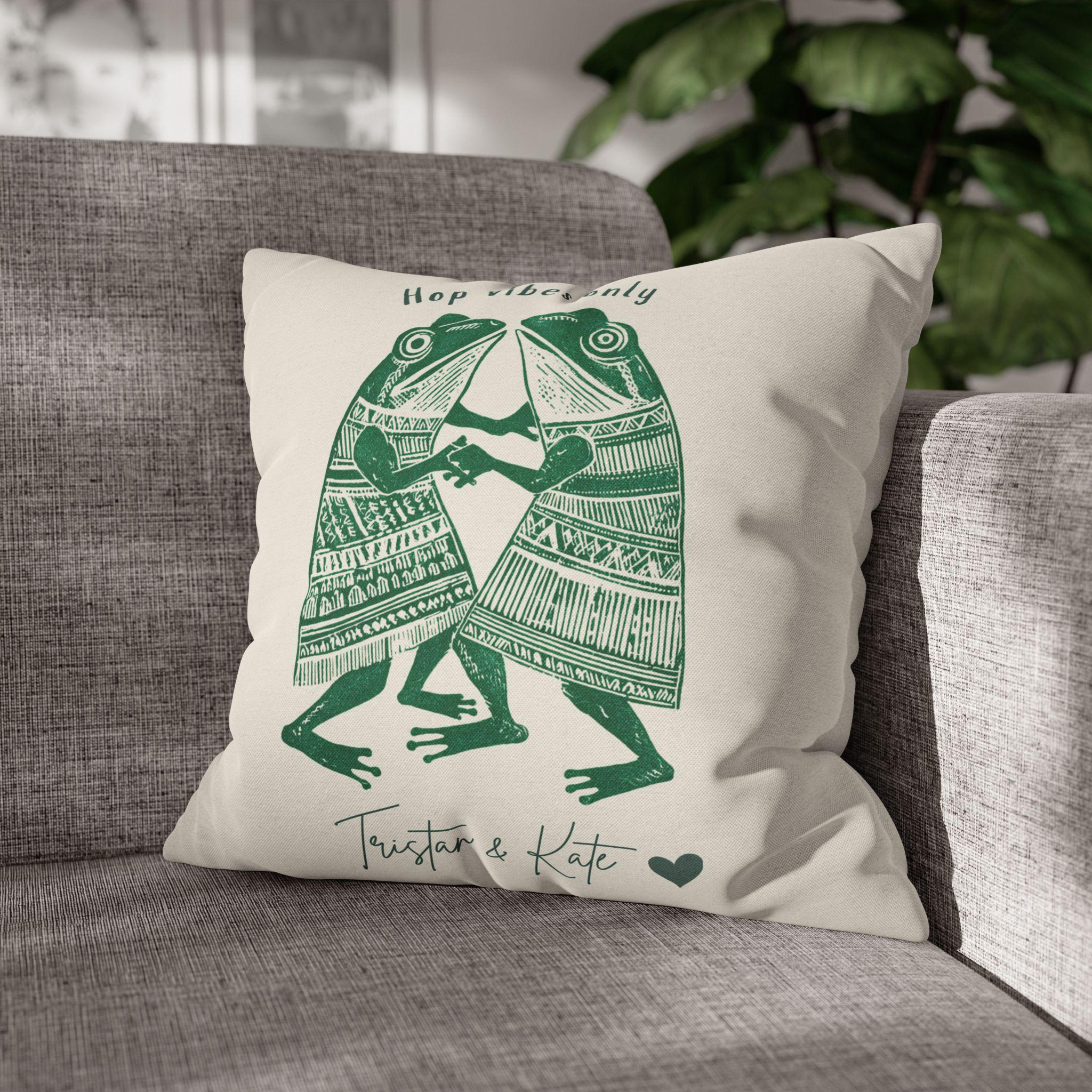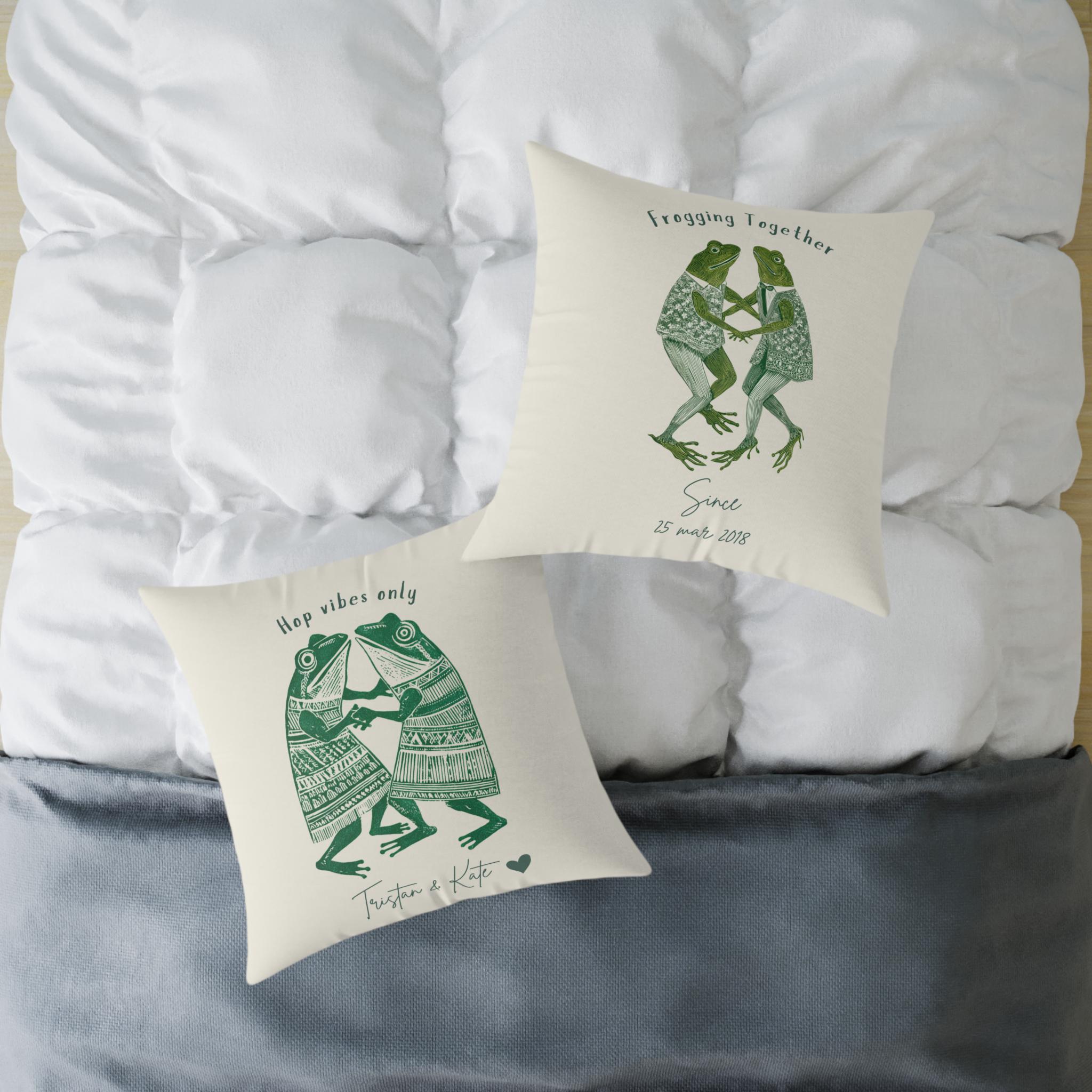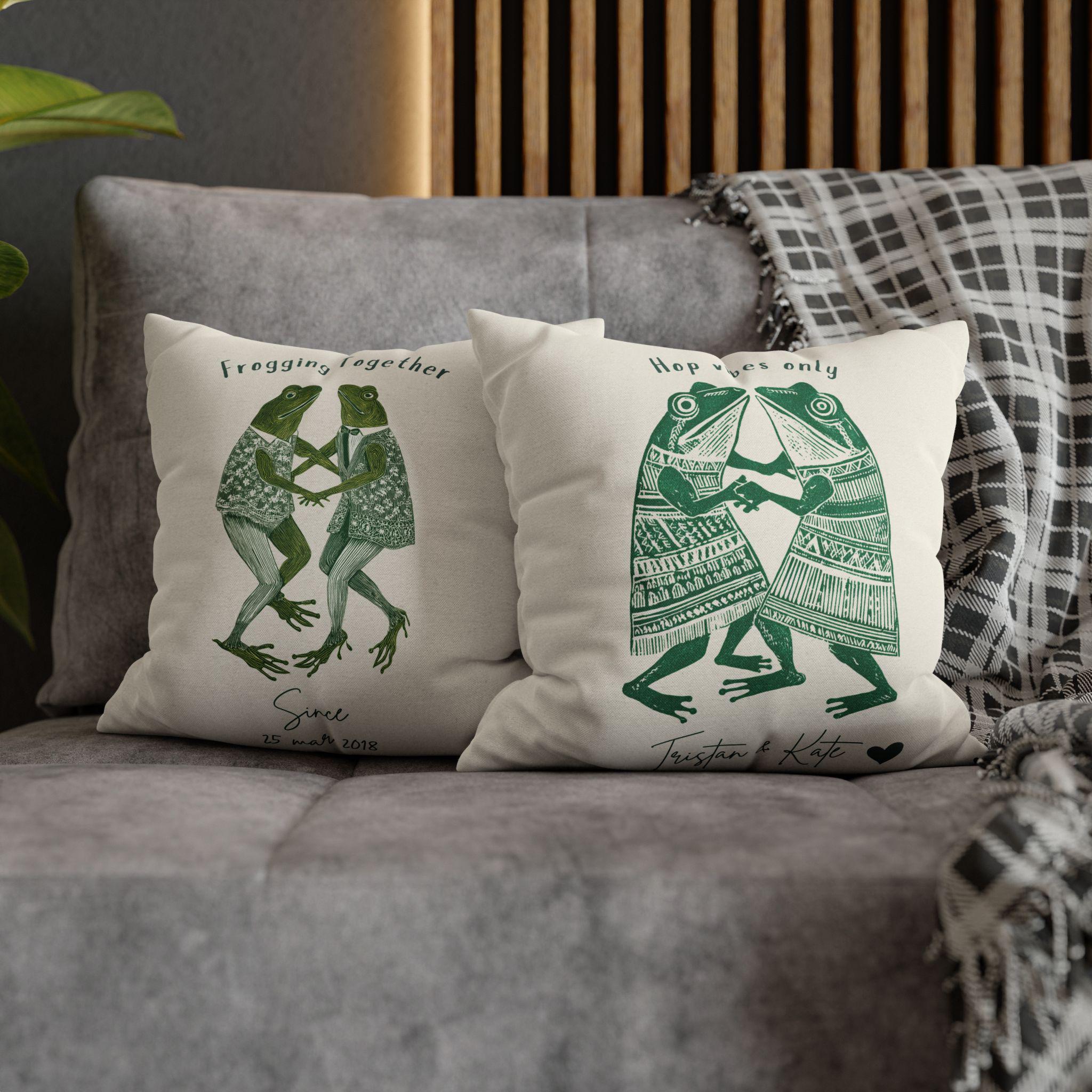 Personalized Frog Couple Cushion, Custom Text Pillow, Frog Lovers Gift, Cute Throw Pillow, Whimsical Animal Home Décor Accent