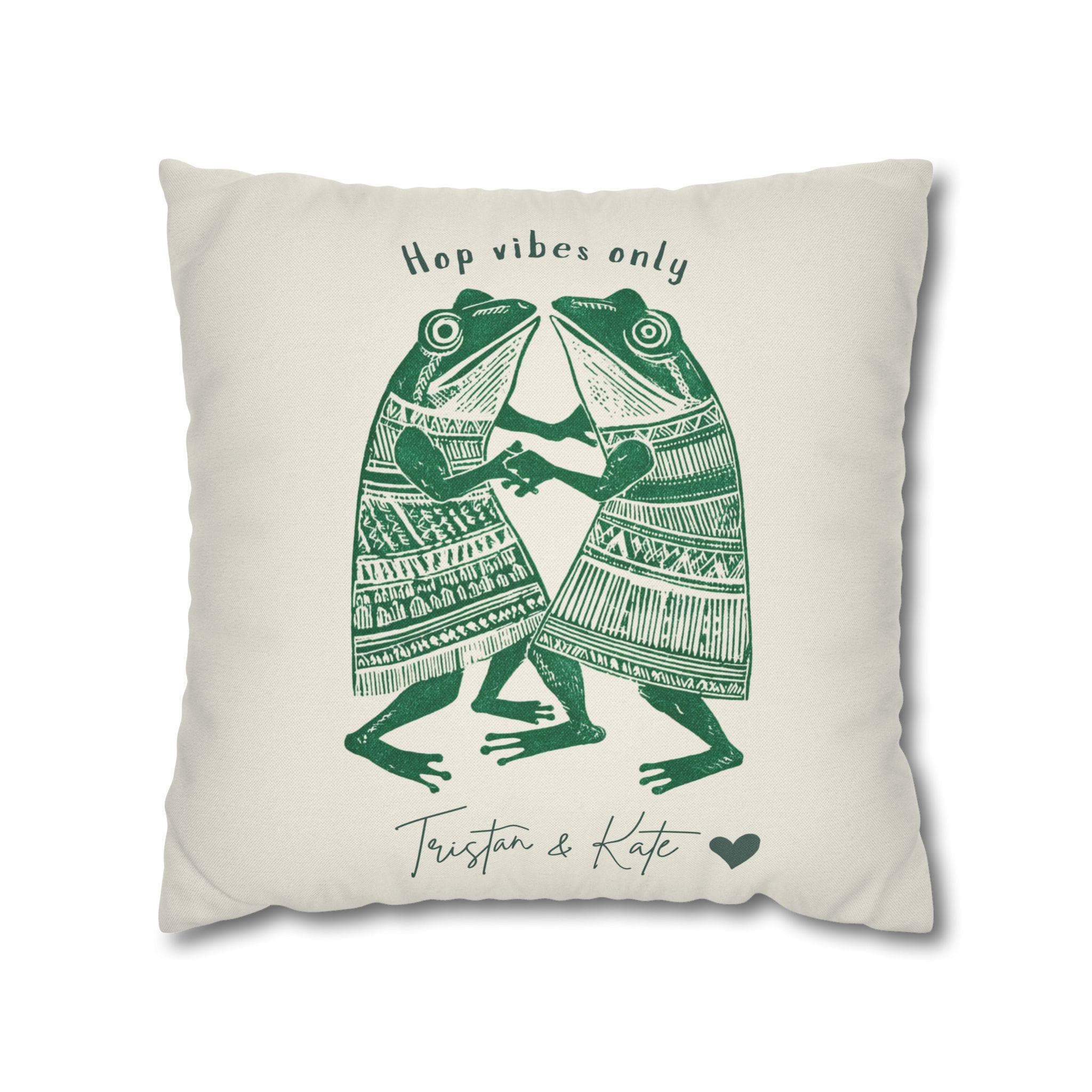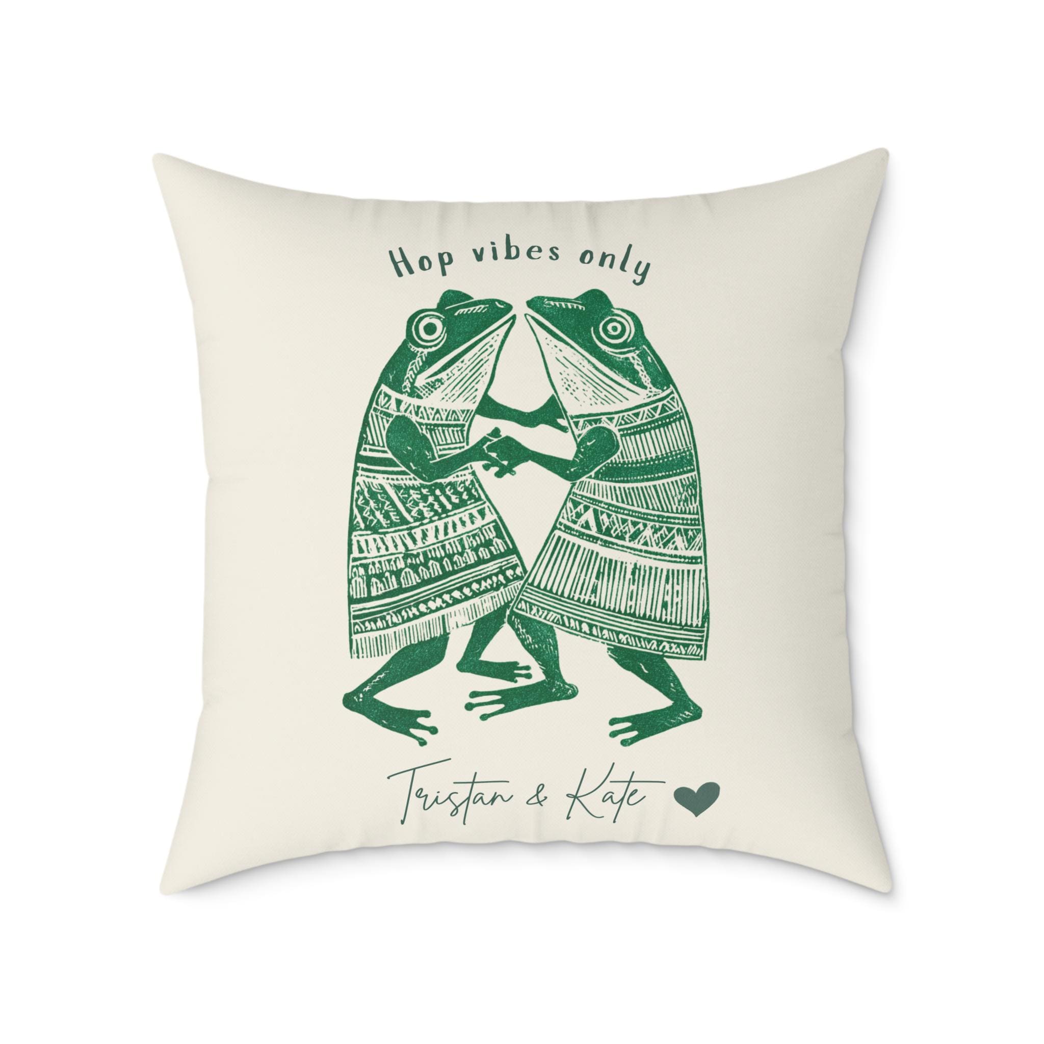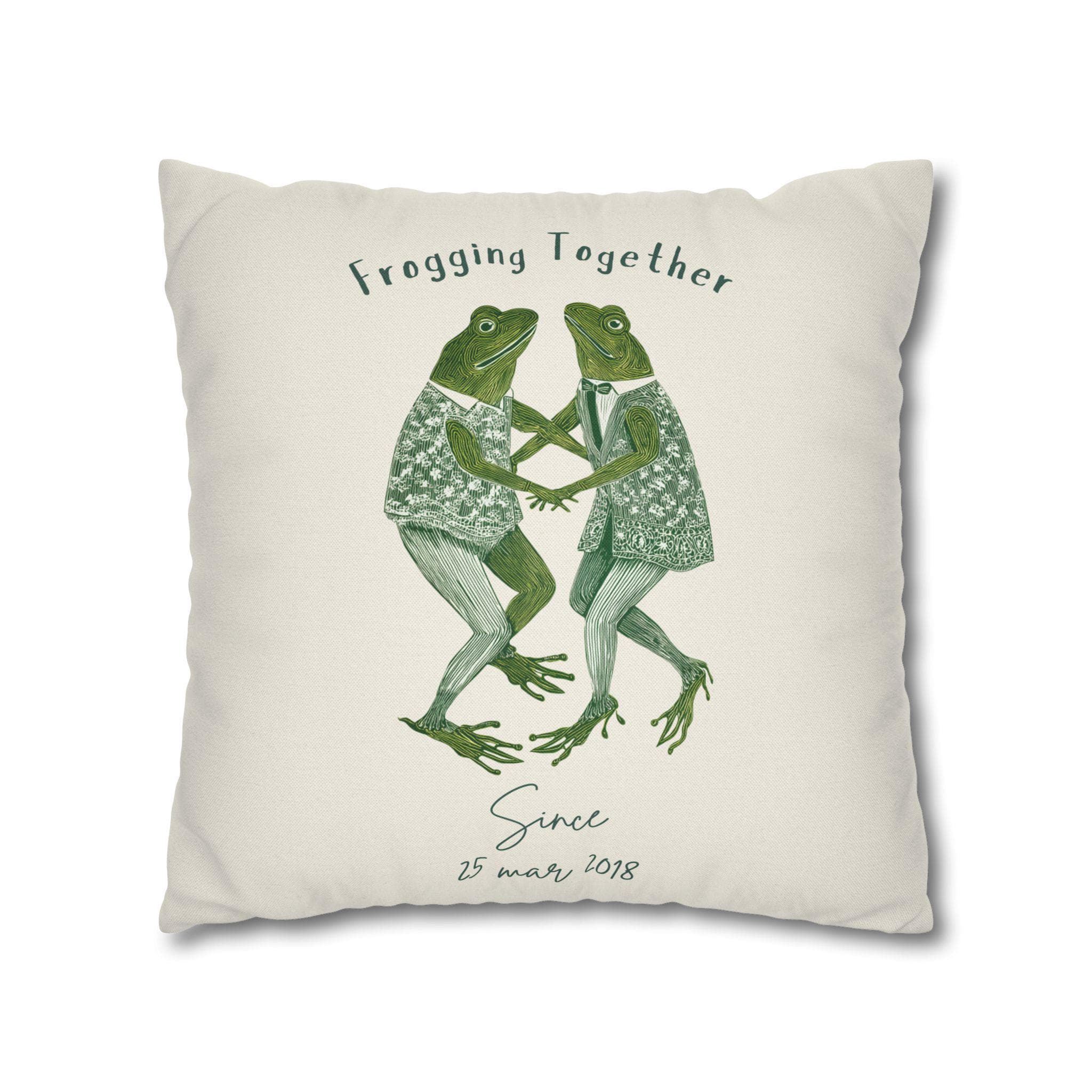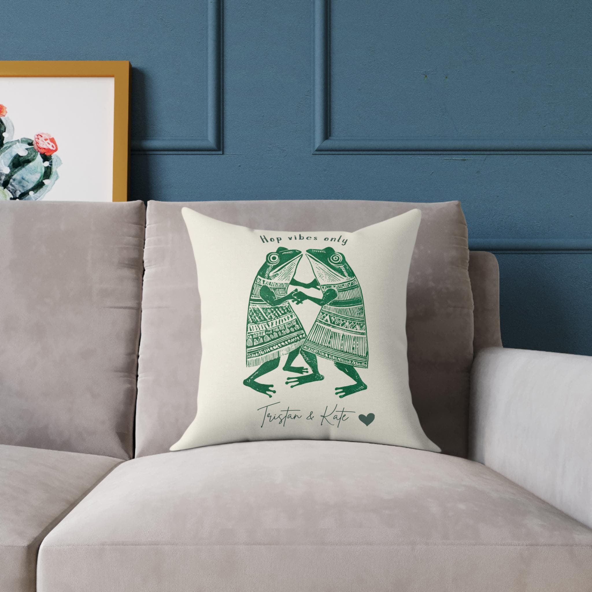Personalized Frog Couple Cushion, Custom Text Pillow, Frog Lovers Gift, Cute Throw Pillow, Whimsical Animal Home Décor Accent