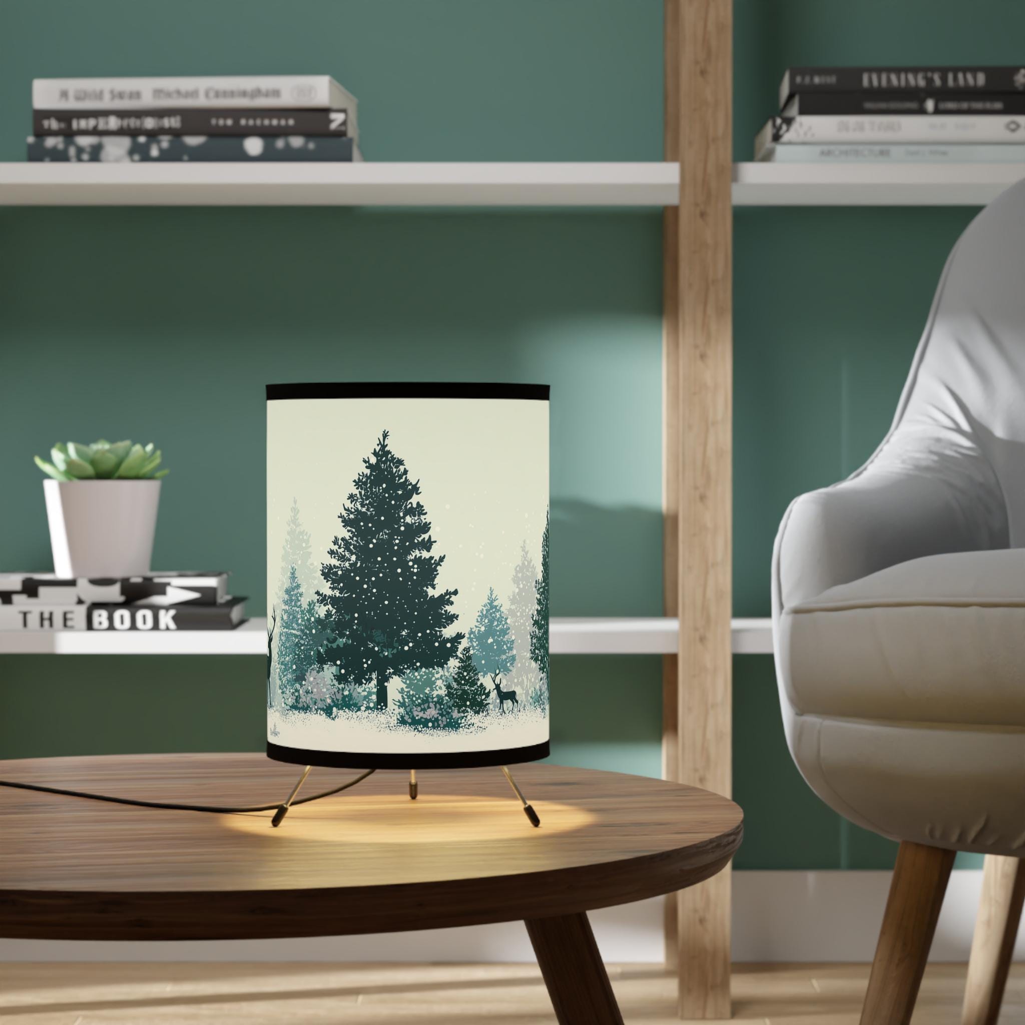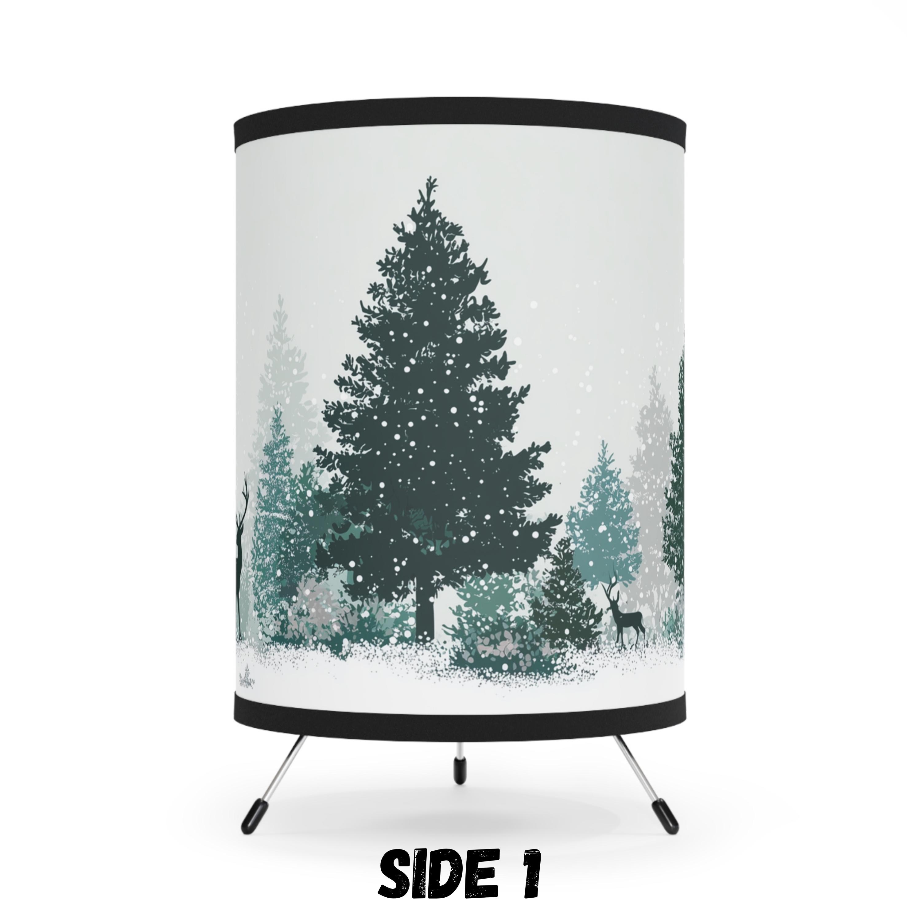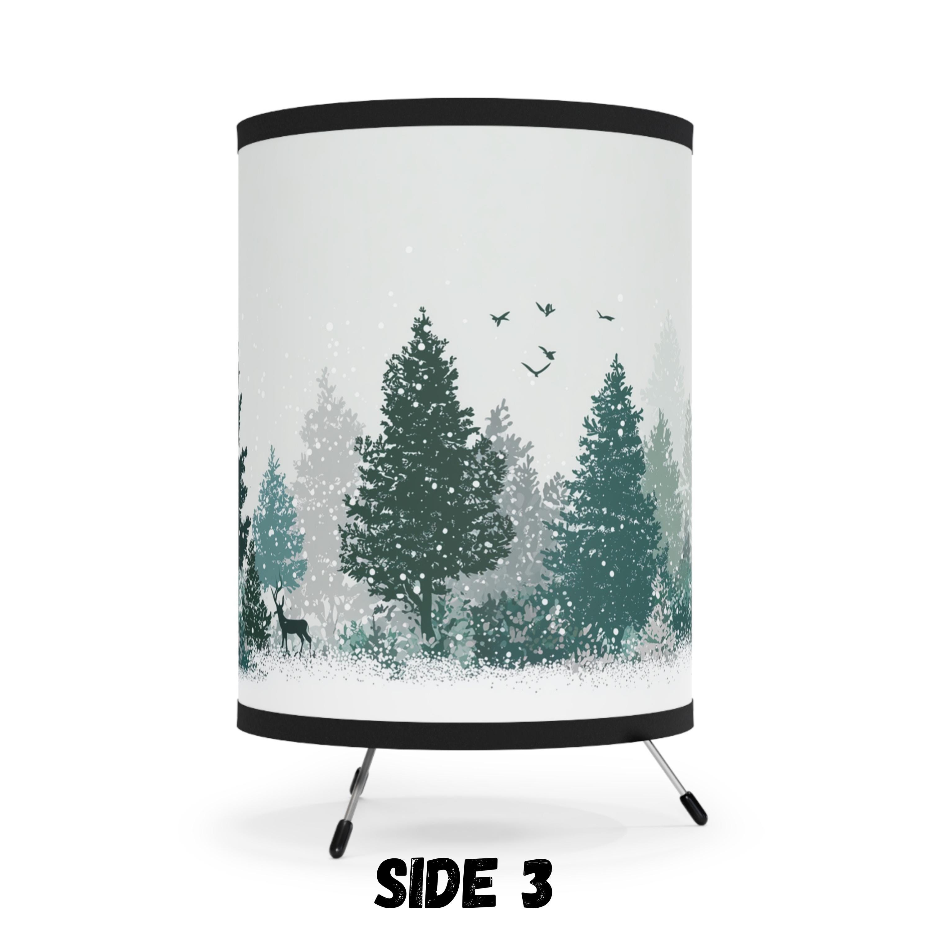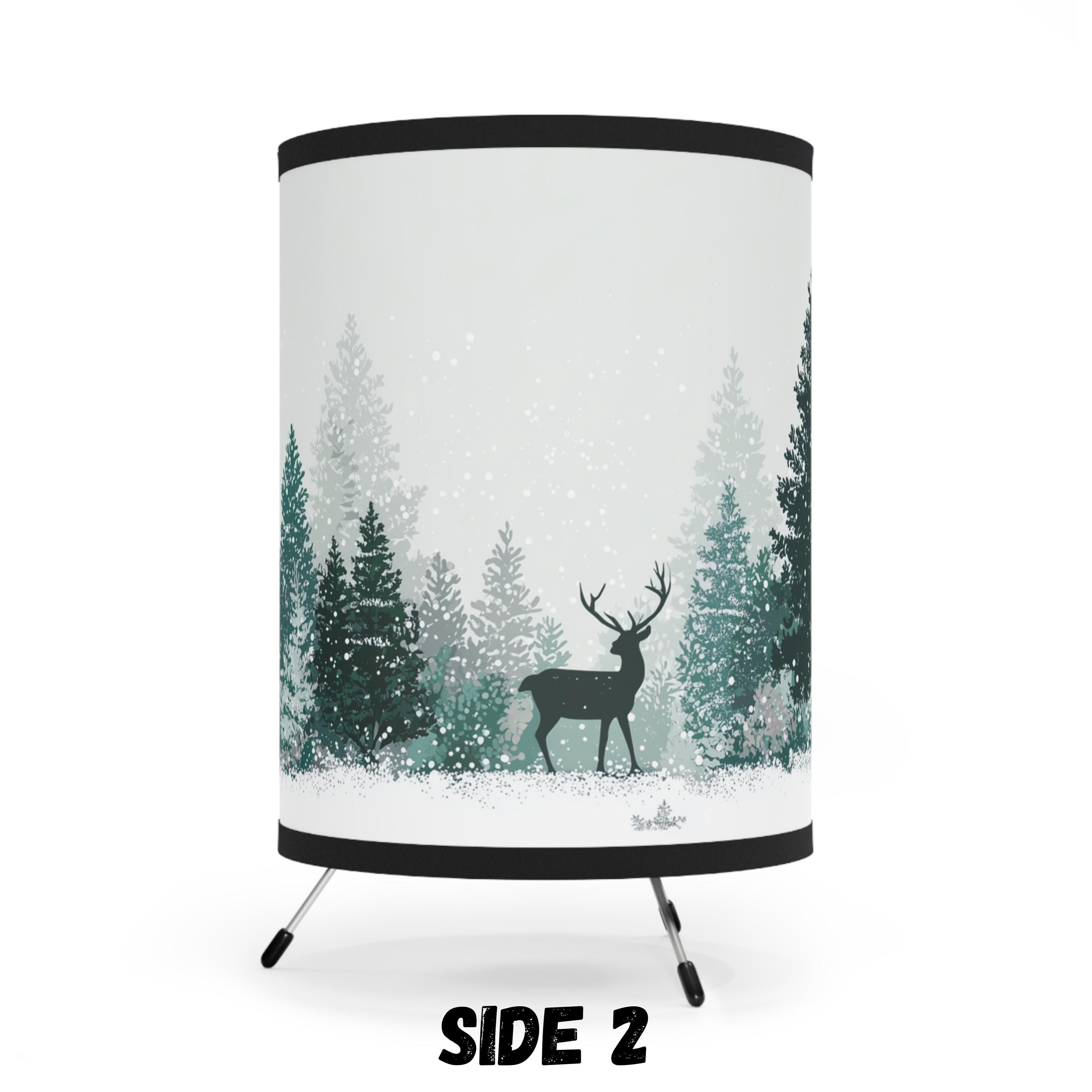 Winter Forest Tripod Lamp with Deer & Pine Trees | Cozy Nordic Christmas Decor | Holiday Gift, Cute Christmas Gift, Table Lamp, Home Decor