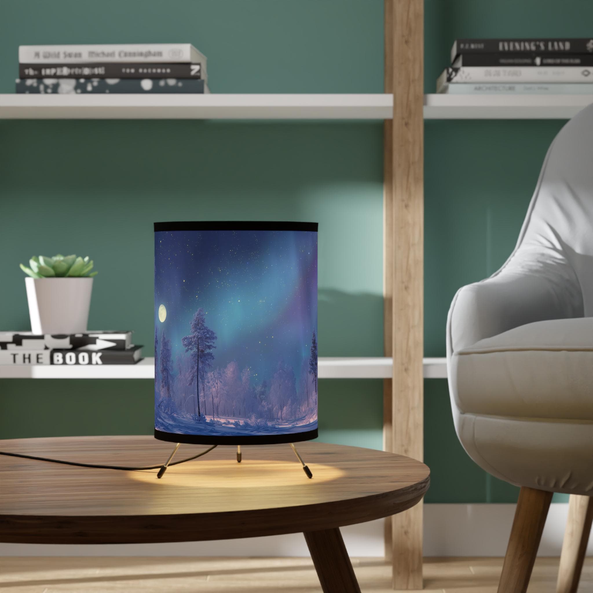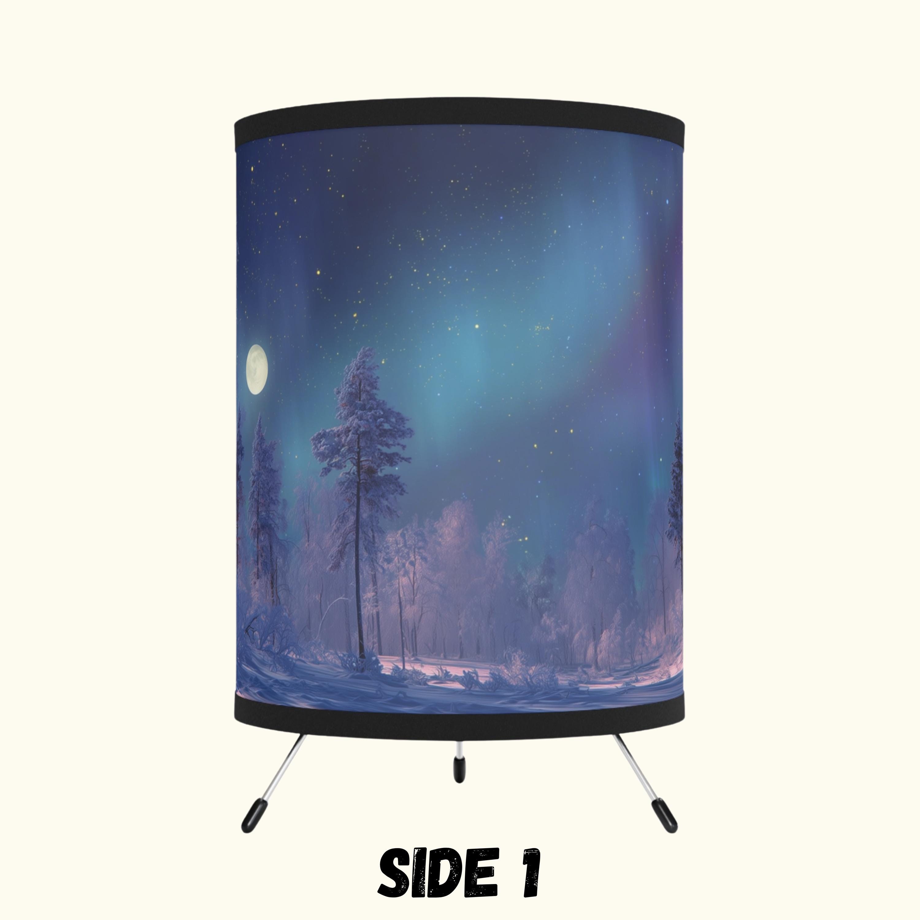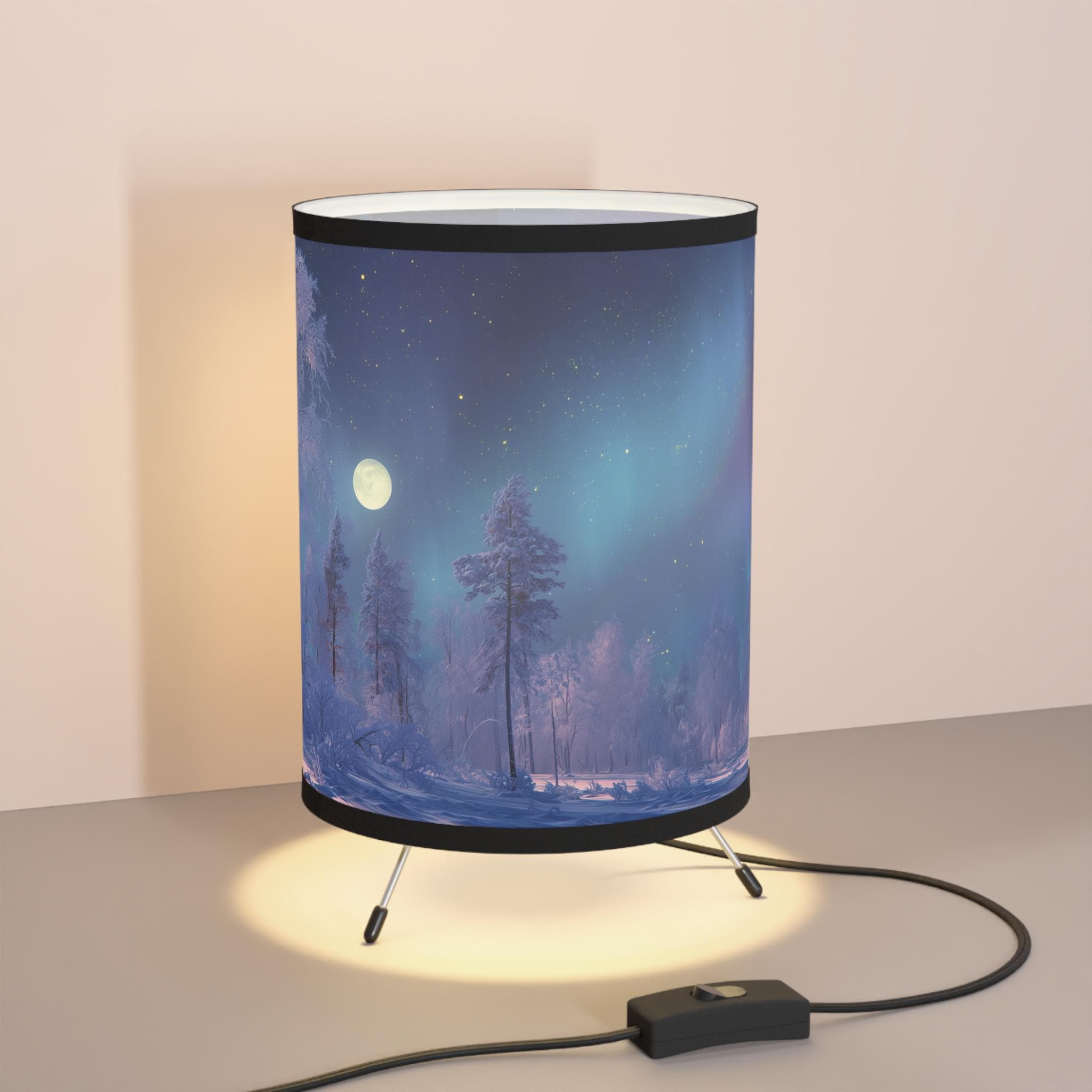 Aurora Borealis Winter Lamp with Moonlit Forest | Northern Lights Tripod Table Lamp | Christmas Home Decor & Holiday Gift, Christmas Gift