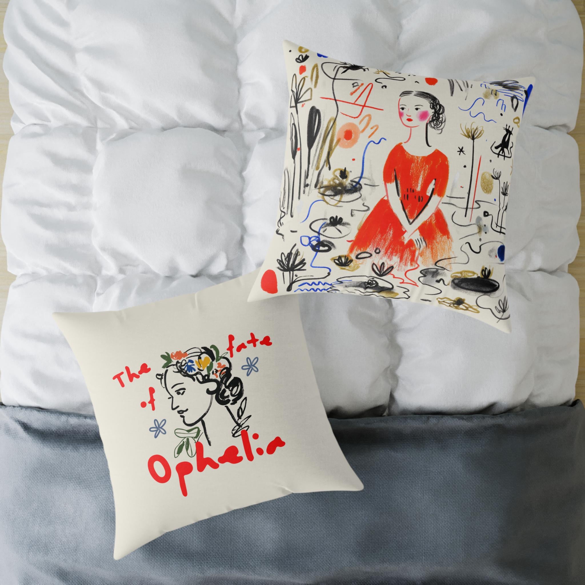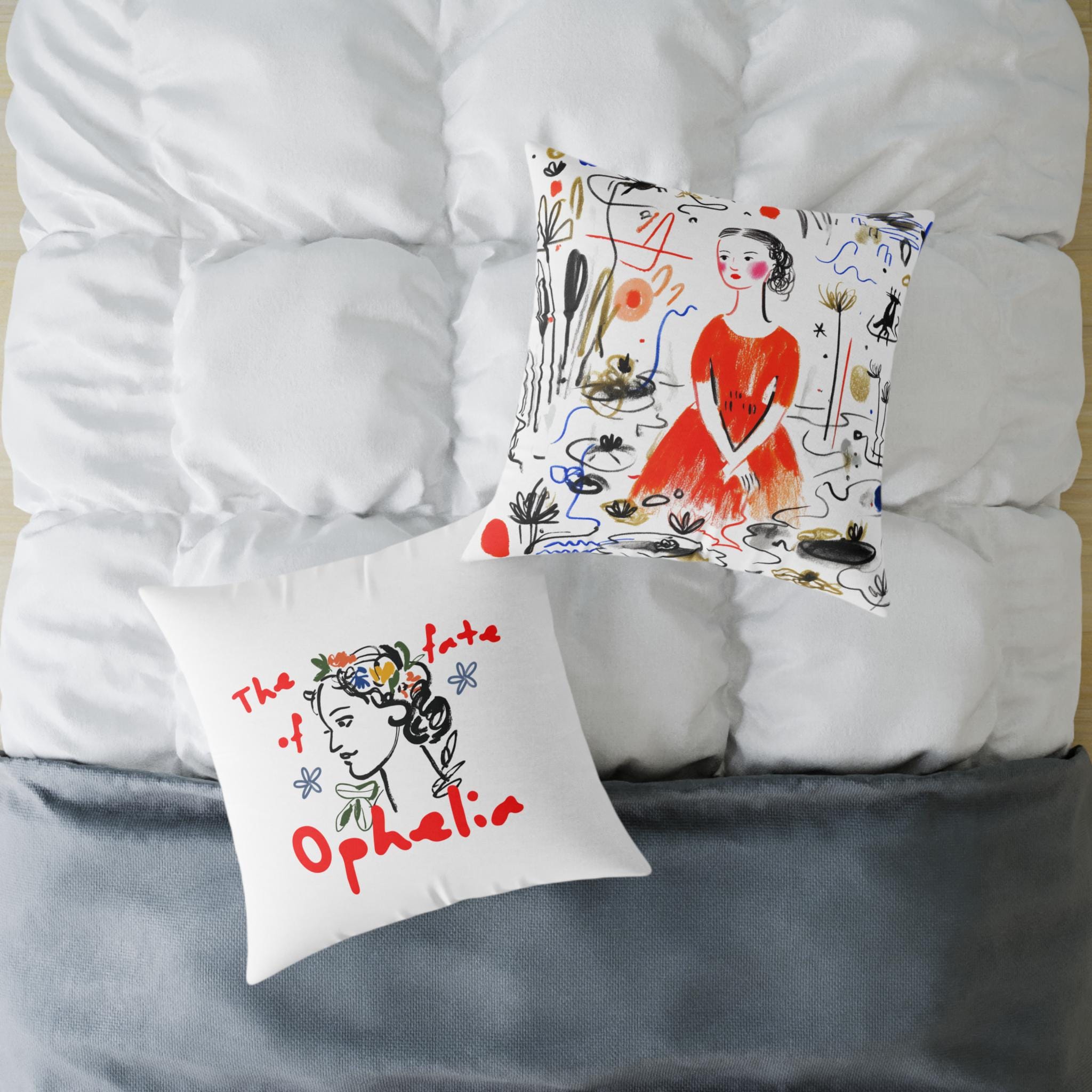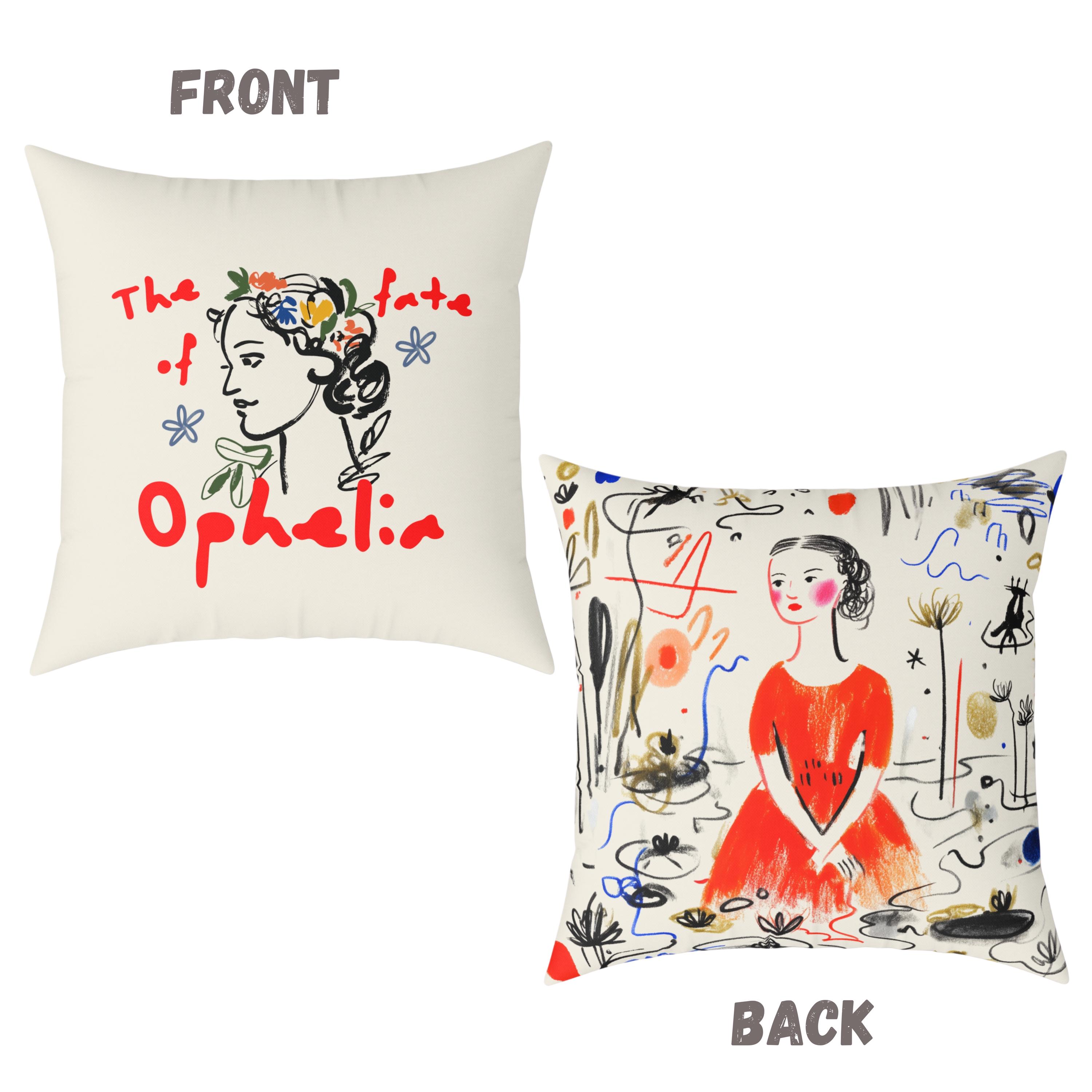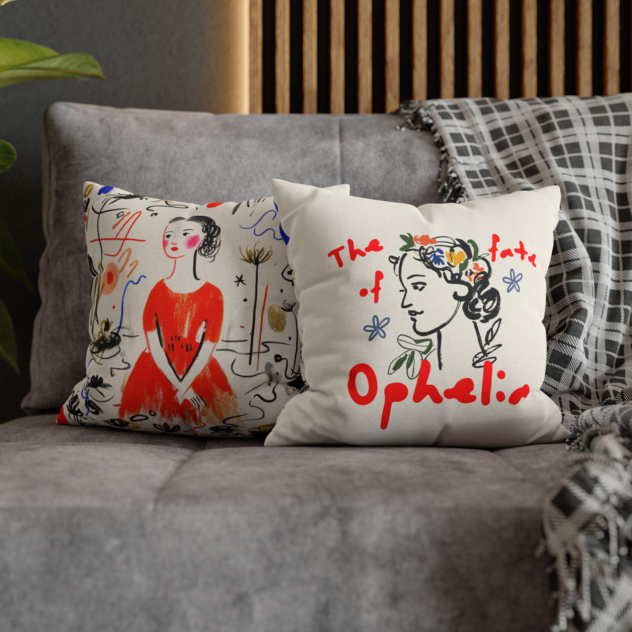 Fate of Ophelia Art Cushion Cover Set, Abstract Portrait Pillows, Shakespeare Inspired Decor, Lyric-Inspired Design, Gift for Her