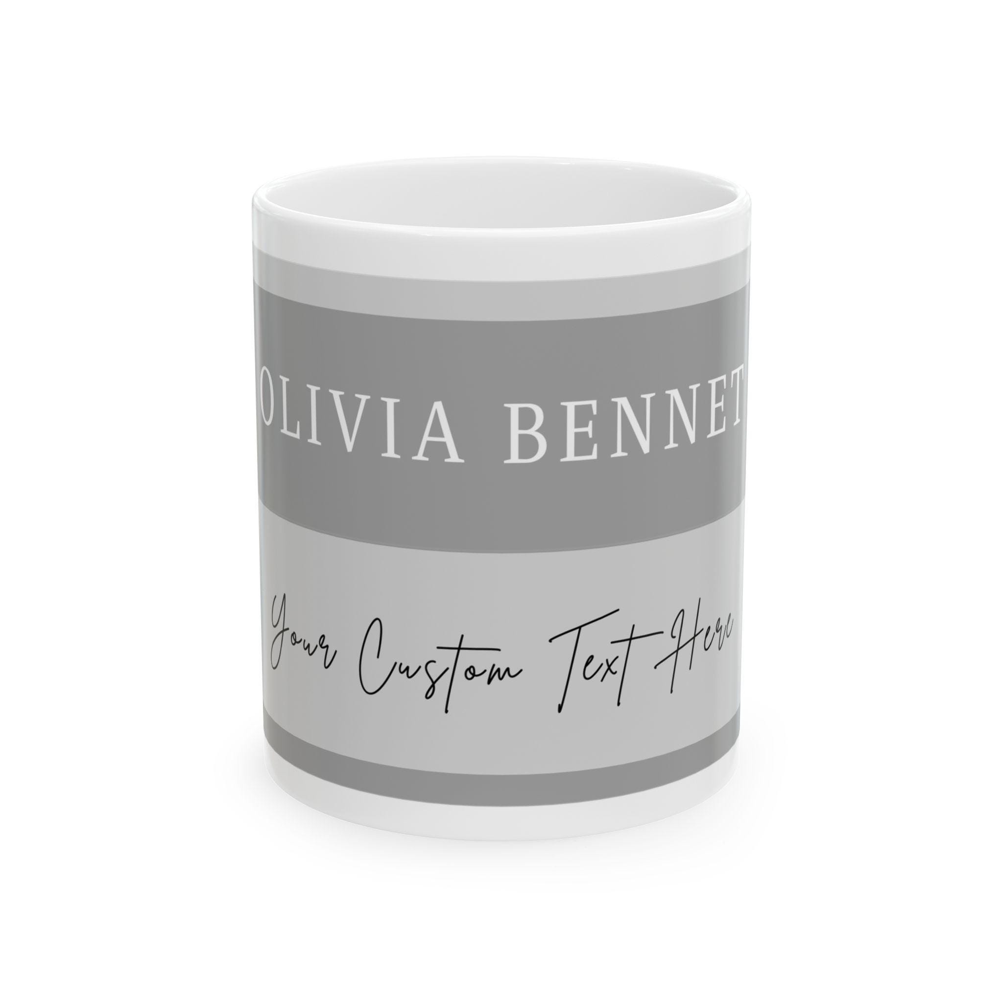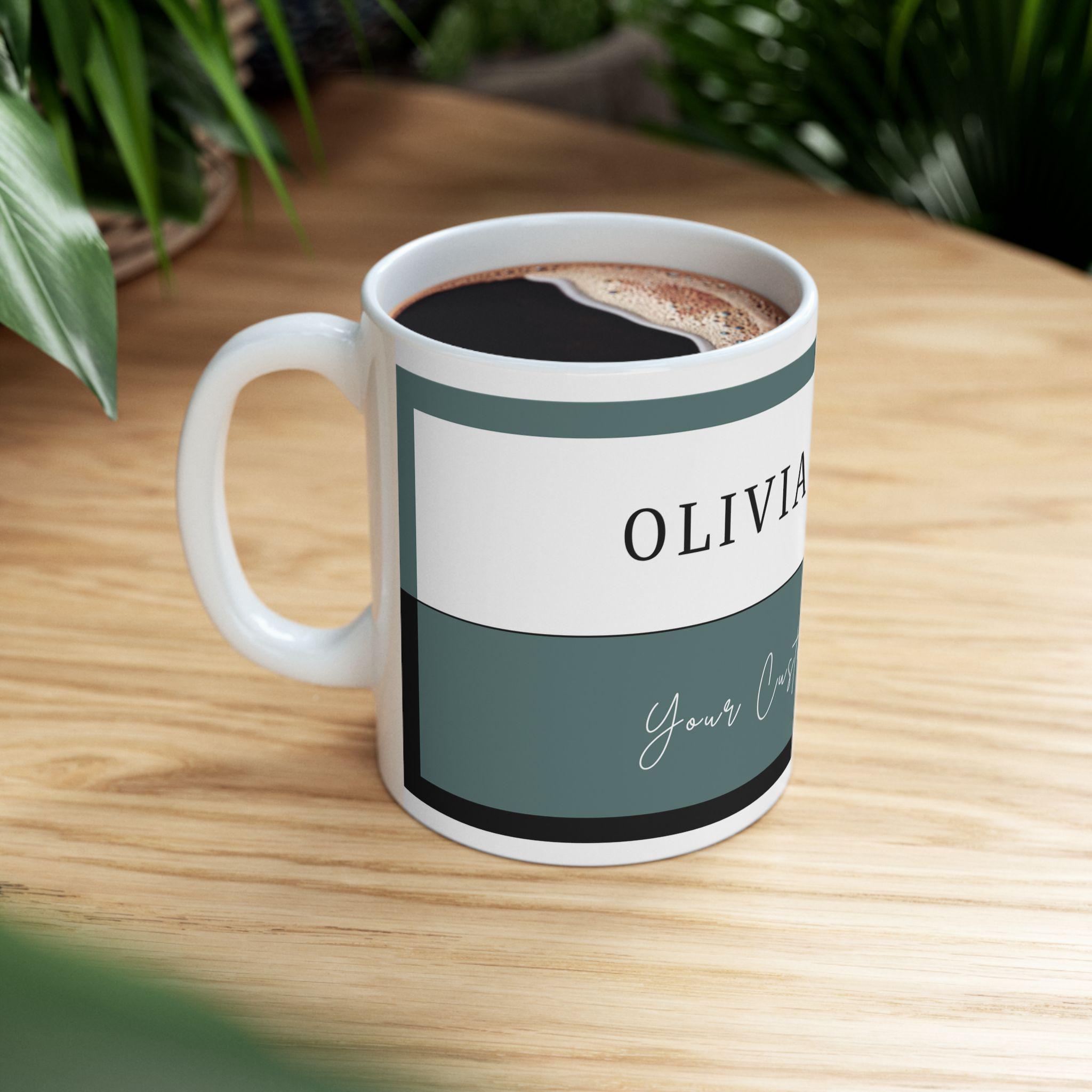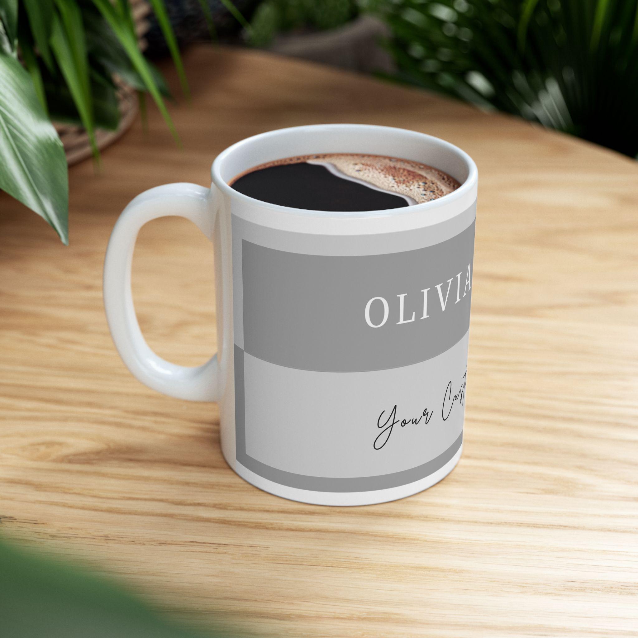 Start your mornings with a touch of sophistication! This customizable ceramic mug features a sleek design with a personalized name and custom message — perfect for coffee, tea, or hot chocolate lovers who appreciate a modern aesthetic.