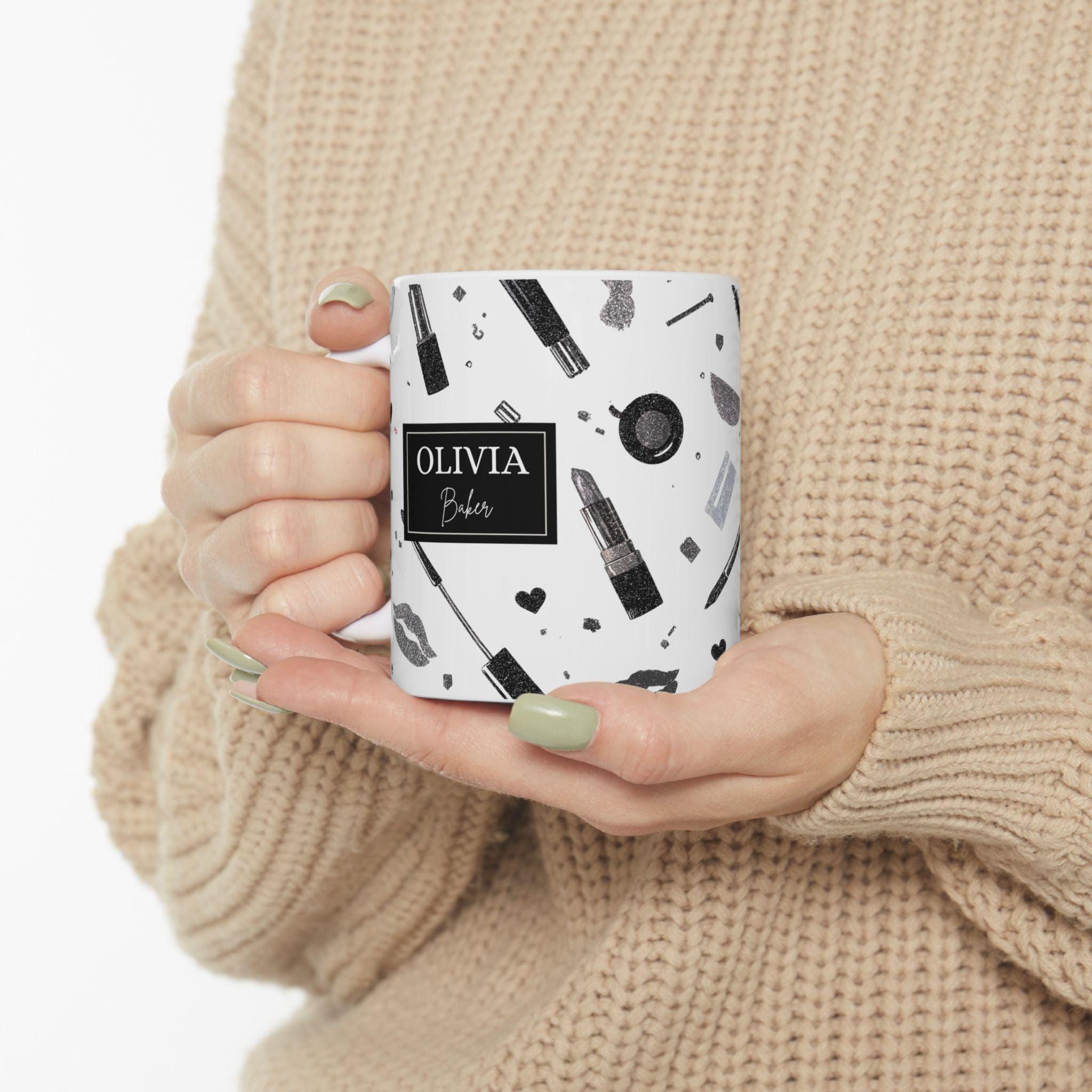 Custom Name Beautician Mug • Personalized Beauty Gift for Makeup Artist, Glam Cosmetic Pattern Cup, Beautician Mug, Coffee Mug Gift