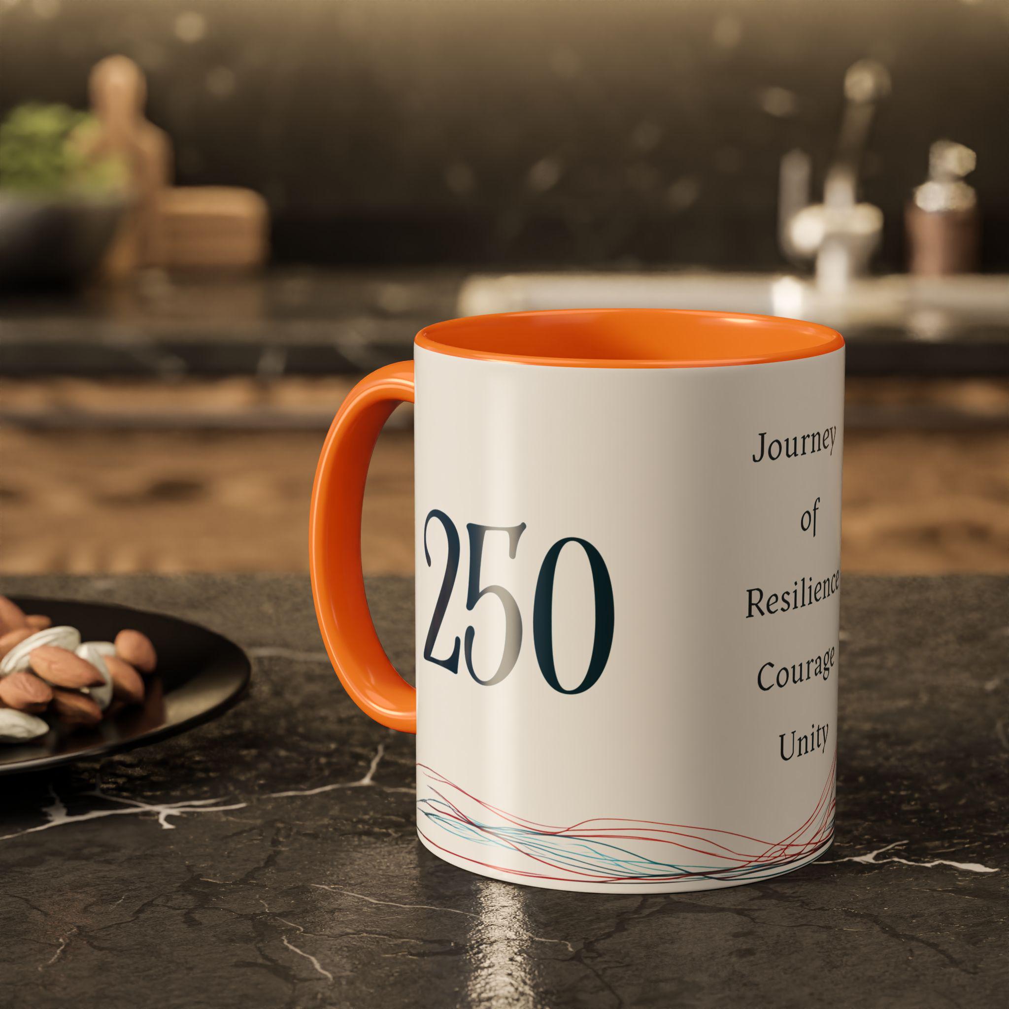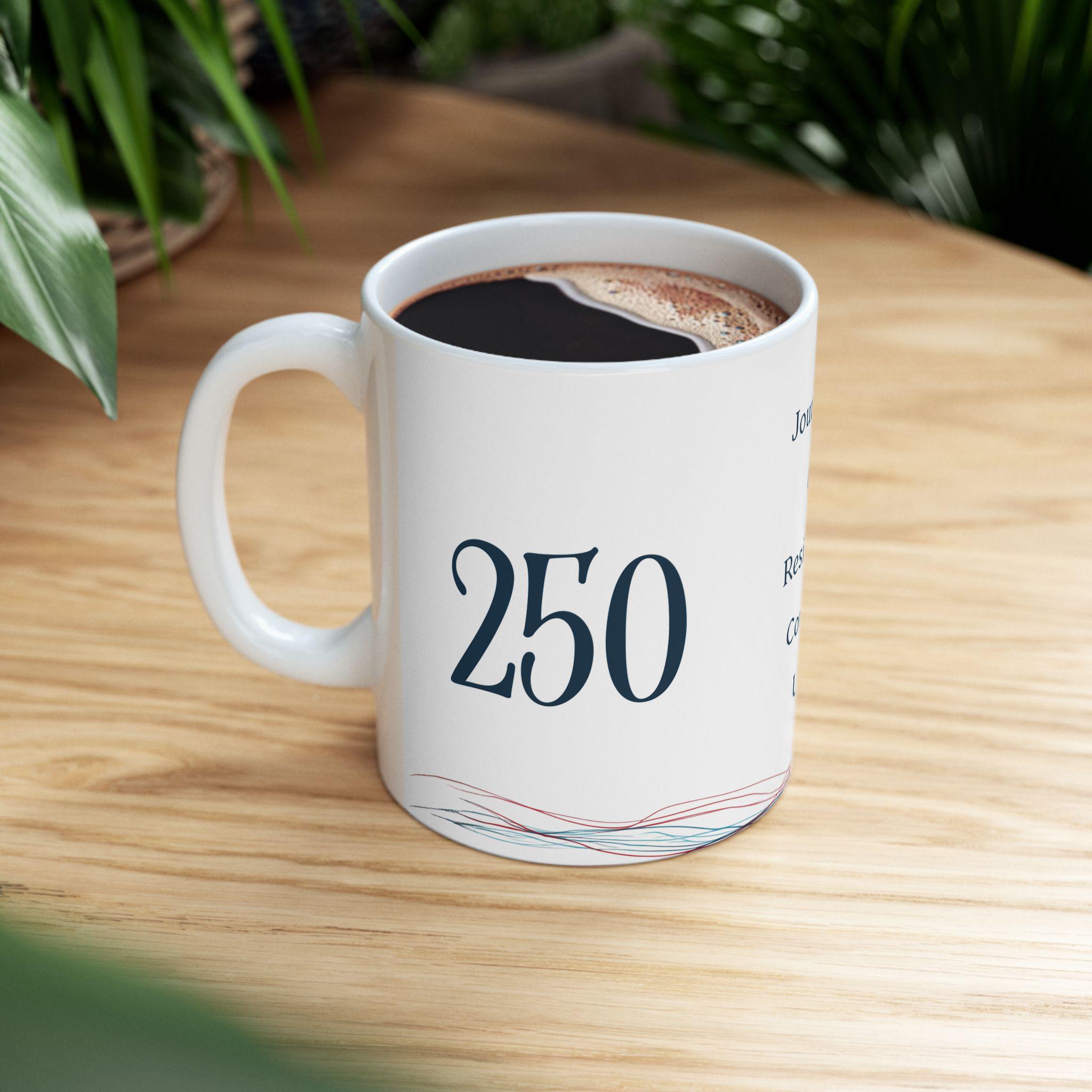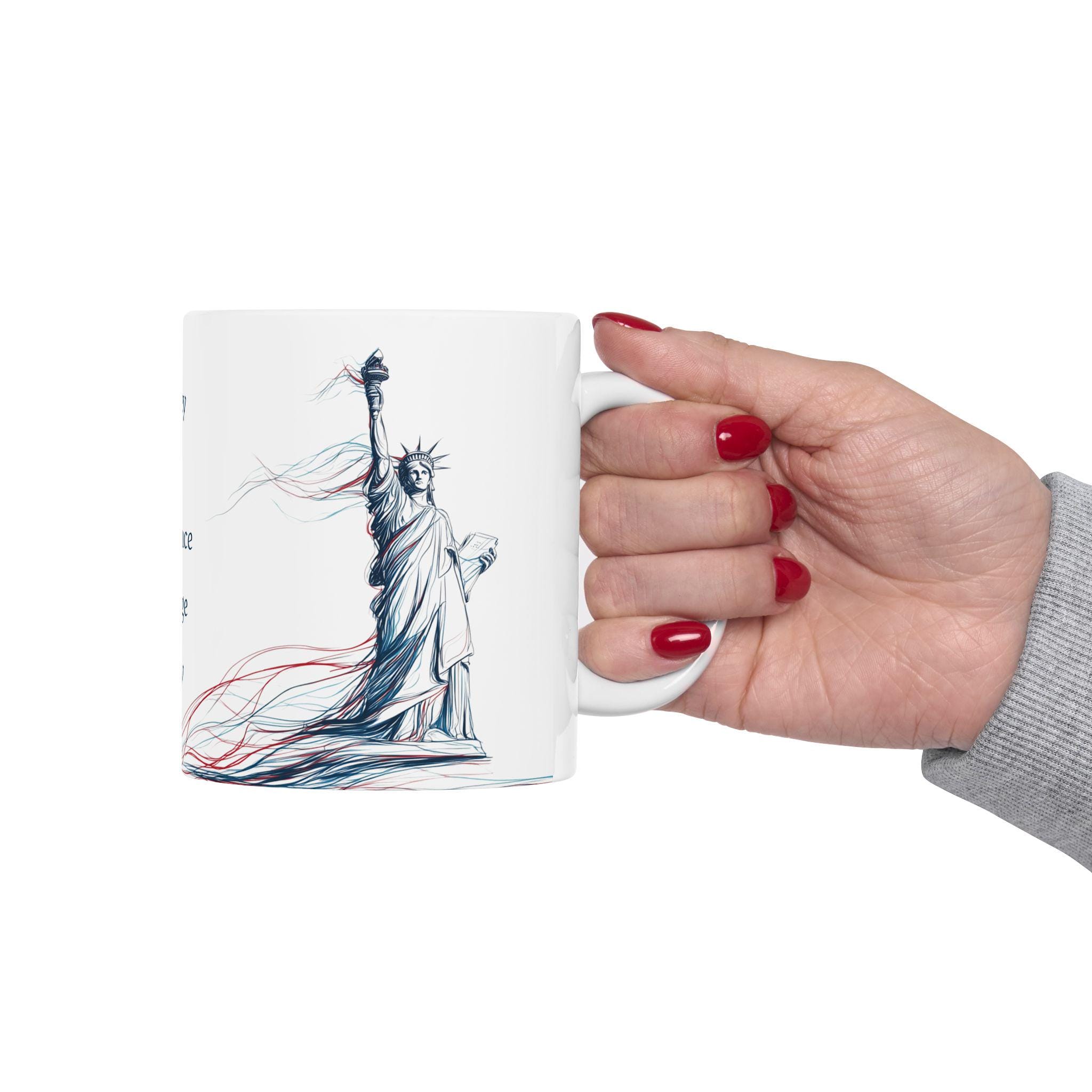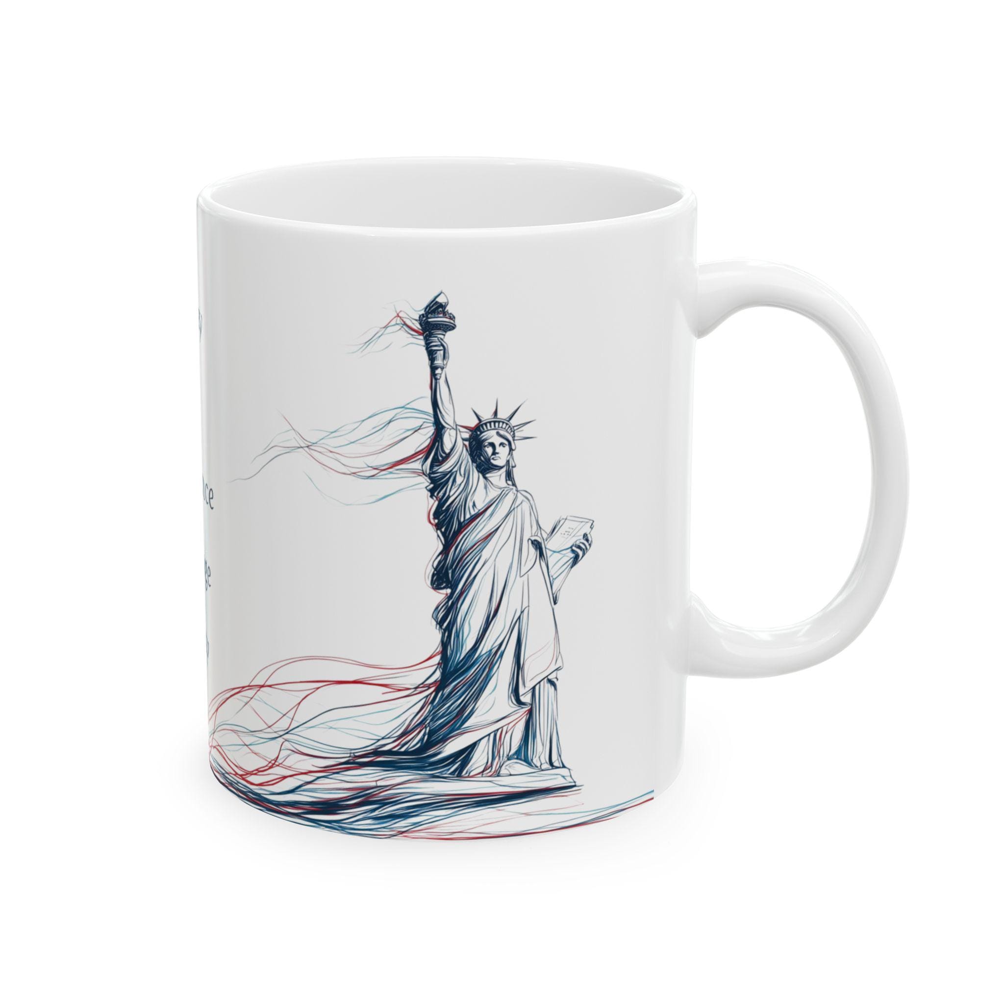 Celebrate 250 years of America’s journey — a story of resilience, courage, and unity. This beautifully designed mug honors the enduring spirit of the nation, featuring a graceful artistic rendering of the Statue of Liberty and elegant typography capturing the message: Journey of Resilience, Courage, Unity.