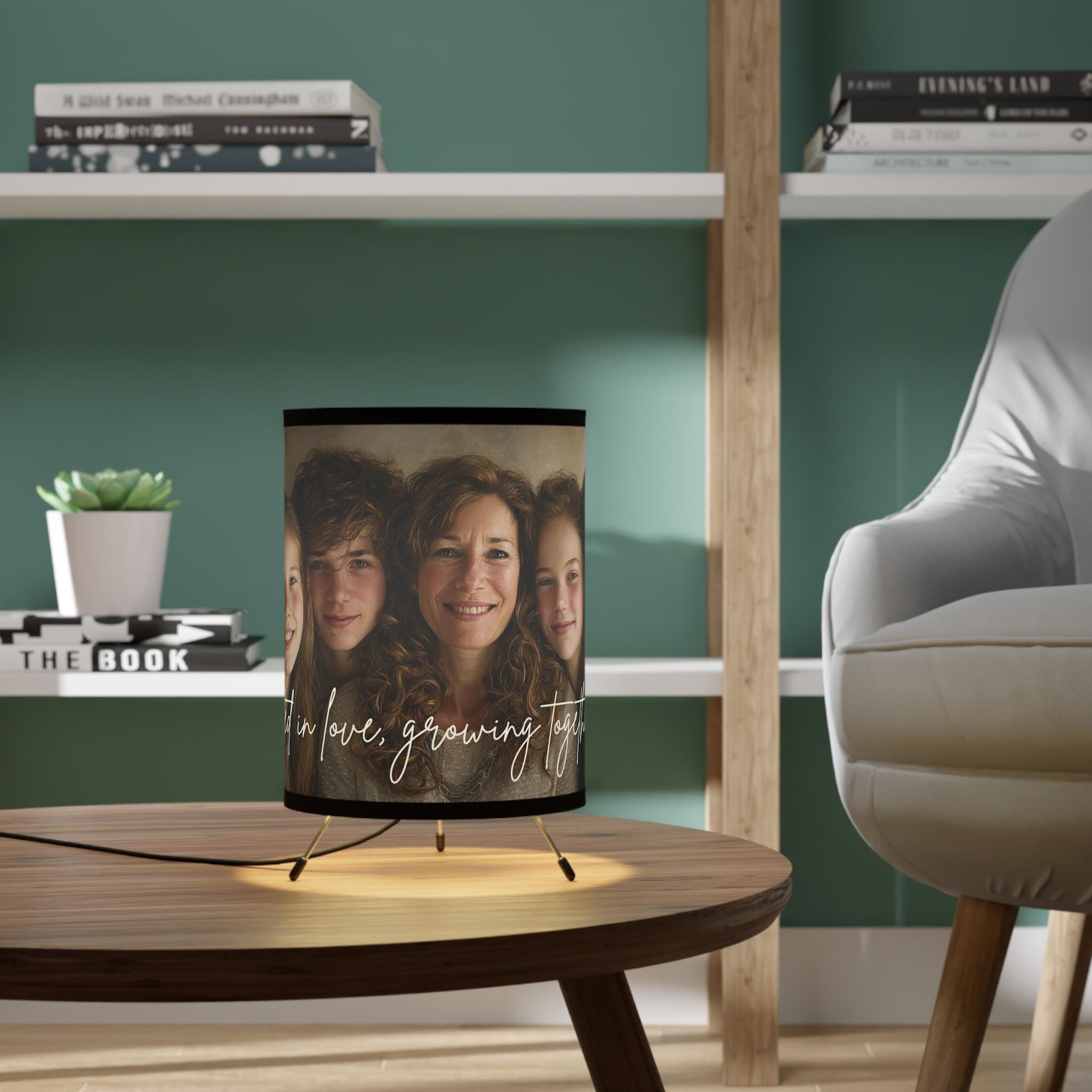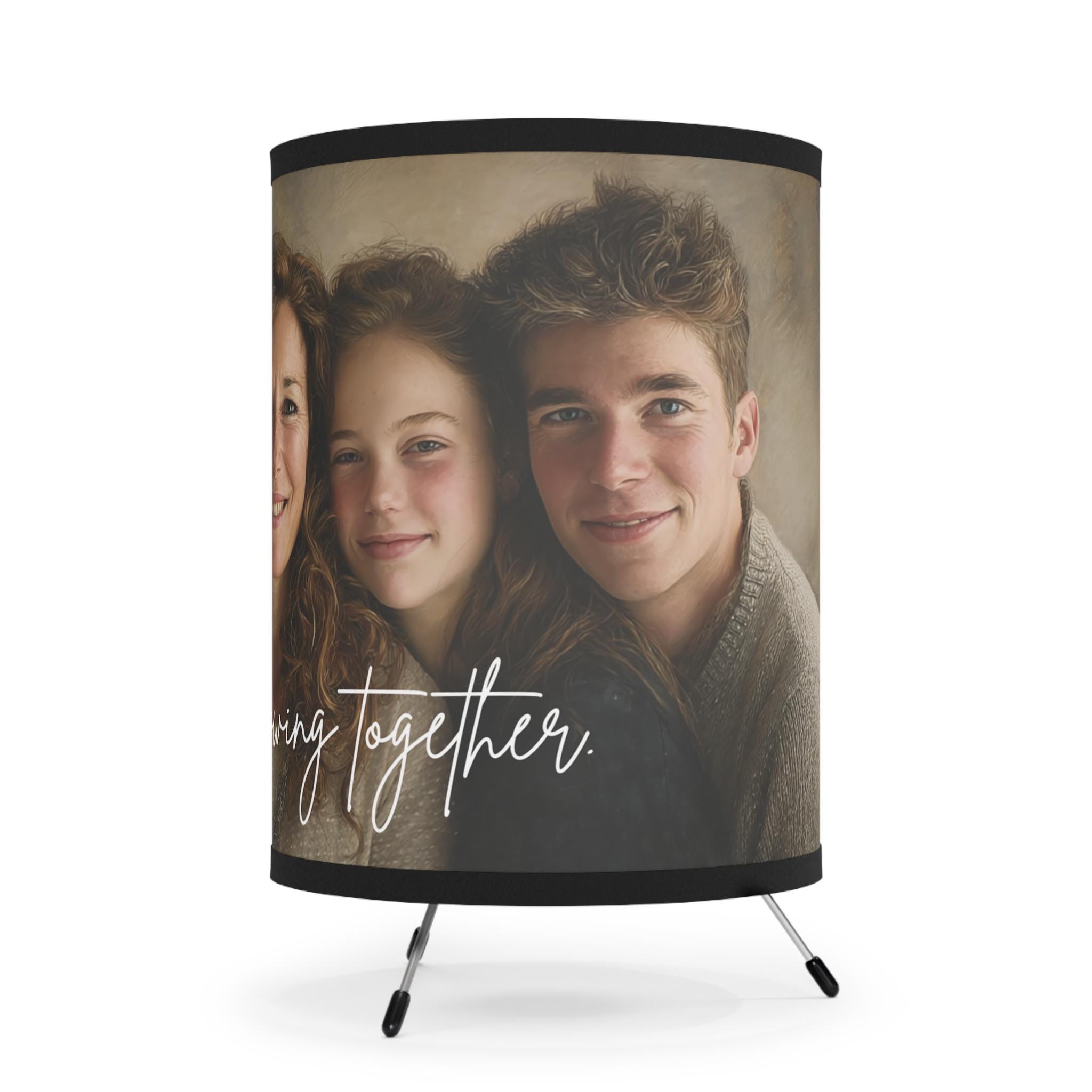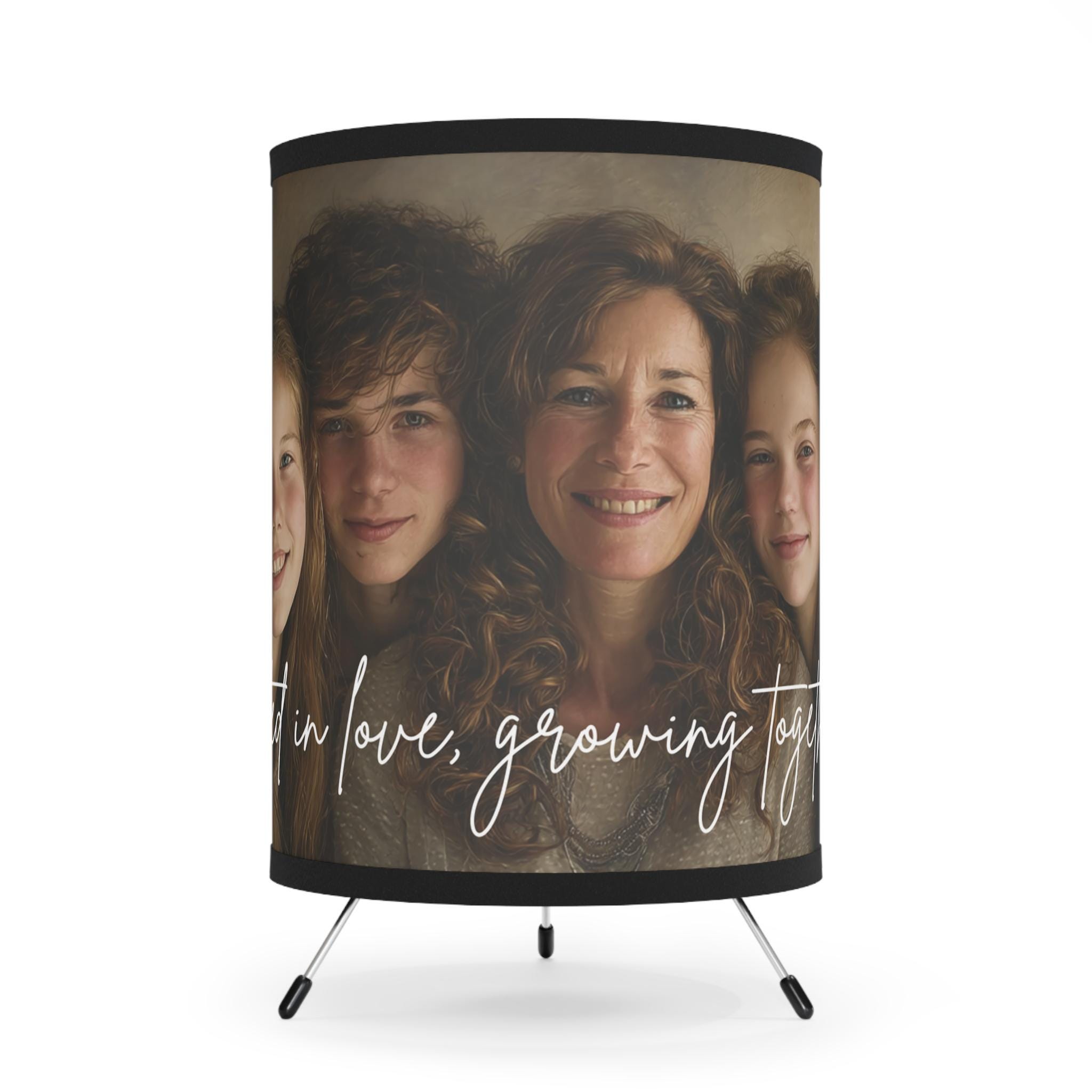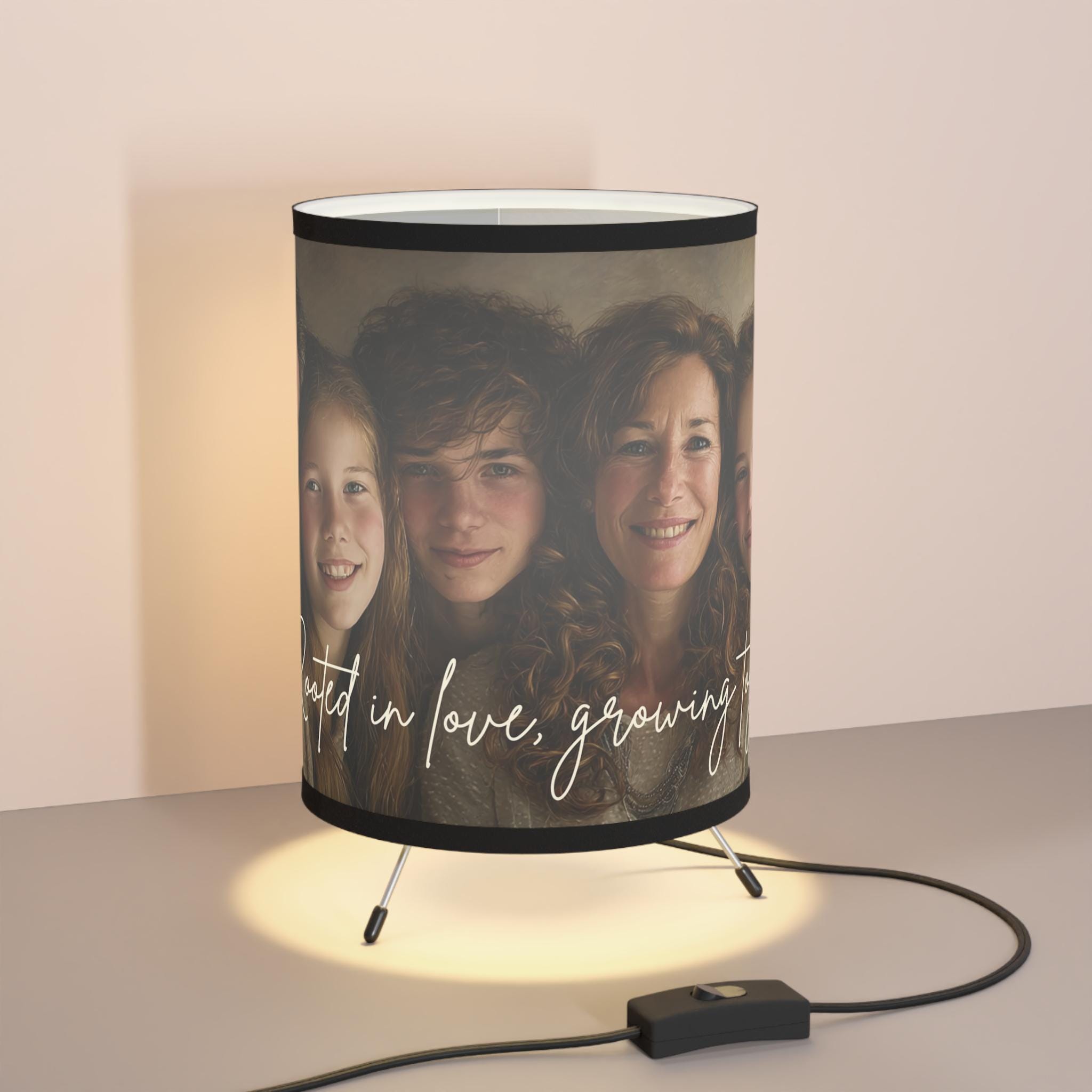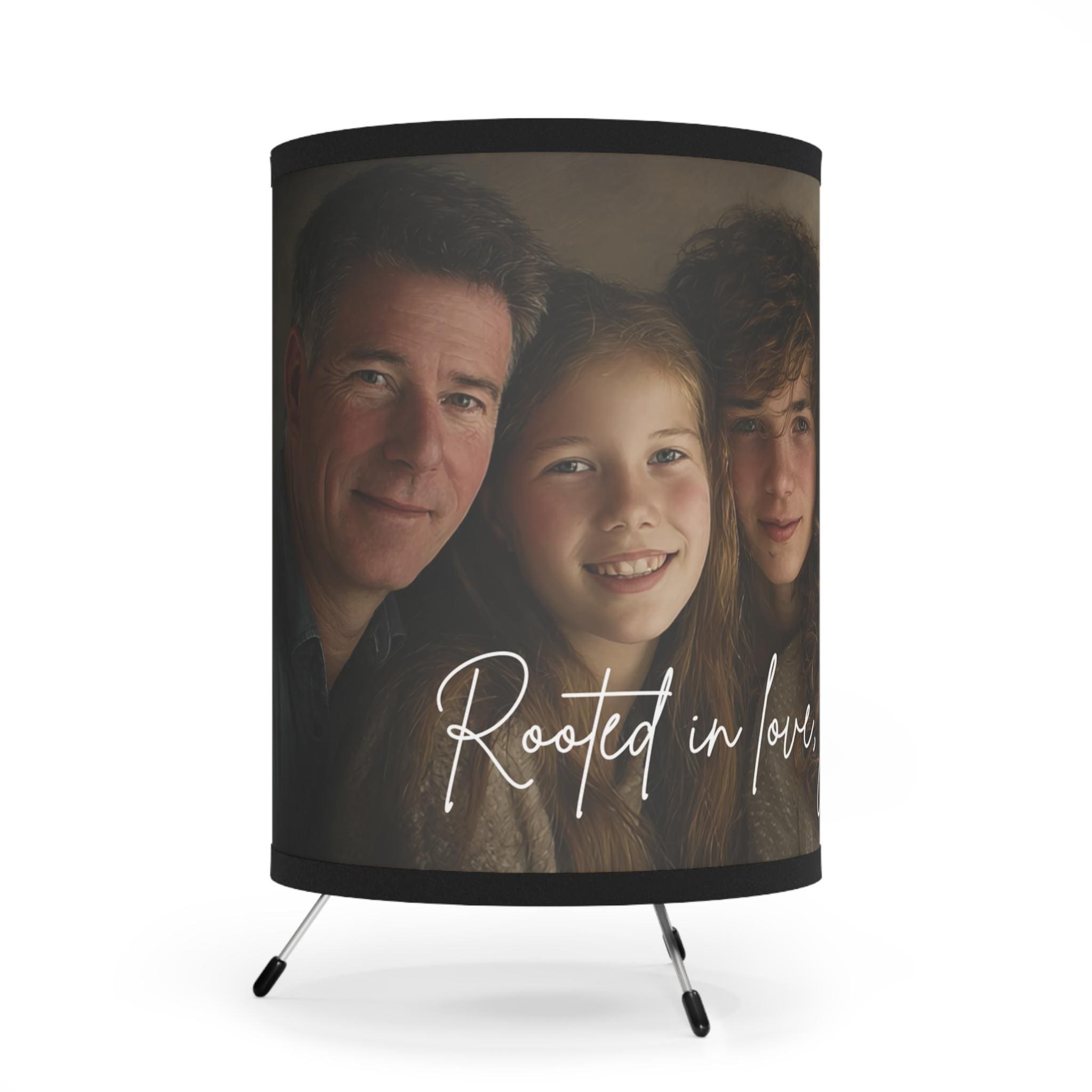 Celebrate your family bond with our Custom Family Portrait Tripod Lamp, featuring the touching phrase “Rooted in Love, Growing Together.” Each lamp is custom-made with your family photo, creating a warm and personal glow perfect for living rooms, bedrooms, or as a thoughtful family gift.