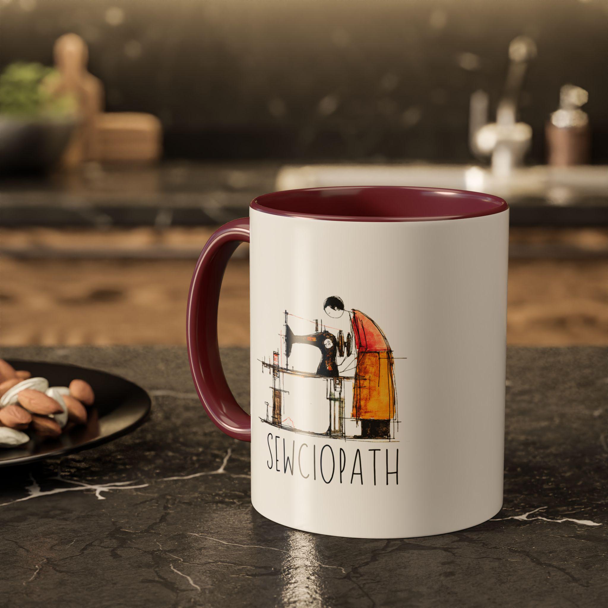 Sewciopath Mug- sewing themed mug for a seamstress or quilter who loves sewing.