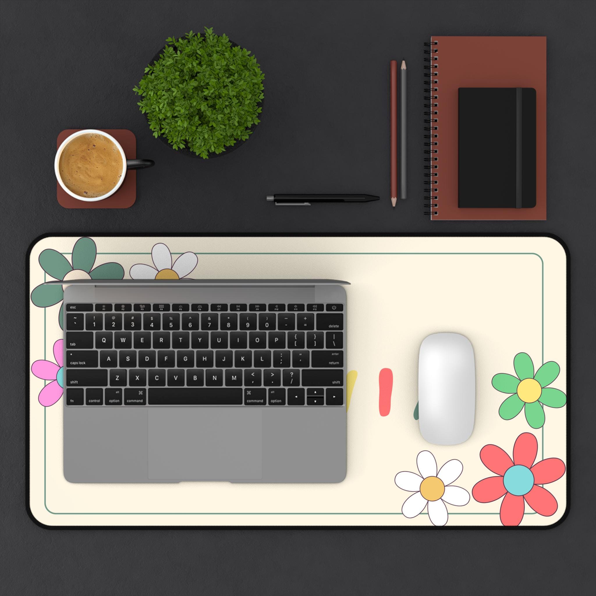 Bring charm and color to your workspace with this Custom Floral Mouse Pad / Desk Mat. Featuring pastel daisies and playful lettering, this design adds warmth and personality to any desk setup. Perfect for students, professionals, or anyone who loves a soft, cheerful vibe.