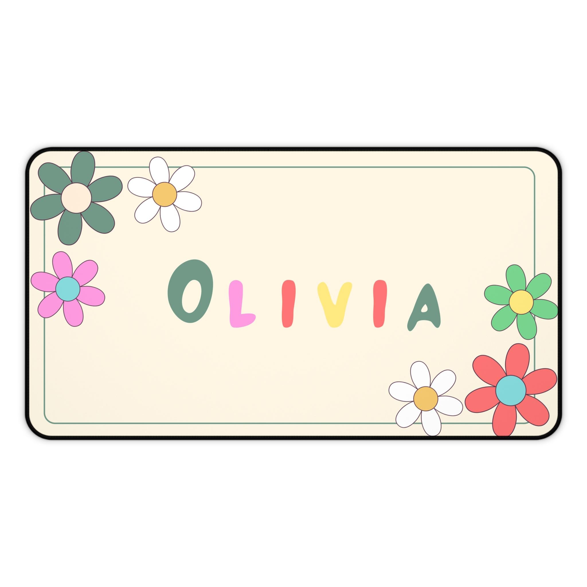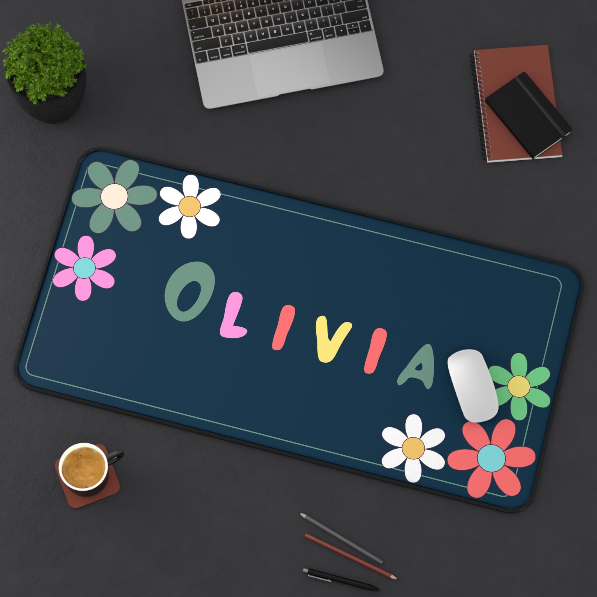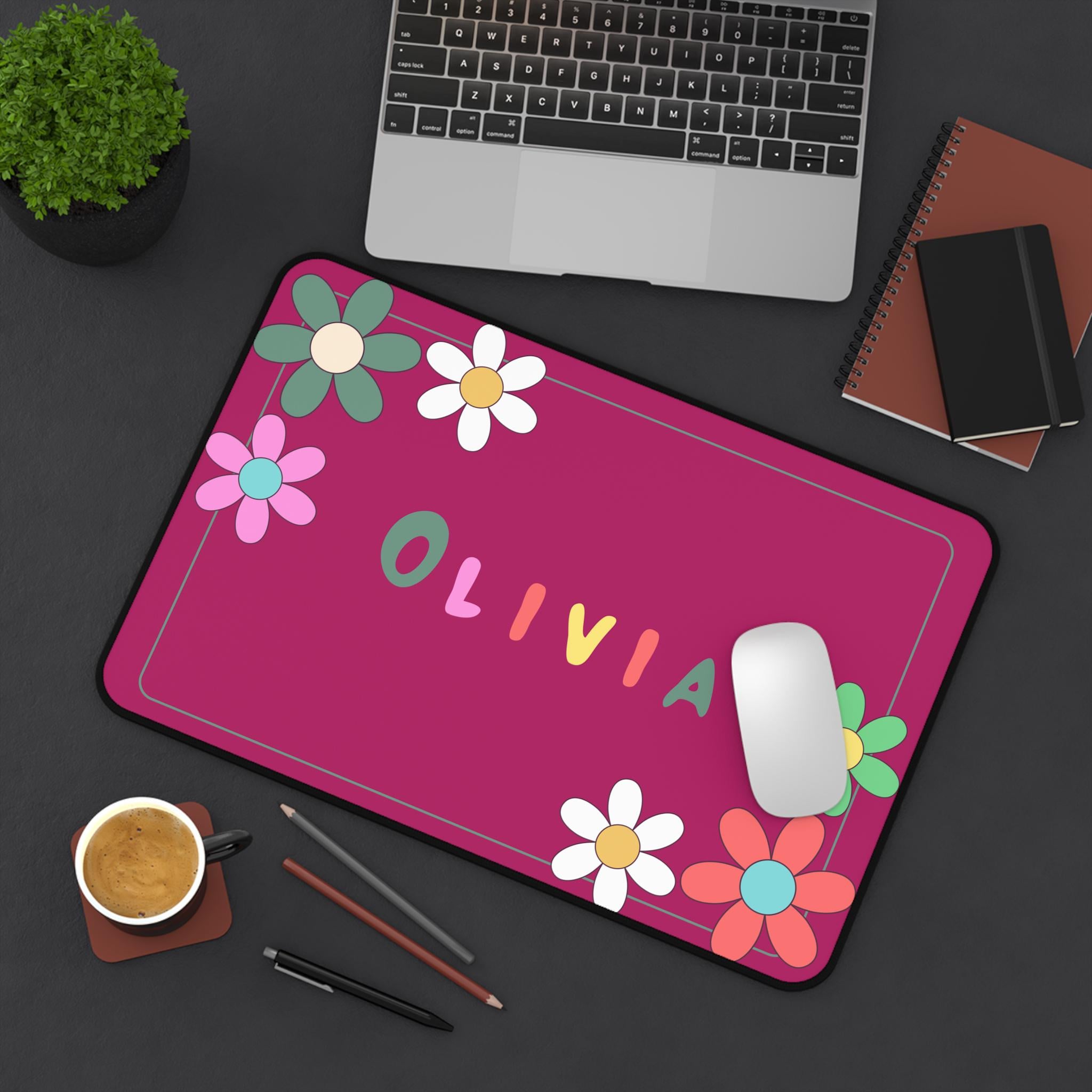 Custom Floral Mouse Pad, Personalized Name Desk Mat, Pastel Daisy Desk Accessory, Cute Workspace Gift for Her