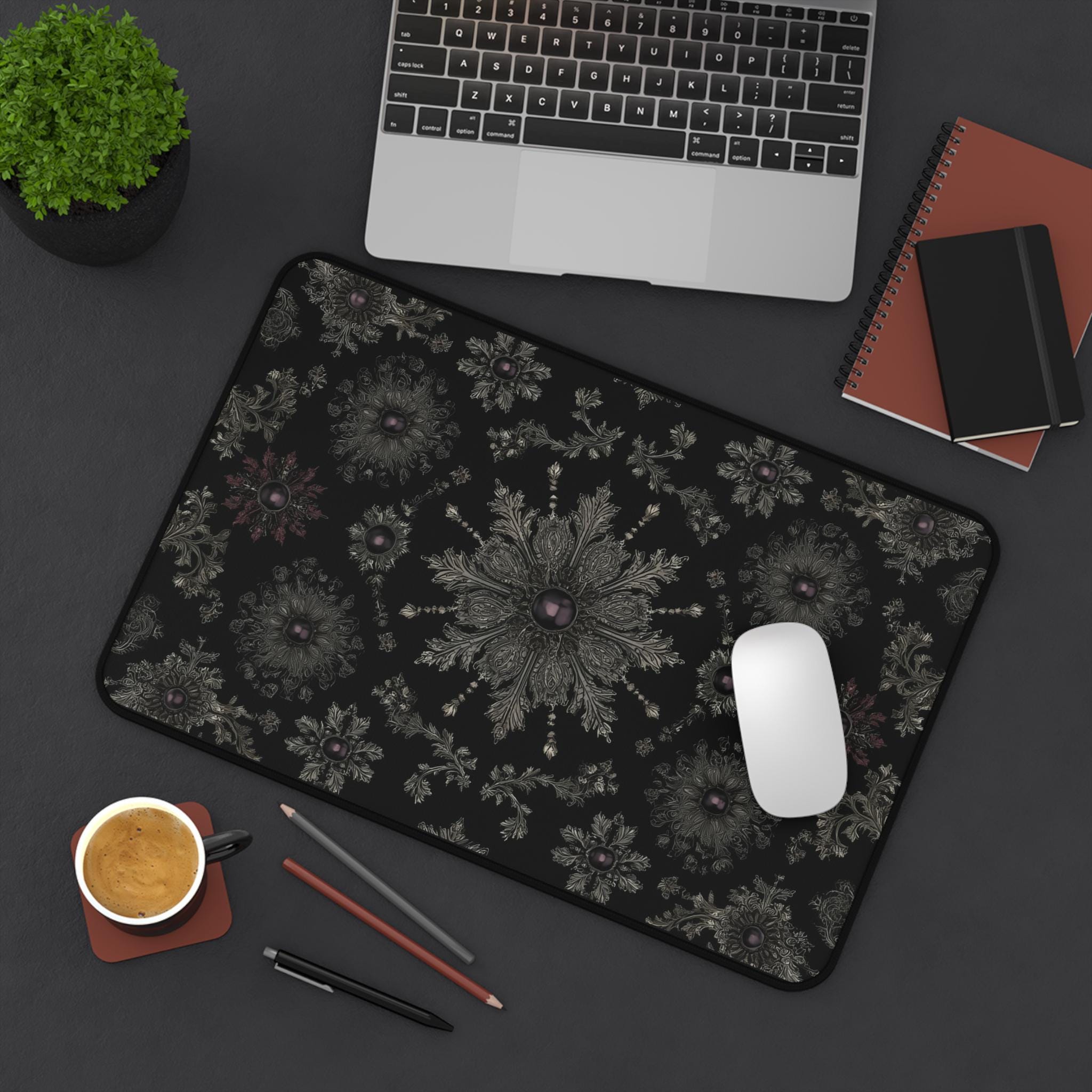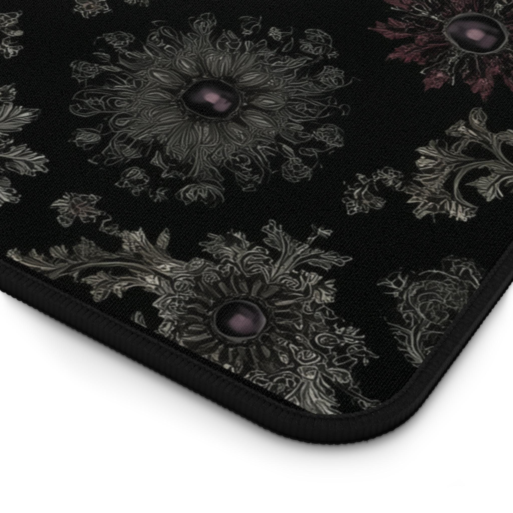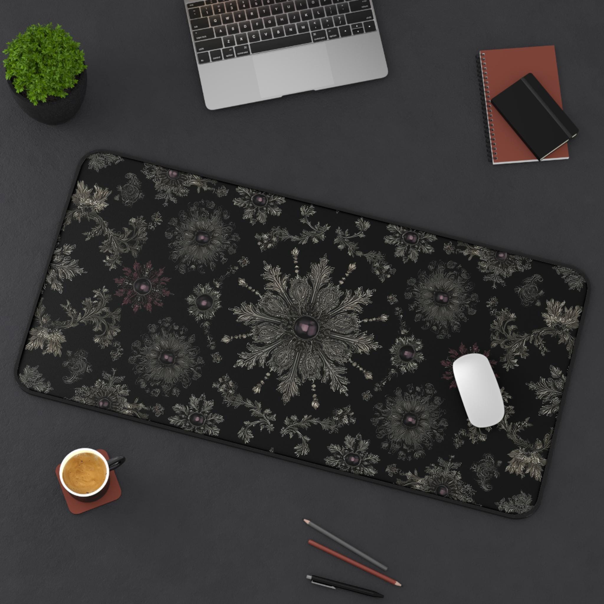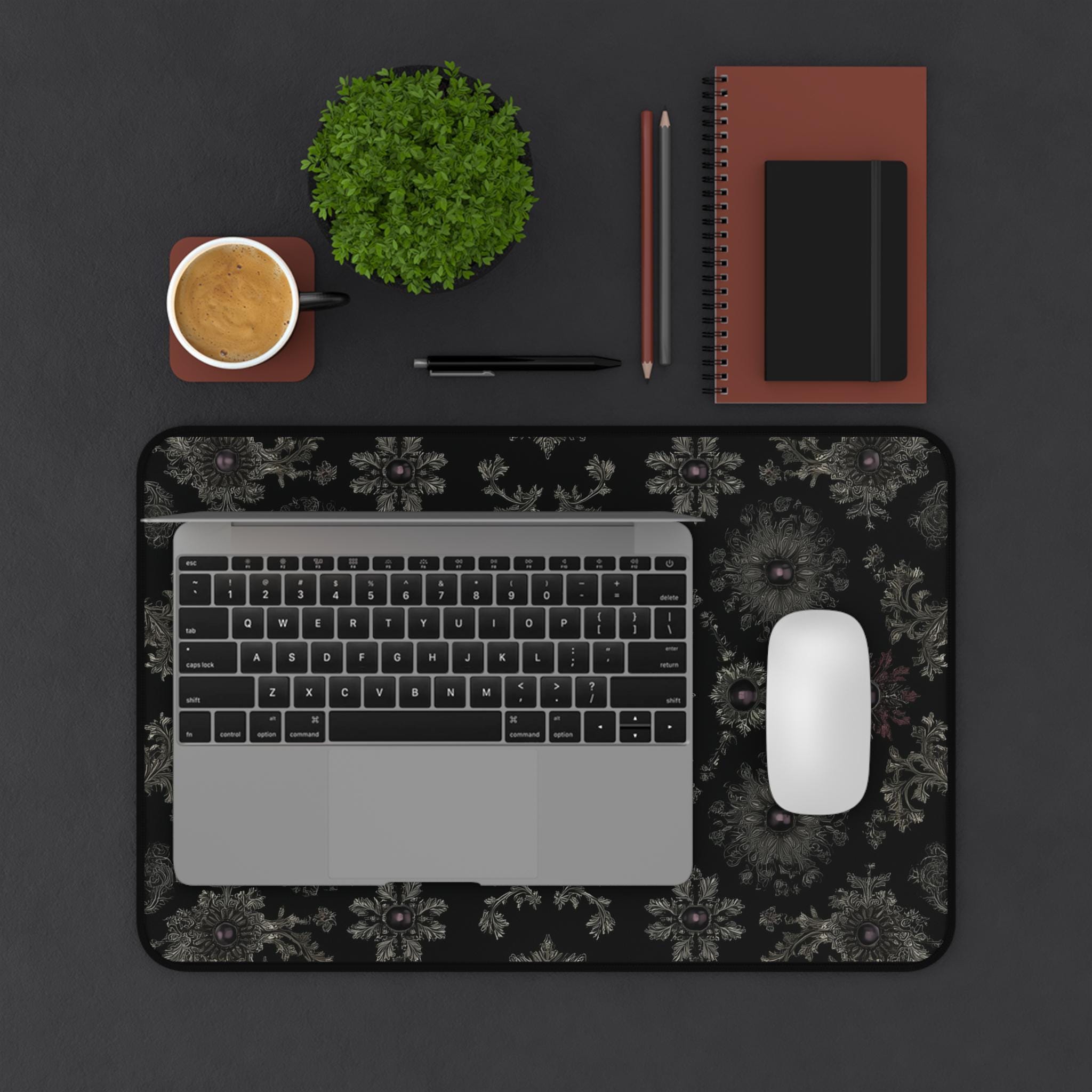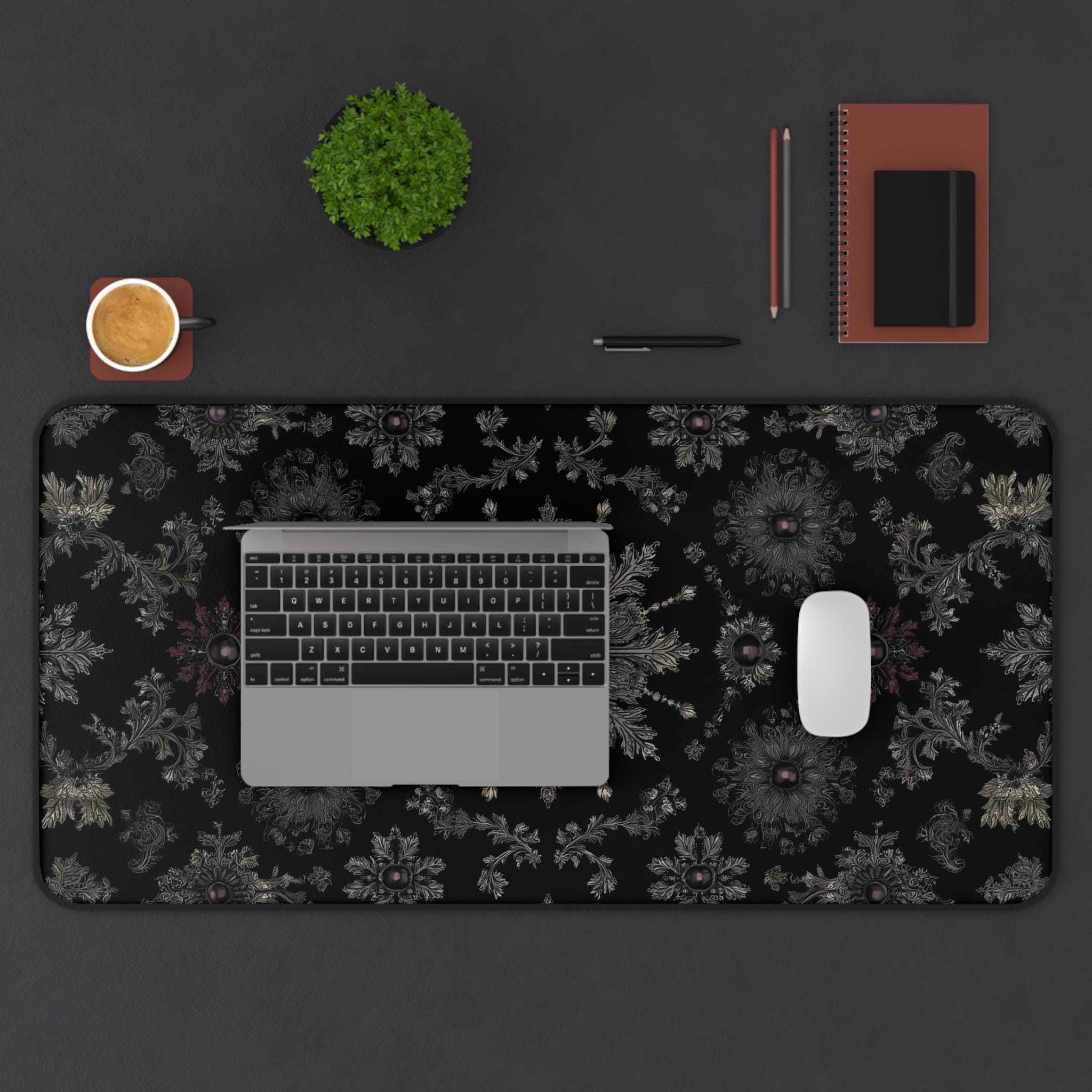 Elegant Baroque Desk Mat | Luxury Black Floral Mouse Pad | Ornamental Pattern Gaming Desk Mat | Aesthetic Office Decor Gift | Happy Pret