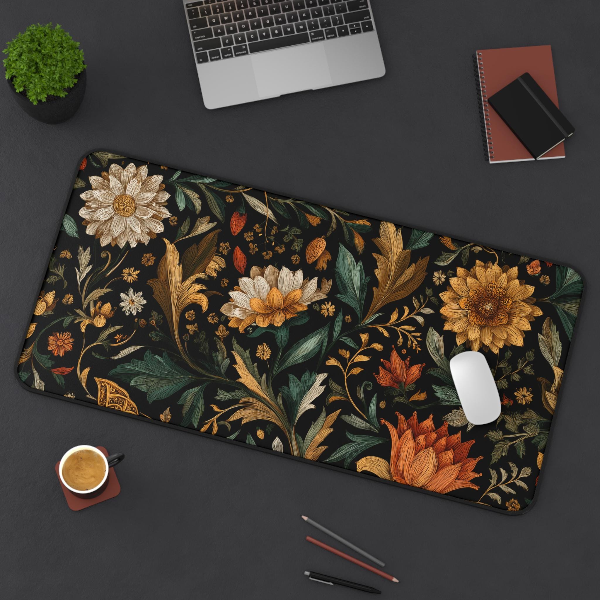 Vintage Floral Desk Mat, Aesthetic Mouse Pad, Botanical Office Decor, Large Desk Pad for Laptop, Workspace & Gaming Setup Gift