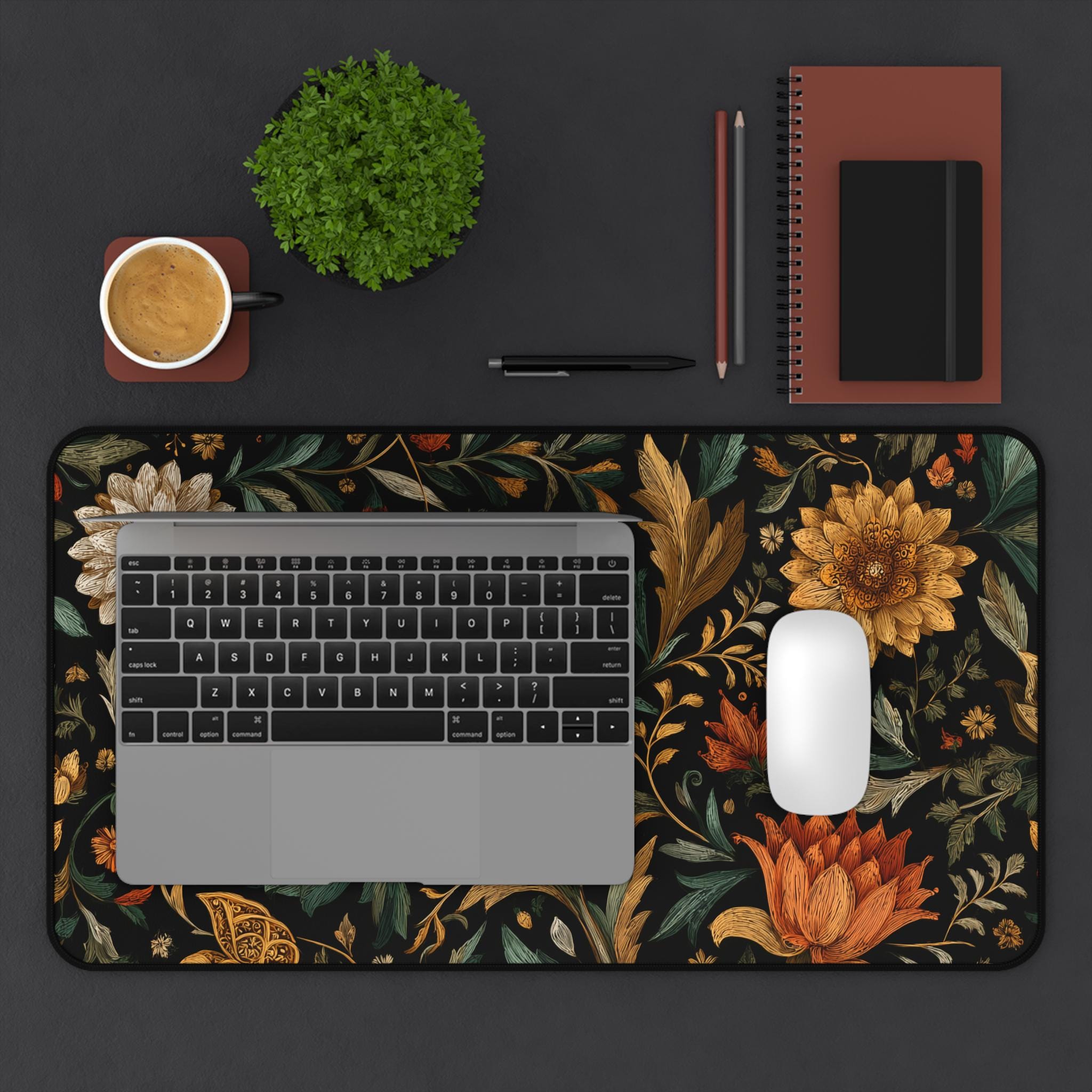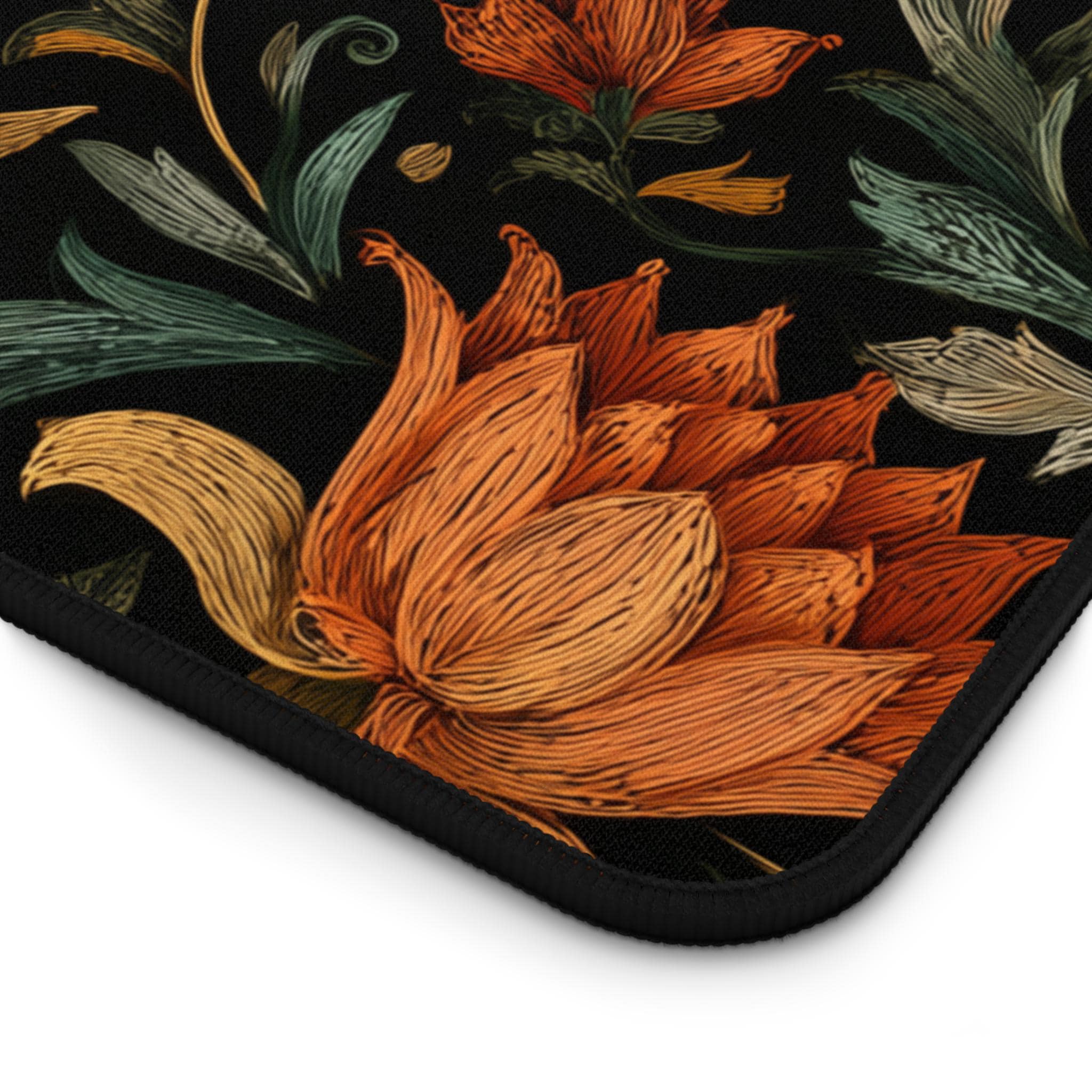 Transform your workspace with this beautifully designed floral desk mat — a perfect blend of art and function. The rich botanical print adds warmth and sophistication to any desk setup, while providing a smooth surface for your mouse, laptop, and accessories.