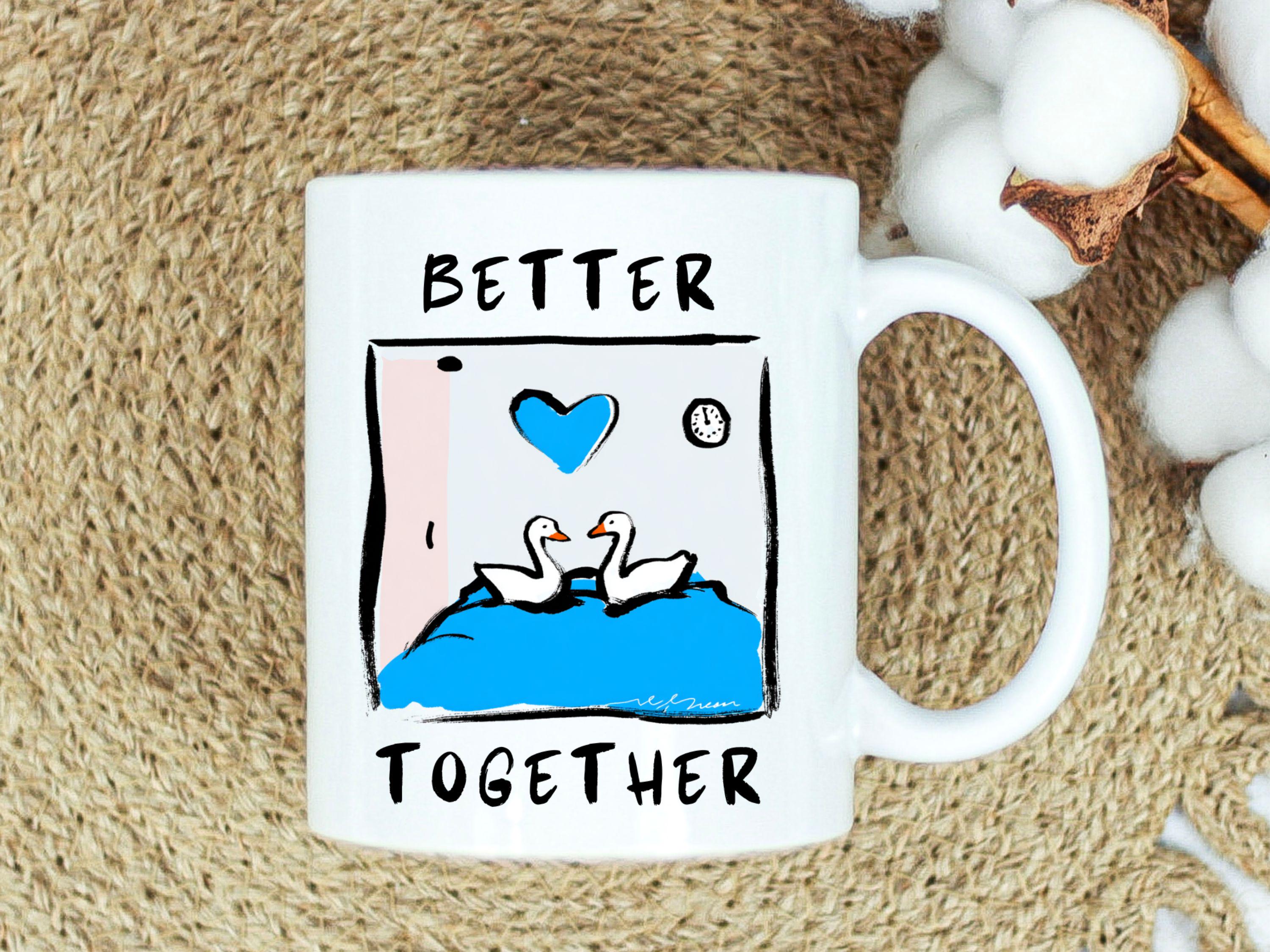 Better together Valentine Mug, Valentines Day Gift For Him, Cute Ducks Mug, Couple Valentine Coffee Mug, Cute Romantic Gift Mug, 11 15 oz