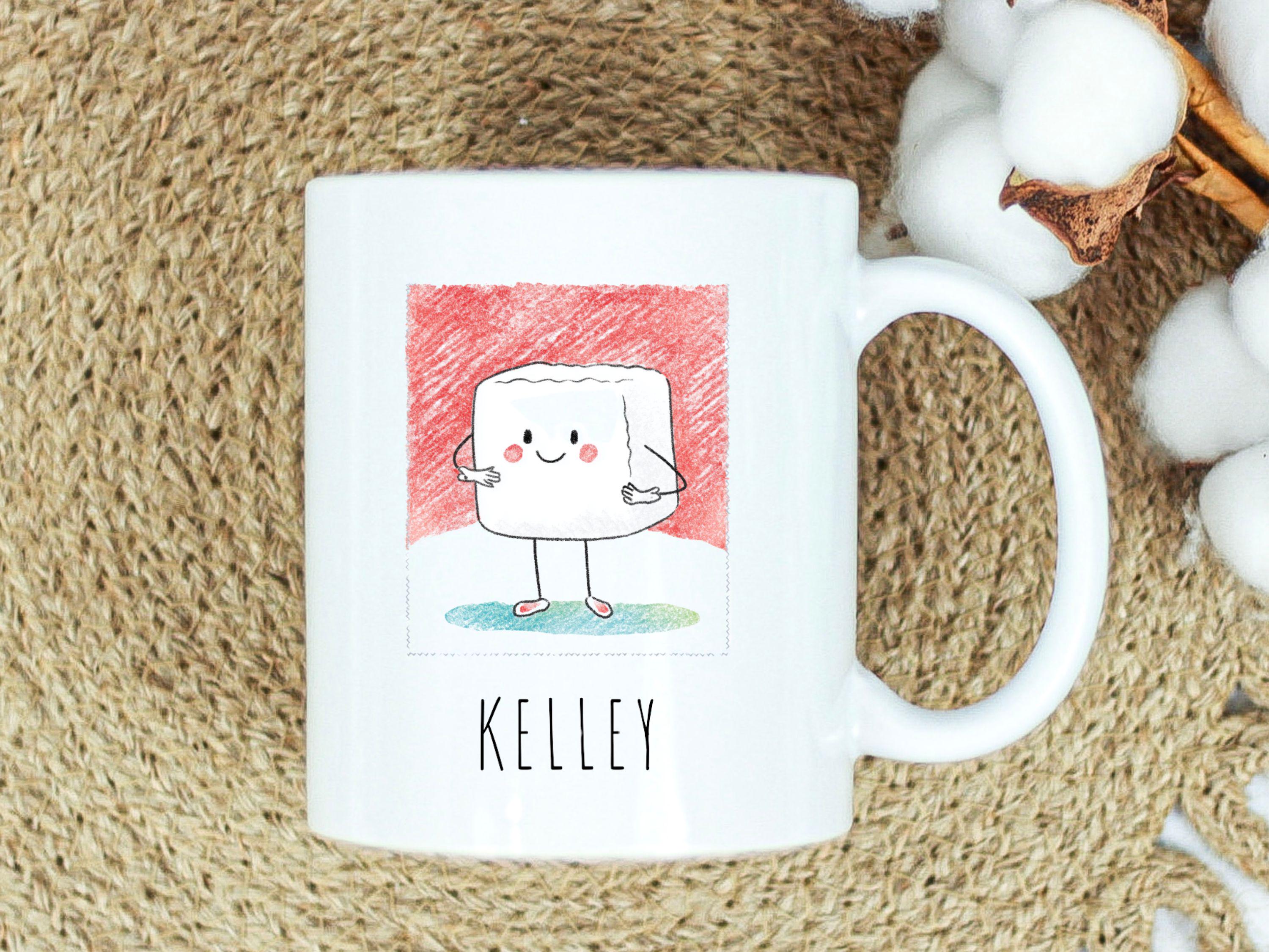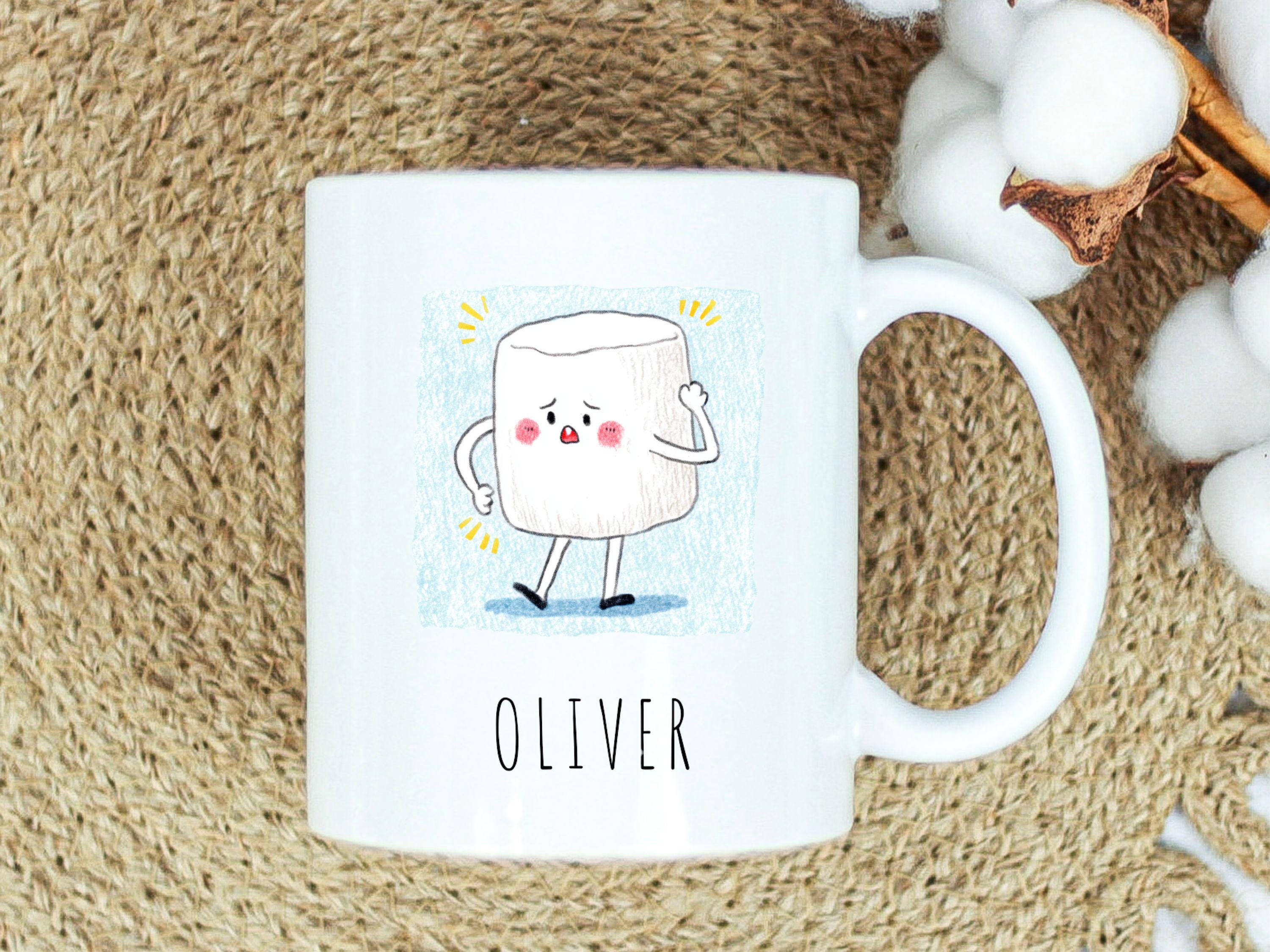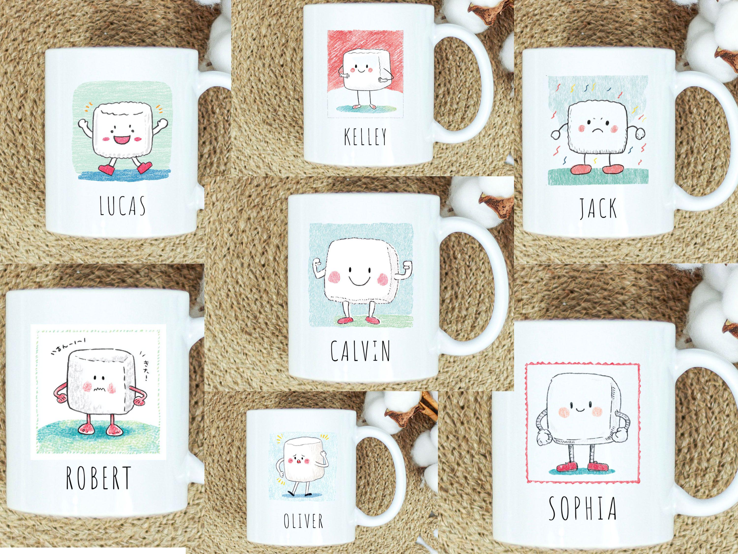 Custom name winter mugs, Marshmallow on mugs easily personalized for kids or adults.