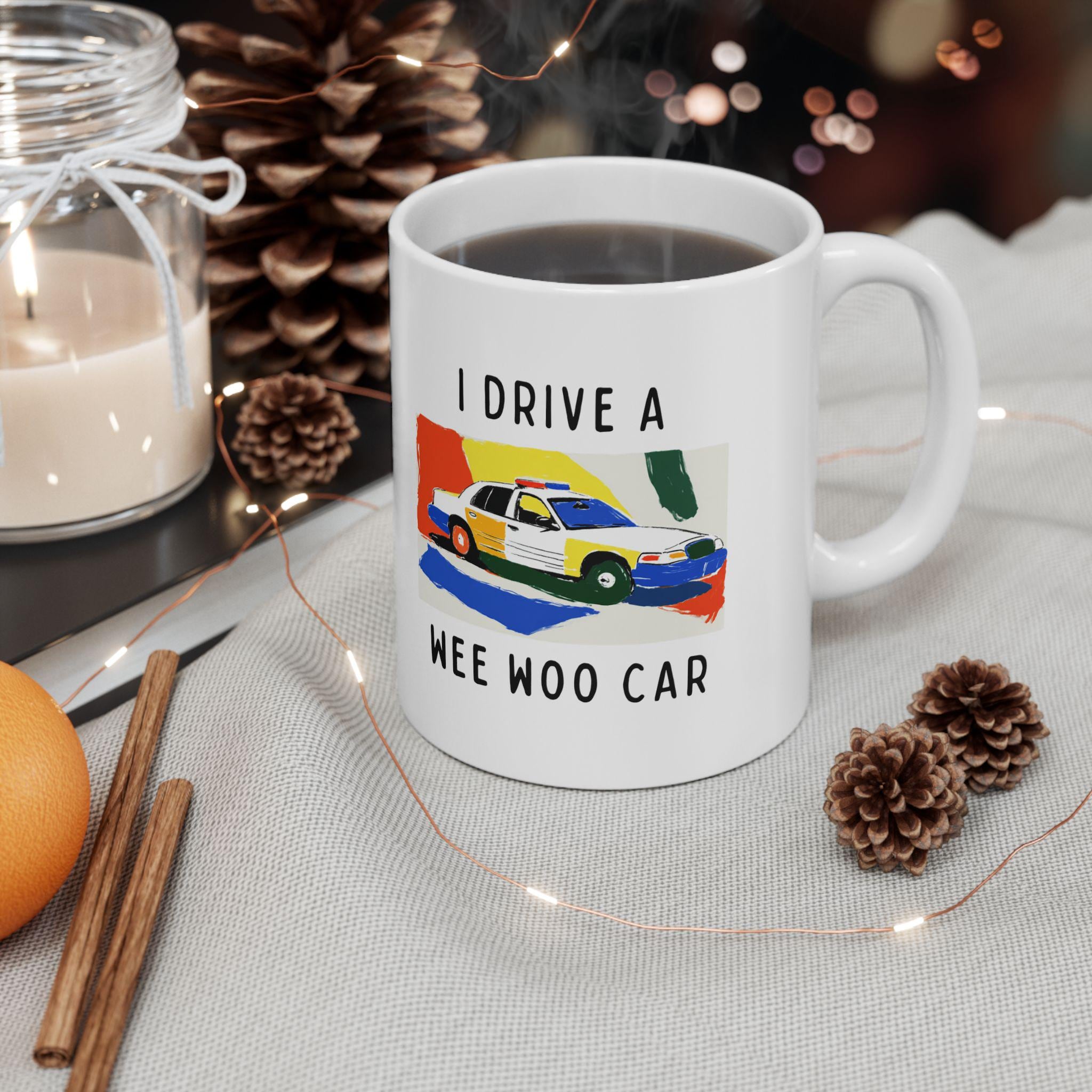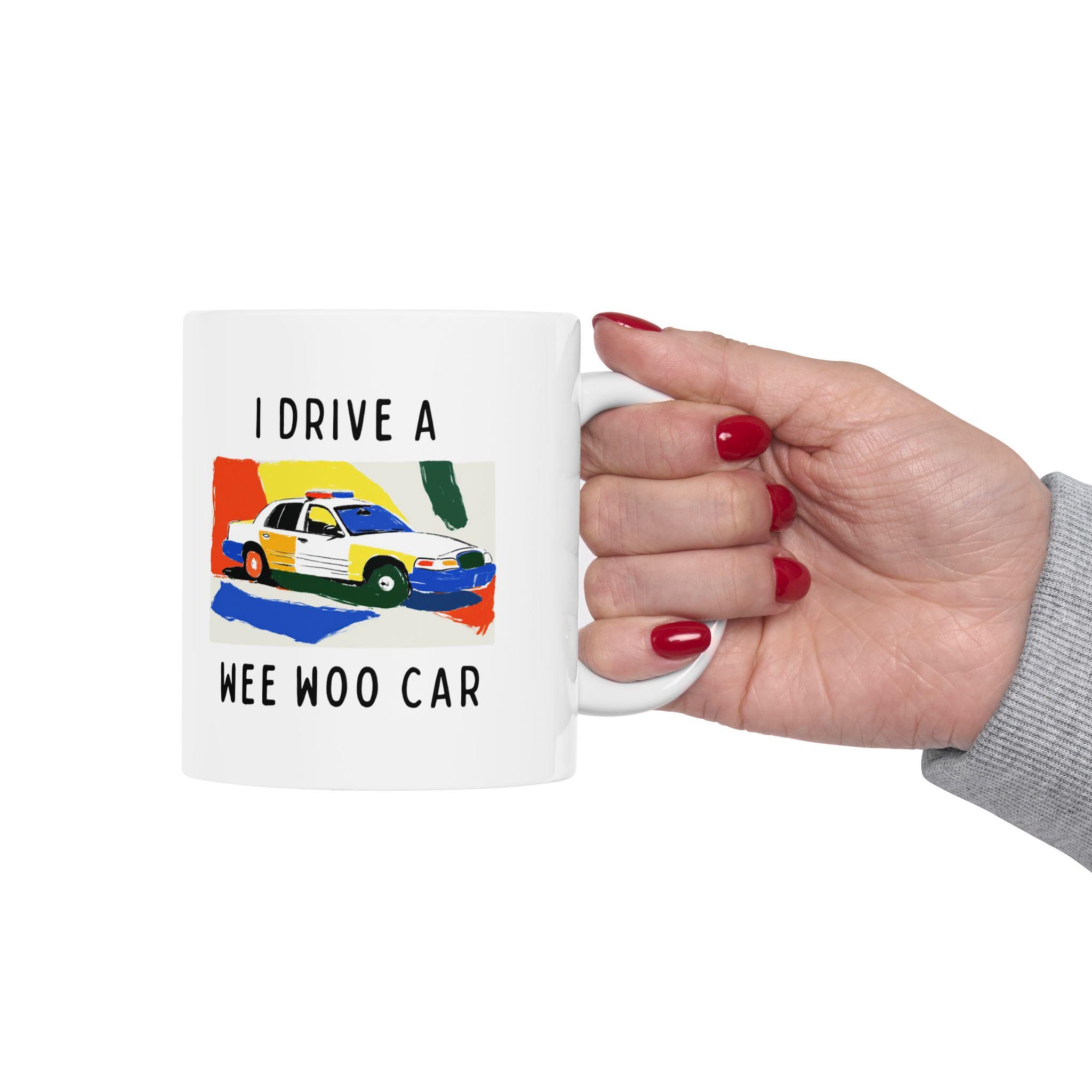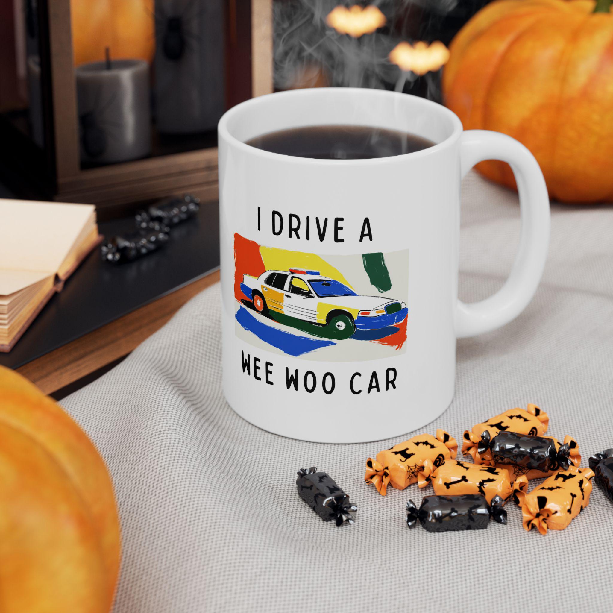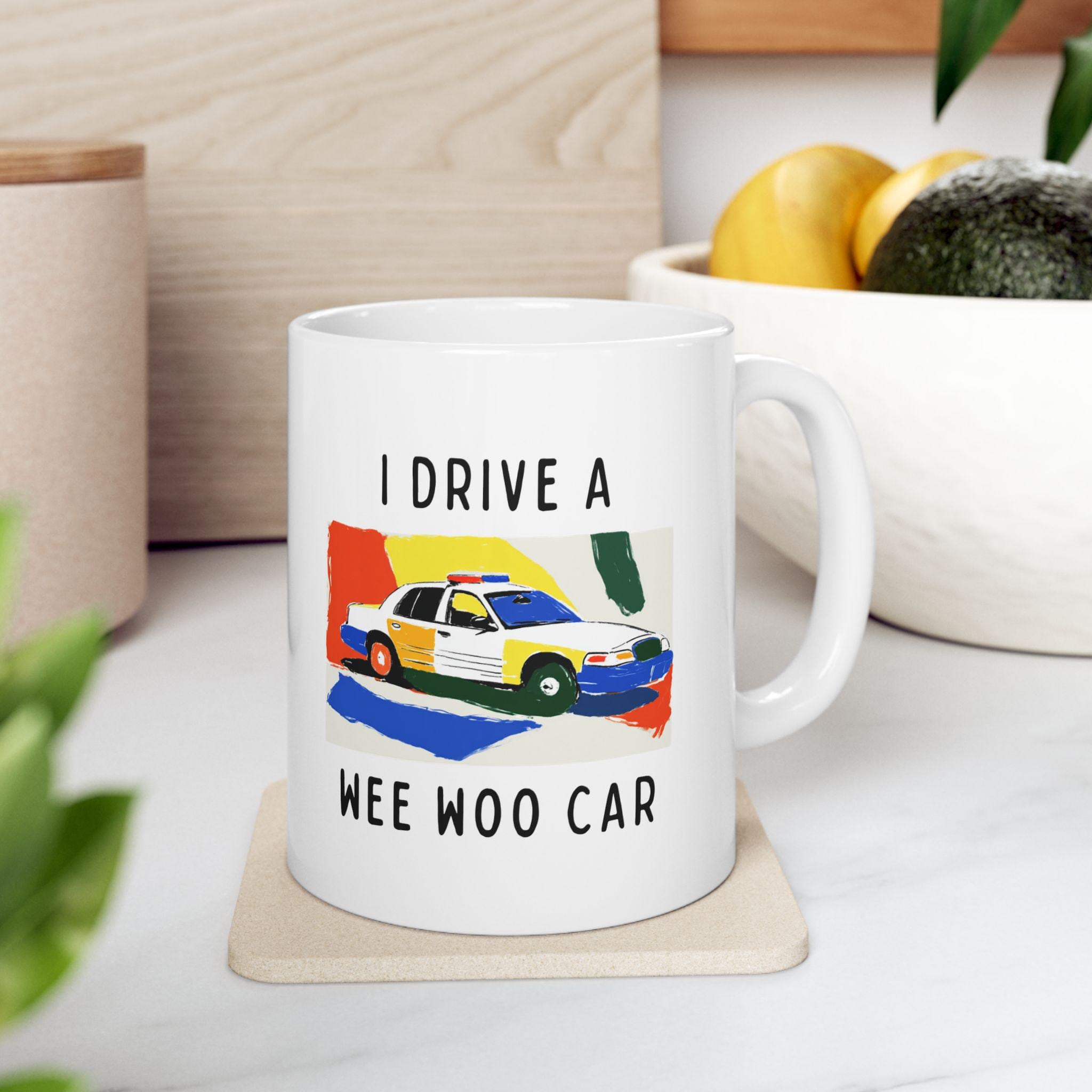 I drive a wee woo car quirky mug for a cop/police officer/sergeant to appreciate them in a fun humorous way.