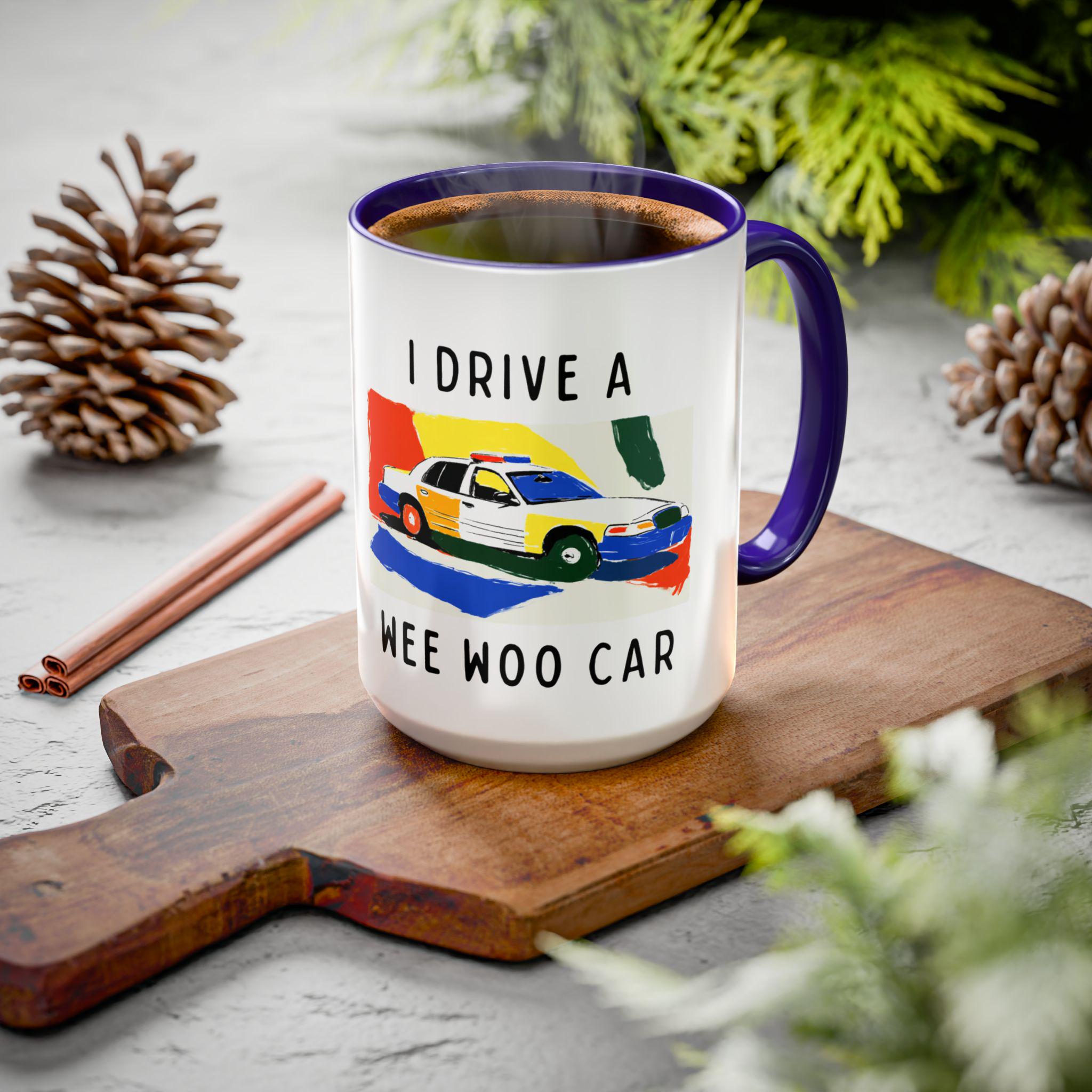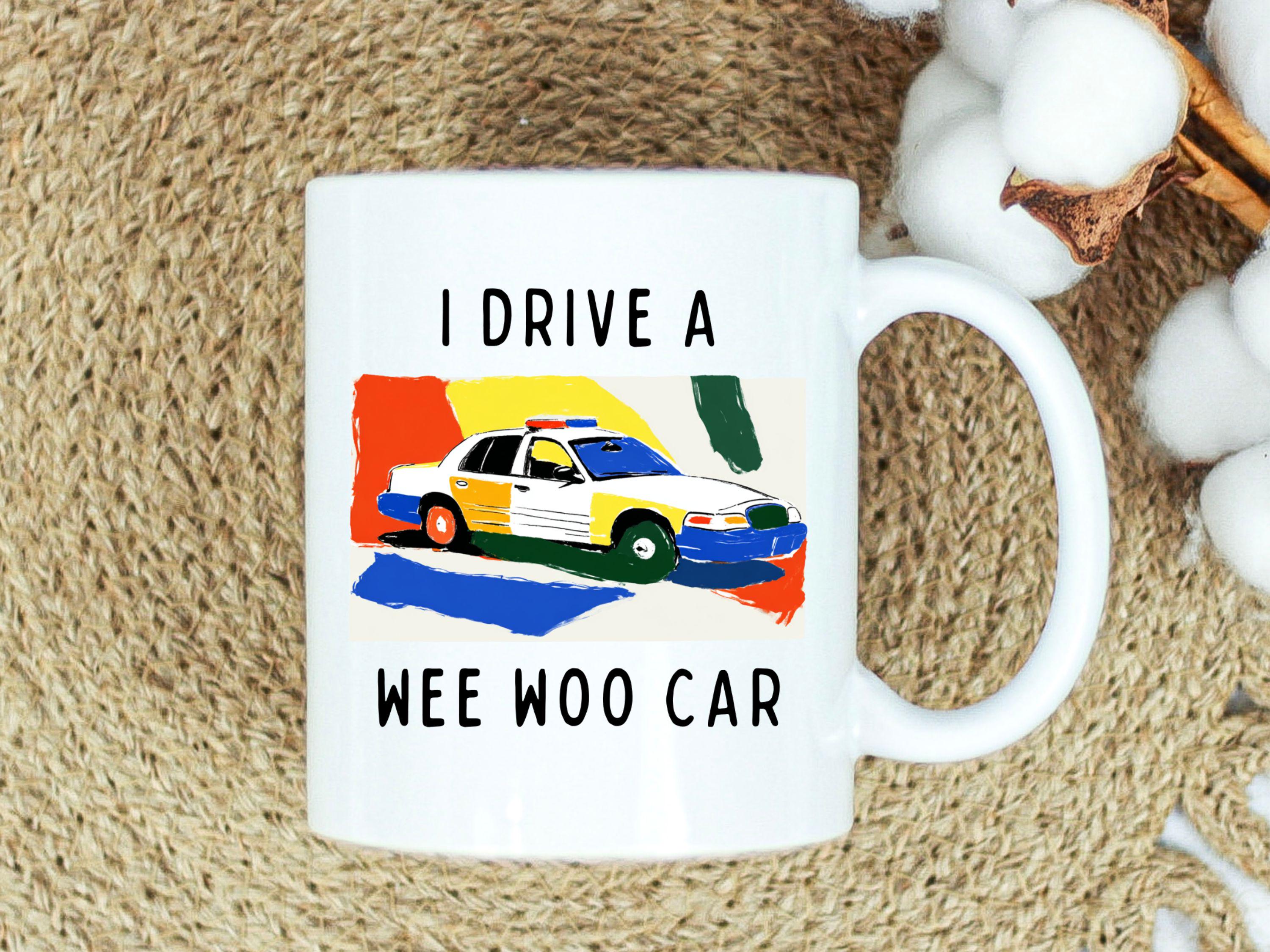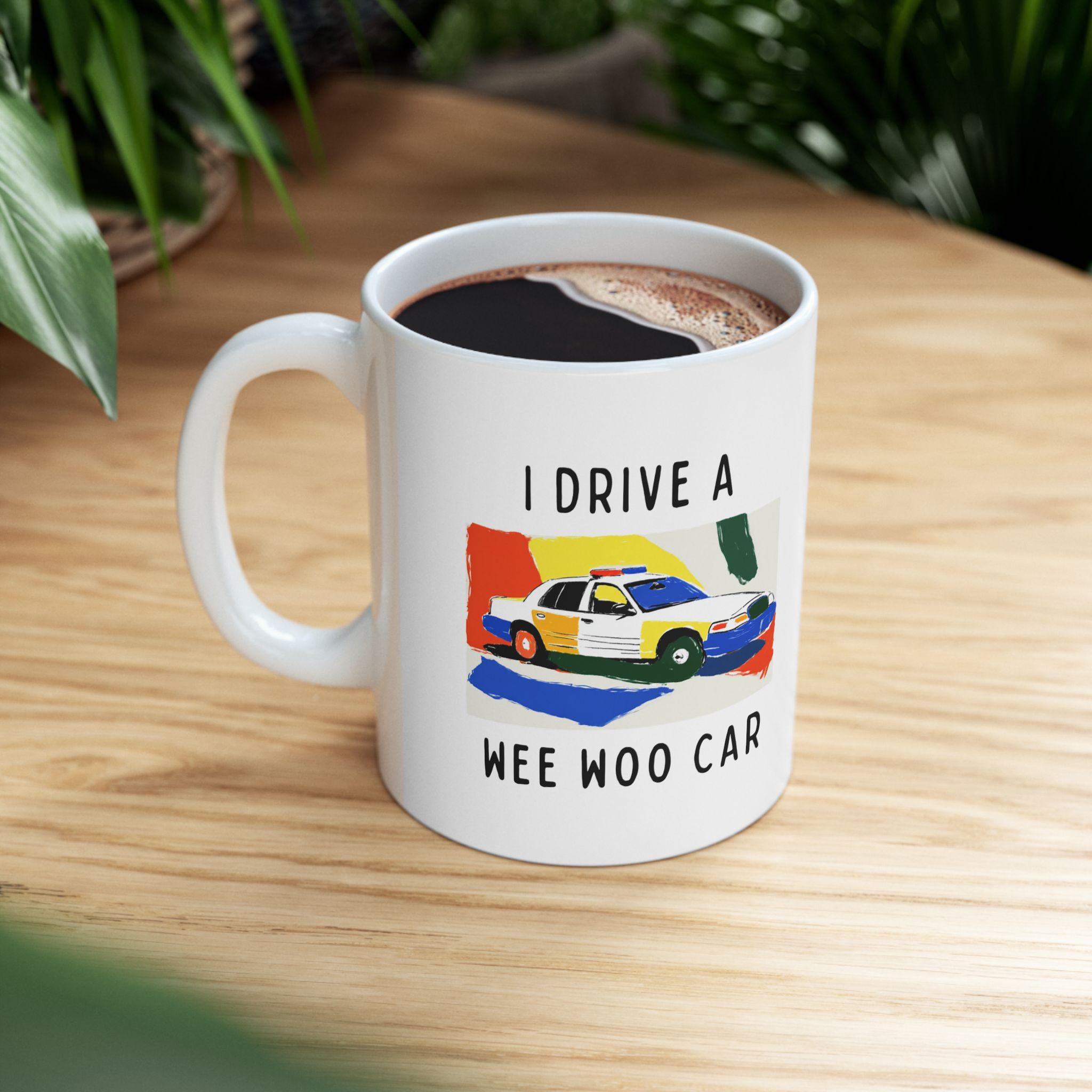 I drive a wee woo car quirky mug for a cop/police officer/sergeant to appreciate them in a fun humorous way.