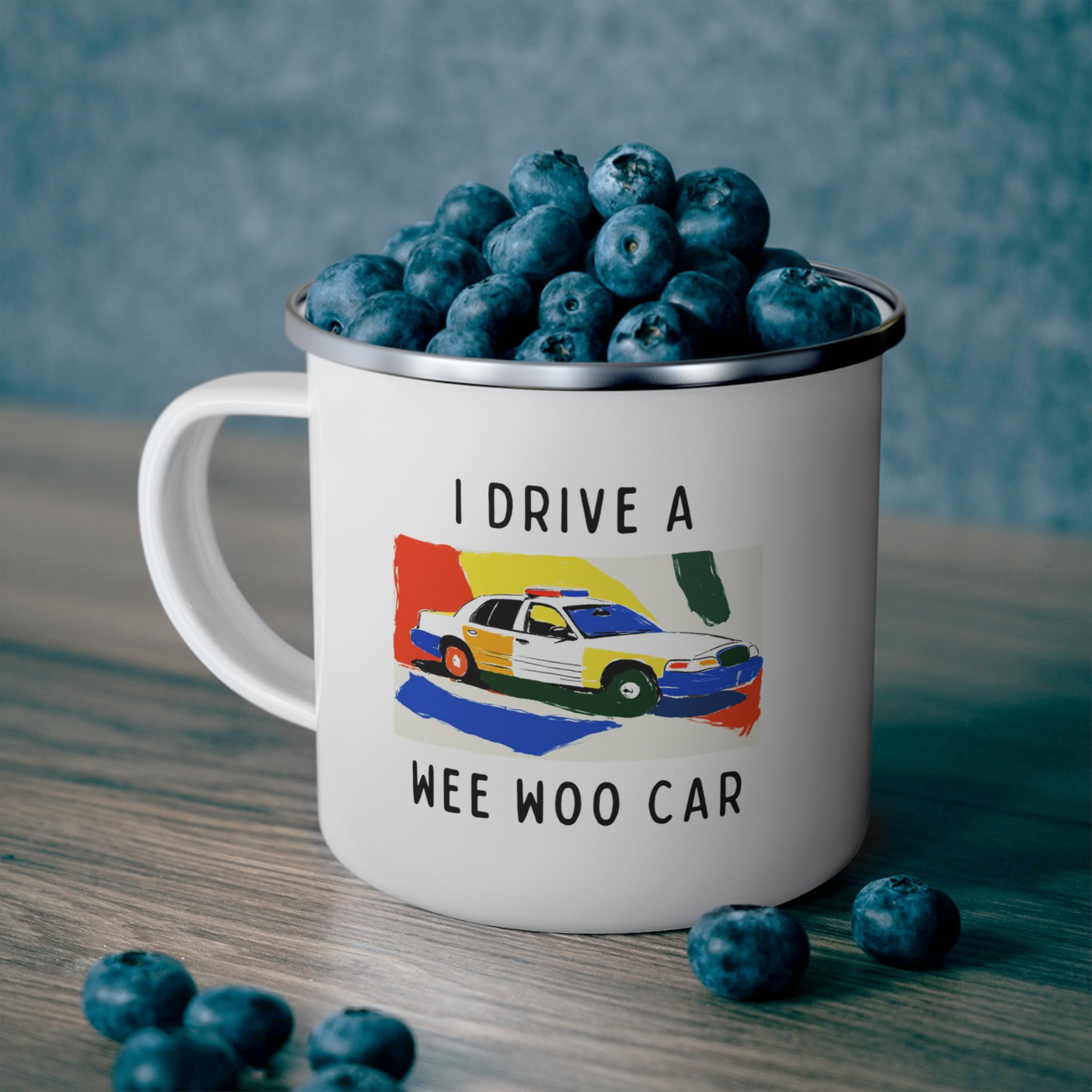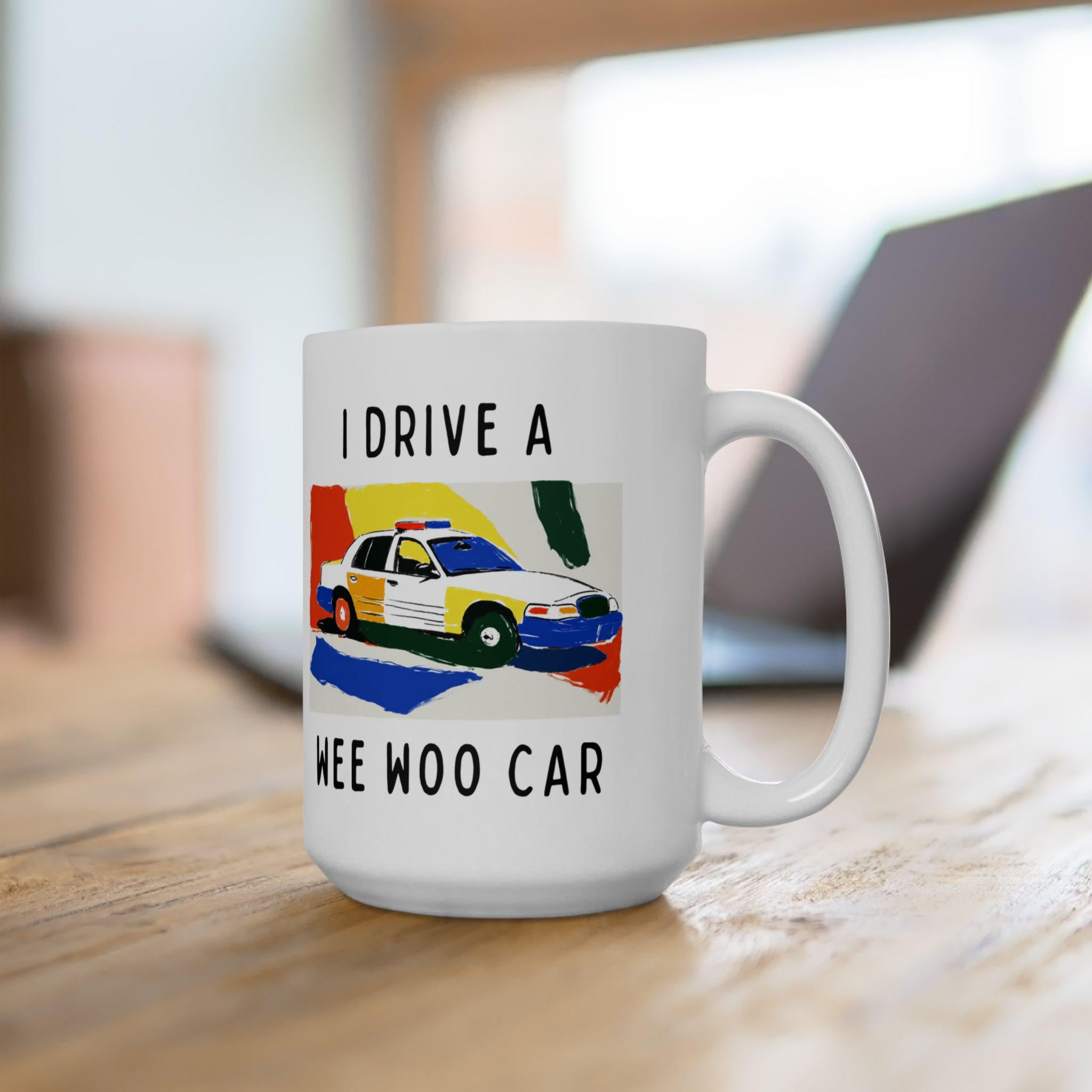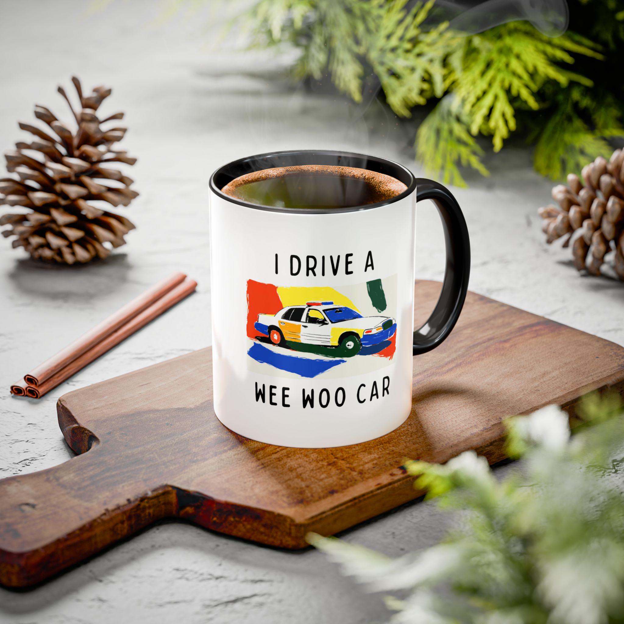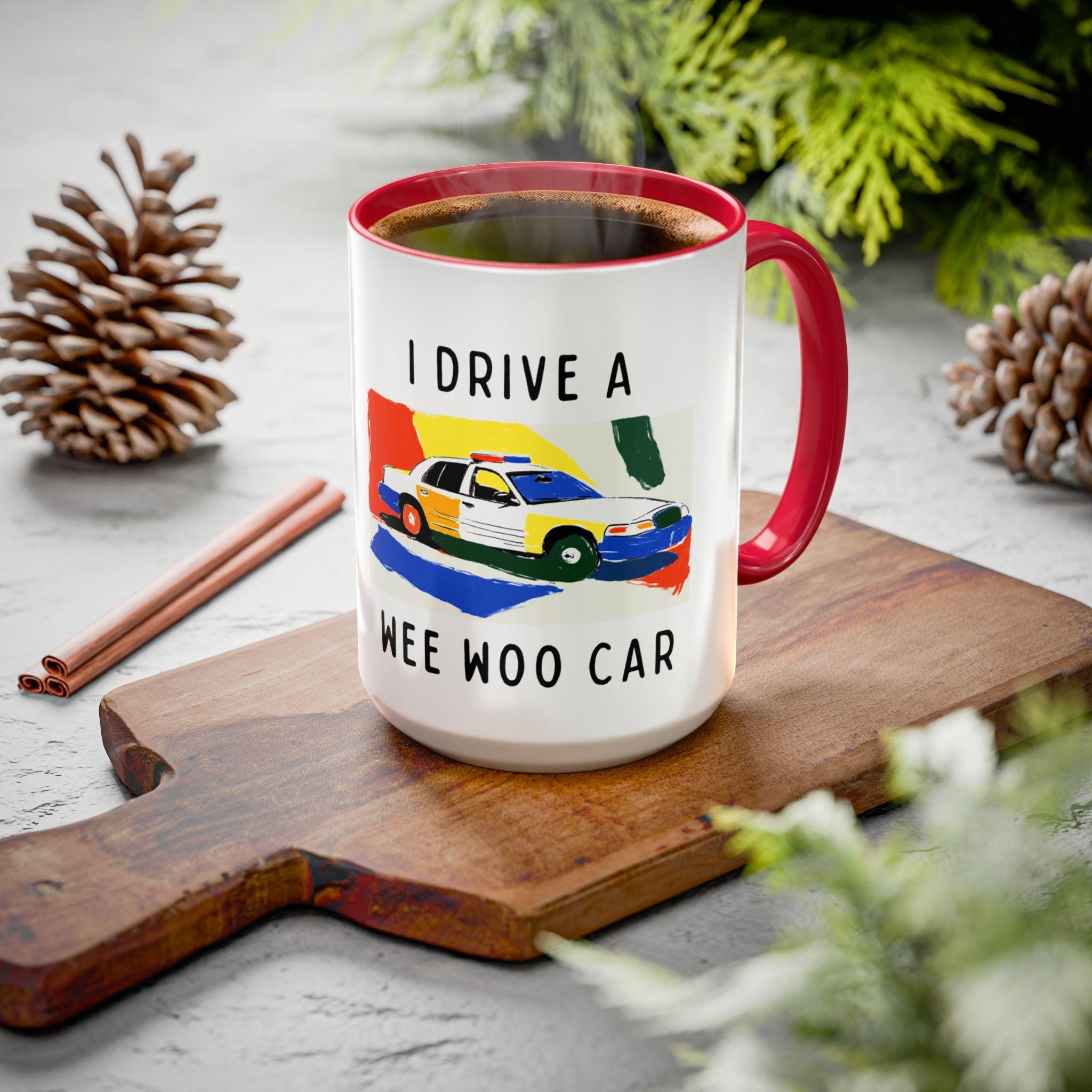 I drive a wee woo car quirky mug for a cop/police officer/sergeant to appreciate them in a fun humorous way.